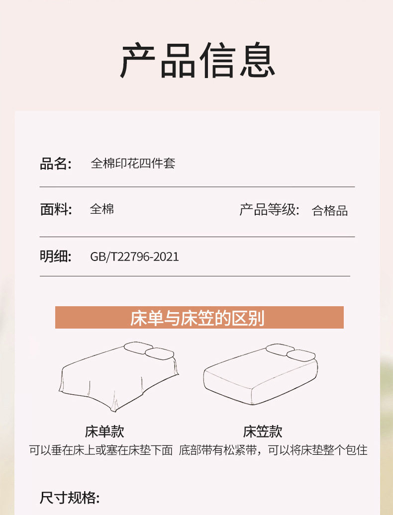 | Dimensions | 1.2m bed sheet three-piece set [quilt cover 1.5*2.0 m-sheet 1.6*2.3m],1.5m bed sheet four-piece set [quilt cover 2.0*2.3m-sheet 2.3*2.45m],1.8m bed sheet four-piece set [quilt cover 2.0*2.3 m-sheet 2.3*2.45m],2.0m bed sheet four-piece set [quilt cover 2.2*2.4m-sheet 2.3*2.45m],1.5m fitted sheet set of four [quilt cover 2.0*2.3m - fitted sheet 1.5*2.0m,1.8m fitted sheet set of four [quilt cover 2.0*2.3m-fitted sheet 1.8*2.0m],150*200cm single quilt cover,200*230cm single quilt cover,220*240cm single quilt cover |