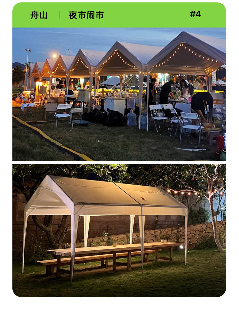| Use scenario | Night market stall shed, exchange meeting stall shed, camping tent, parking shed |
