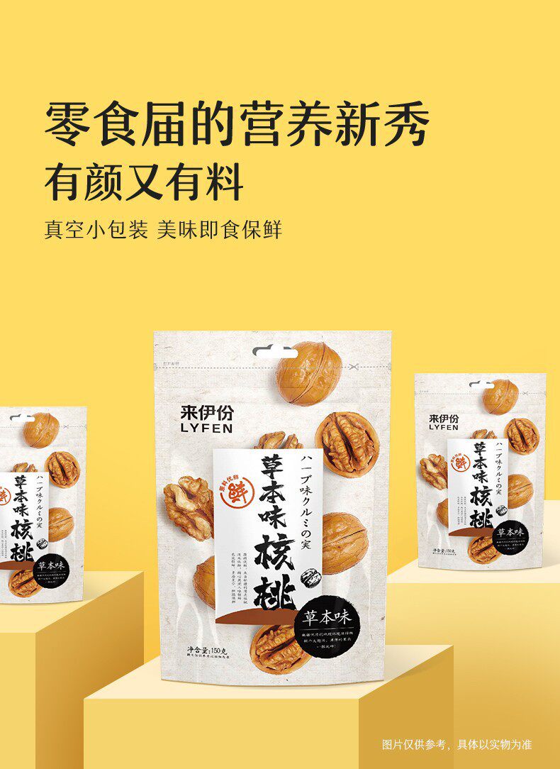 Laiyi herbal walnut 150g * 6 packs of nuts fried mountain dried fruit herbal pecan snacks