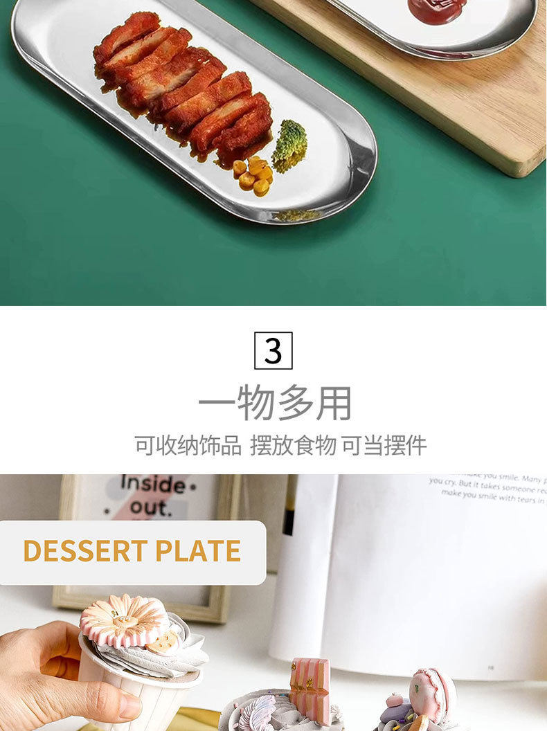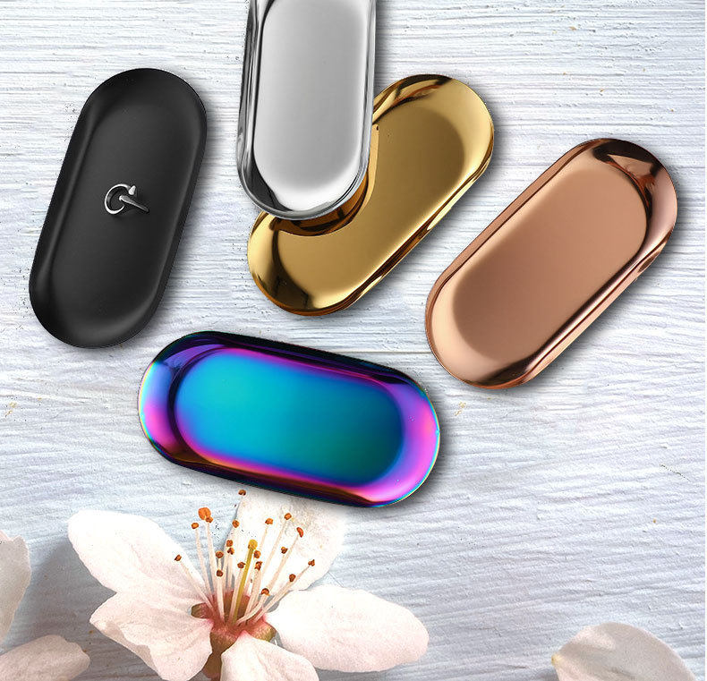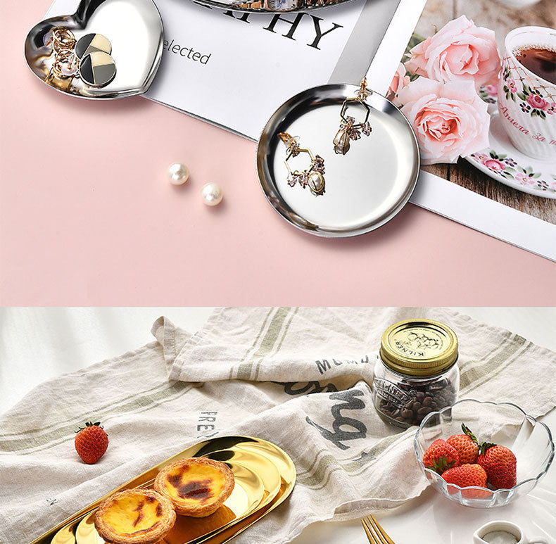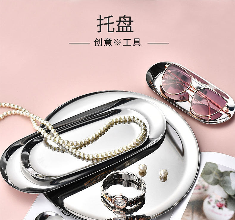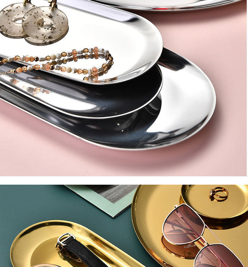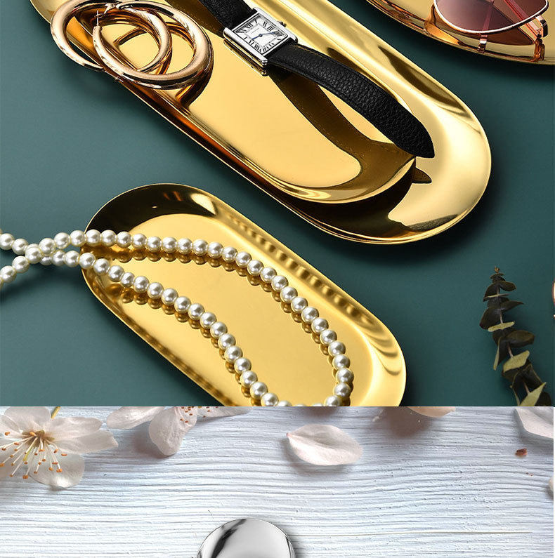 Nordic Ins Oval Tray Stainless Steel Golden Oval Tray Jewelry Dim Sum Tray Metal Home Storage Tray