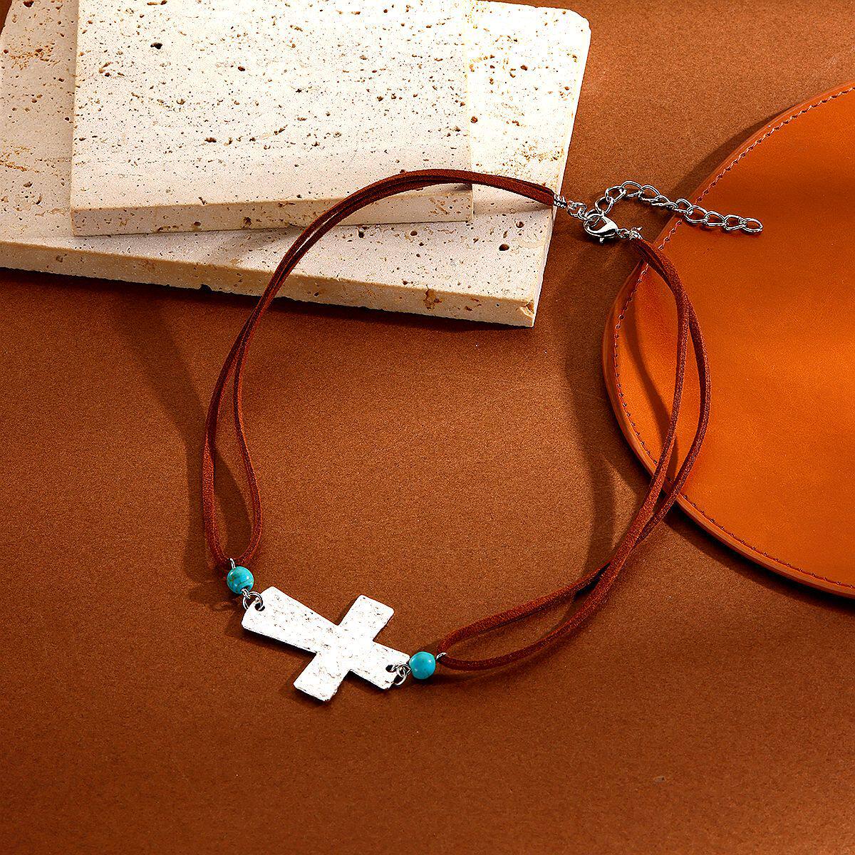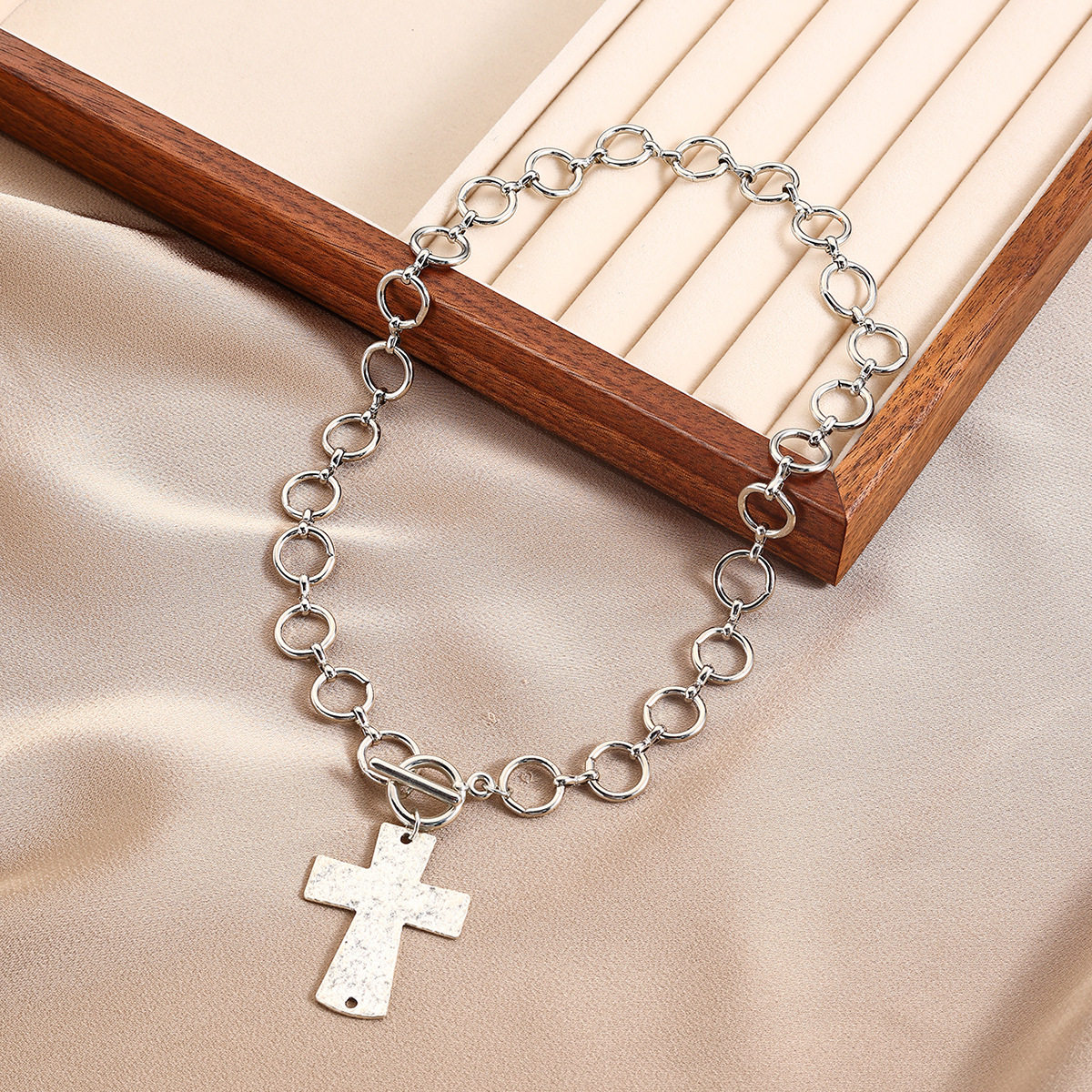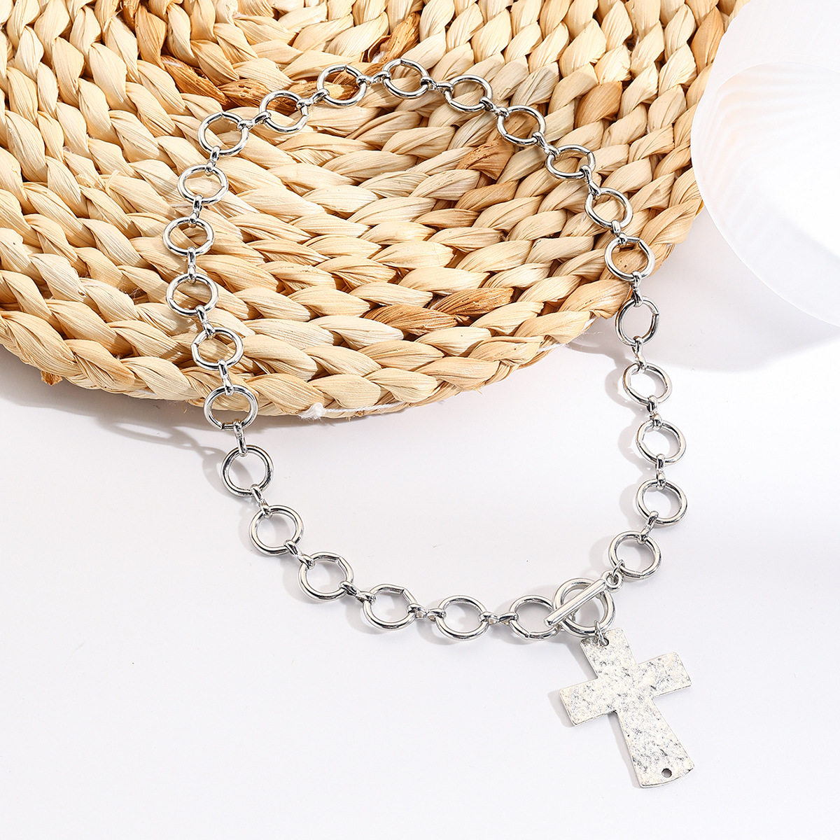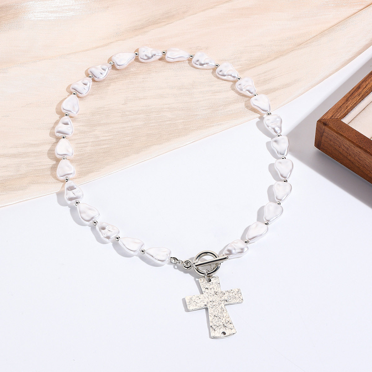 | Cross pendant necklace is not unique | European and american cross-border new splicing rose cross pendant necklace personalized irregular crystal beaded clavicle chain |