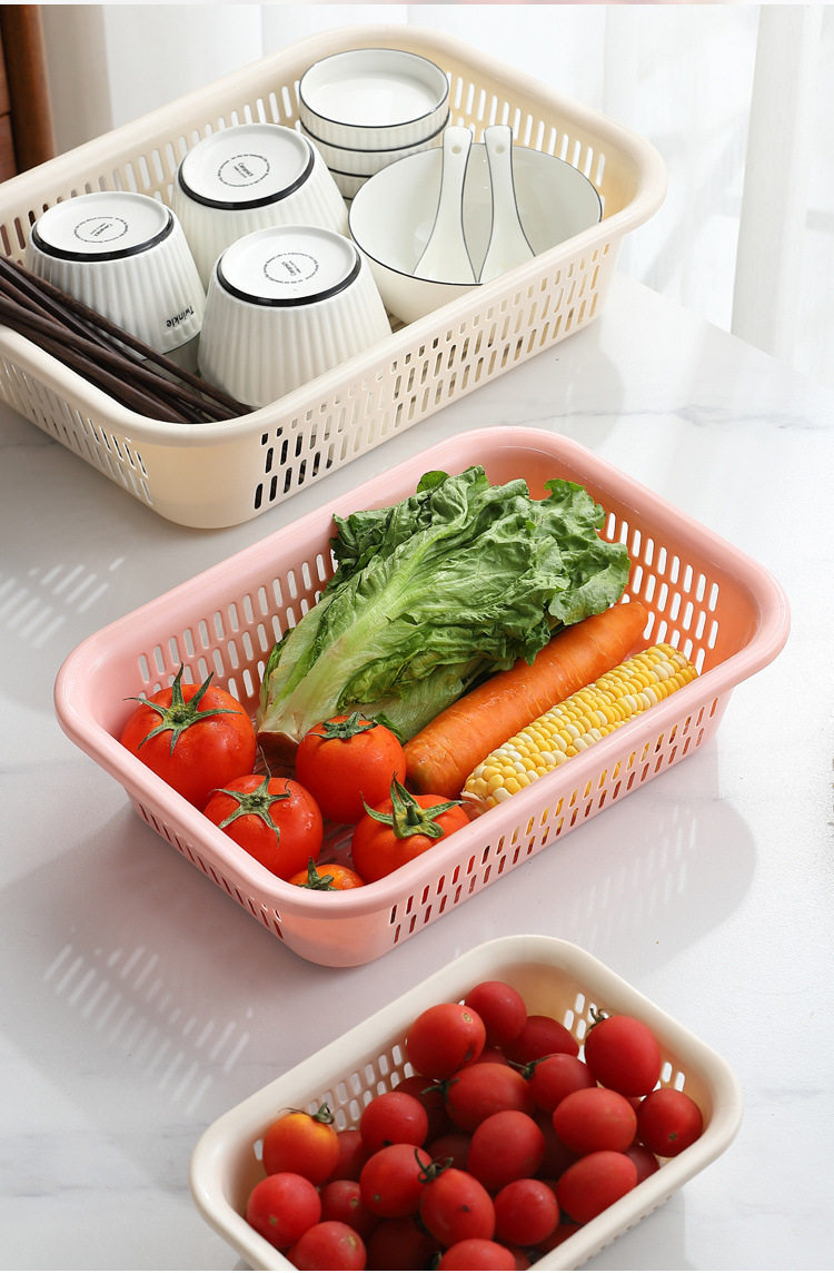 Thickened Drain Basket Washing Vegetable Basket Kitchen Sieve Basket Rectangular Household Bowl Chopsticks Basket Large