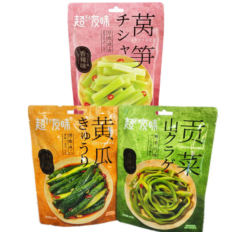 | Package | 125g cucumber (fresh hunan flavor), 125g lettuce (spicy flavor), 100g tribute vegetable (spicy flavor), 75g lotus root tip (pickled pepper flavor), 190 |