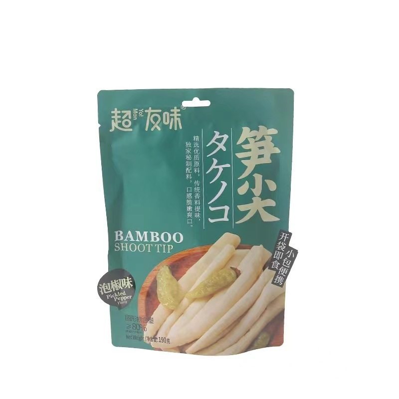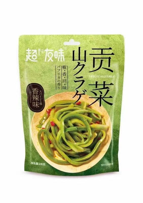 | Packaging specifications | Tribute vegetable (spicy flavor) 100g,Tribute vegetable shrimp slippery 100g,Lettuce (spicy flavor) 125g,Cucumber (fresh hunan flavor) 125g,Bracken 125g,Passion fruit and bamboo shoots 190g,Pickled sansho pepper and bamboo shoots 190g,New mustard shreds (spicy flavor) 150g,New mustard core (spicy flavor) 150g,Kelp konjac shuang (hot and sour flavor) 120g,Fried tofu fire scoop spicy flavor 120g,Fried tofu with fragrant marinade 120g,Kelp knot (spicy flavor) 140g,Tiger quail eggs (spicy flavor) 100g,Tiger quail eggs (sweet and spicy) 100g,Graphite tofu (bbq flavor) 158g,Graphite tofu (five-flavor) 158g,Graphite tofu (spicy flavor) 158g,Grilled fish balls spicy flavor,Grilled fish balls curry flavor,Flammulina velutipes (spicy flavor) 160g,Octopus balls spicy flavor,Octopus balls bbq flavor,Tiger skin chicken drumsticks (chicken wing root) braised flavor 80g*1 bag,Steamed tofu with mushrooms (chongqing spicy flavor) 150g*1 bag,Steamed tofu with mushrooms (chongqing barbecue flavor) 150g*1 bag,Konjac tribute vegetable fresh spicy flavor 100g,New bamboo shoots pickled pepper flavor 142g,Kelp konjac shuang (spicy flavor) 120g,Kelp and crispy bamboo shoots (spicy flavor) 140g,Kelp and crispy bamboo shoots (hot and sour flavor) 140g,Kelp knot (hot and sour flavor) 140g,Black pork sausage corn flavor,Tiger skin chicken legs (chicken wing root) spicy flavor 80g*1 bag,Fran side dish pure crispy radish 240g fresh pickled flavor,Monster pier papaya shreds spicy flavor 100g,Black pork bamboo shoots sausage black pepper flavor 208g,Lotus root diced sweet and sour flavor 100g*1 bag,Spicy chicken-spicy flavor 100g*1 bag |