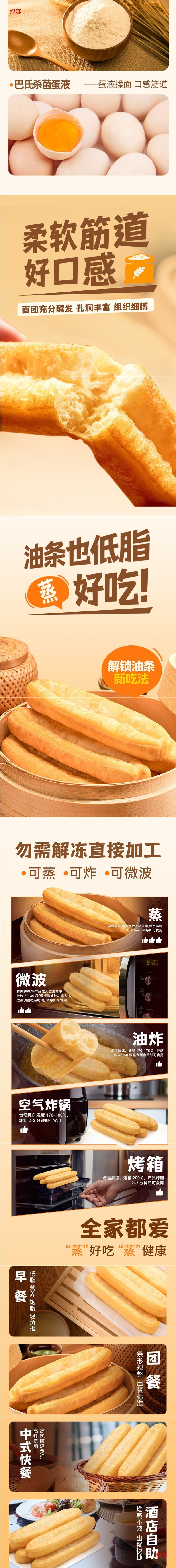 | Packaging specifications | Steamed fried dough sticks 360g*1 bag (10 sticks),Steamed fried dough sticks 360g*2 bags (20 sticks),Steamed fried dough sticks 360g*3 bags (30 sticks),Steamed fried dough sticks 360g*4 bags (40 sticks),Steamed fried dough sticks 360g*5 bags (50 sticks),Steamed fried dough sticks 360g*6 bags (60 sticks) |