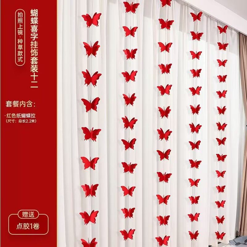 | Specification | Red butterfly paper string 2.2 long,Gradient pink butterfly 2.2 long,Red butterfly + wedding paper string 2.2 long,Pink butterfly + wedding paper string 2.2 long |