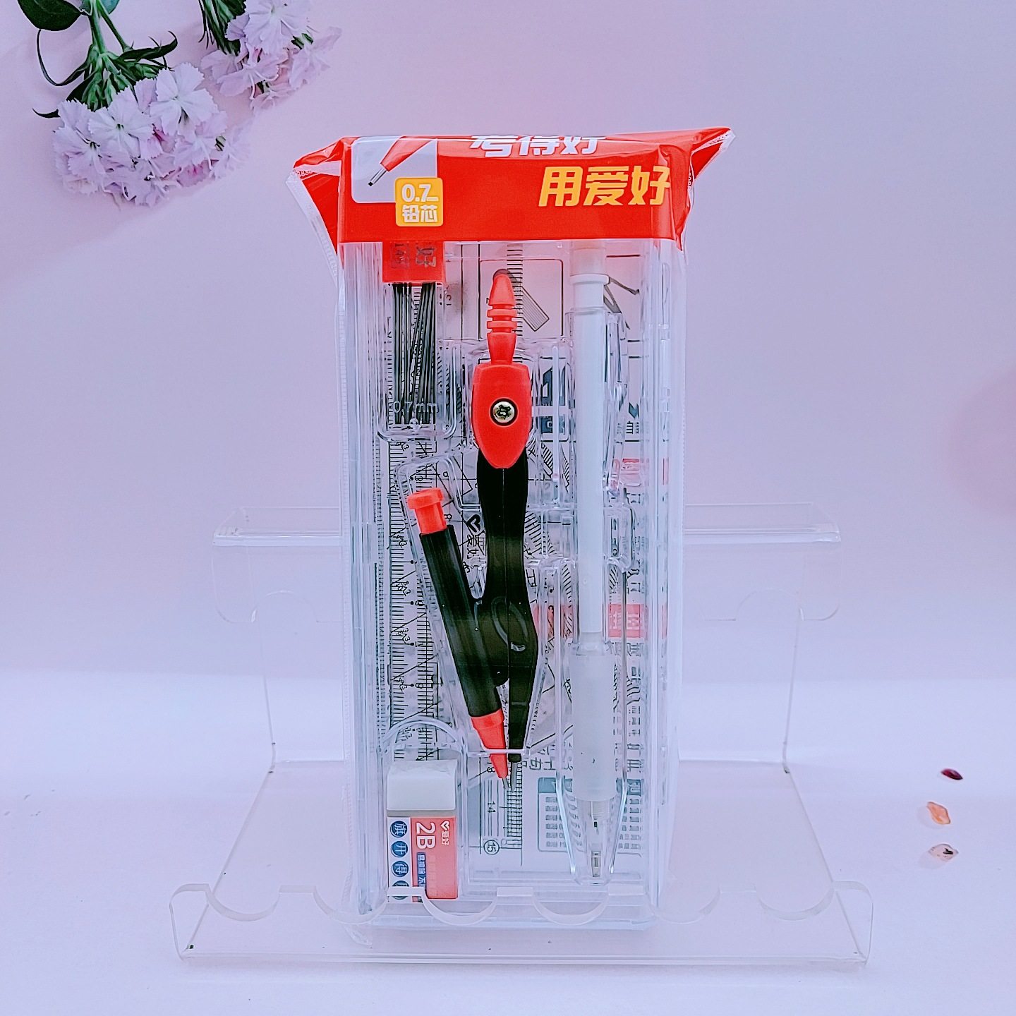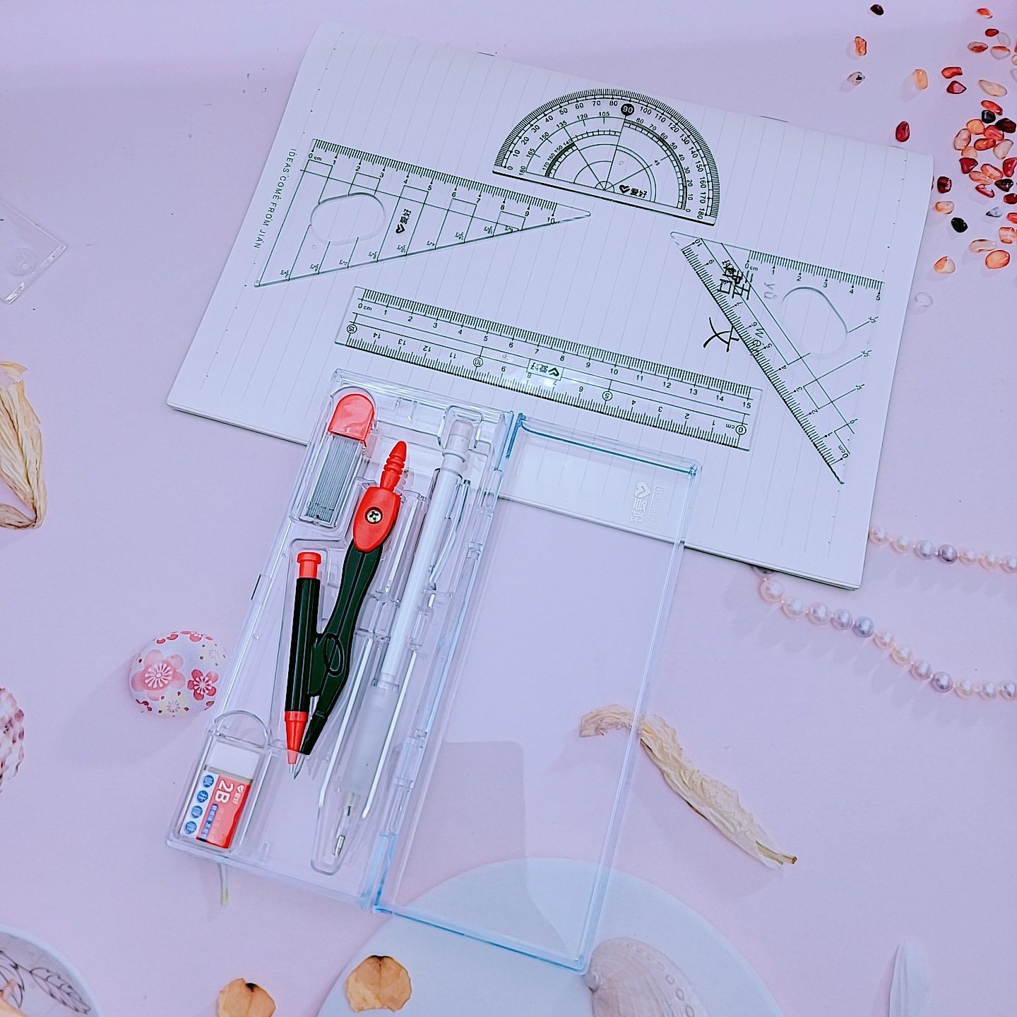 Hobby stationery new 79145 examination ruler suit 8-piece set of student drawing office compasses ruler wholesale