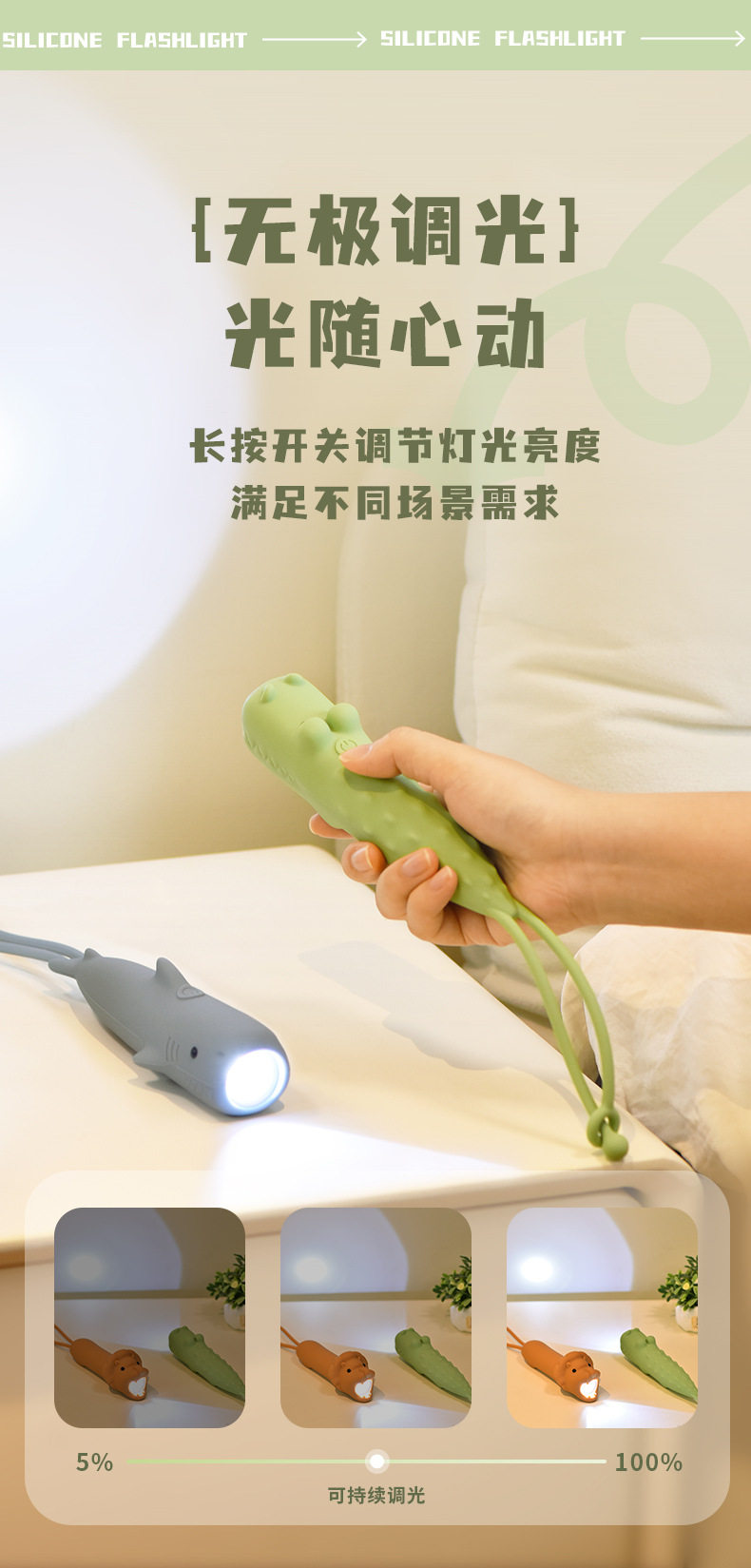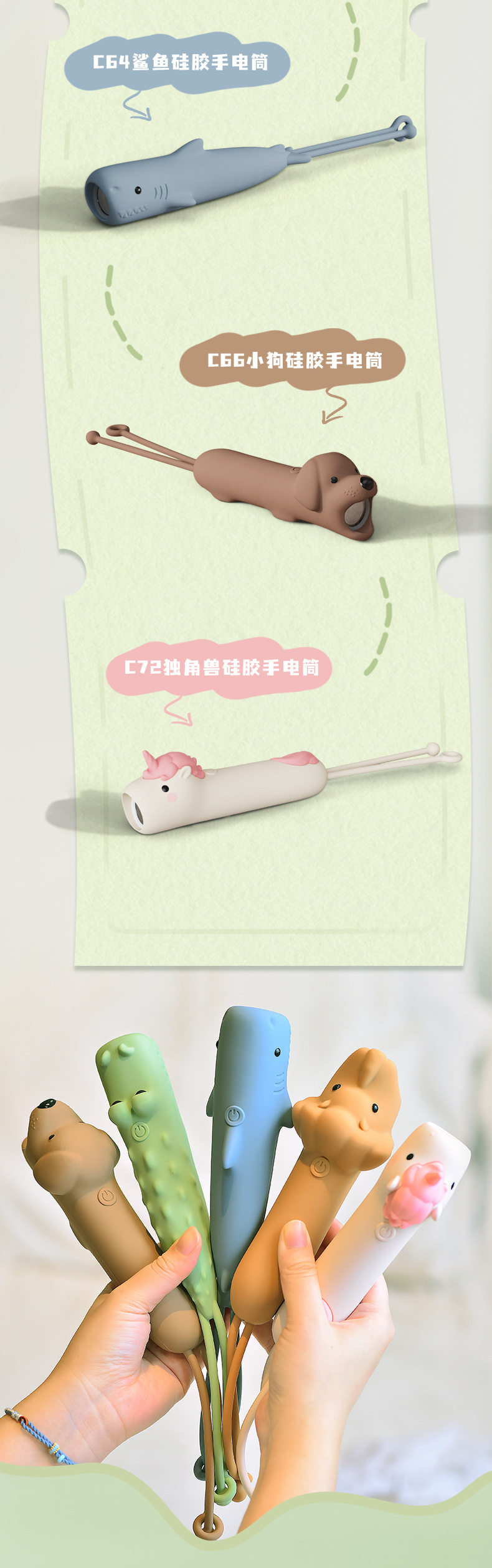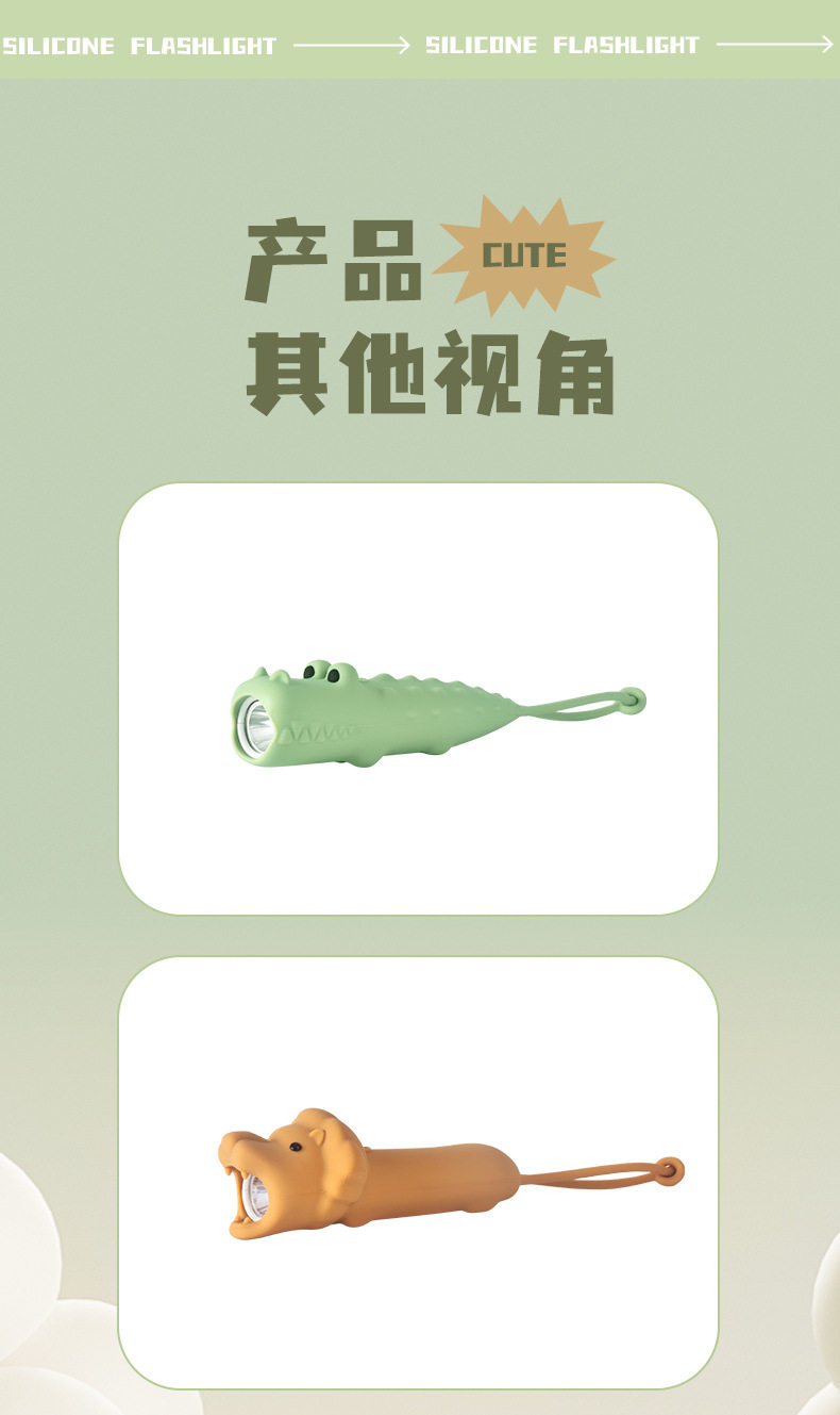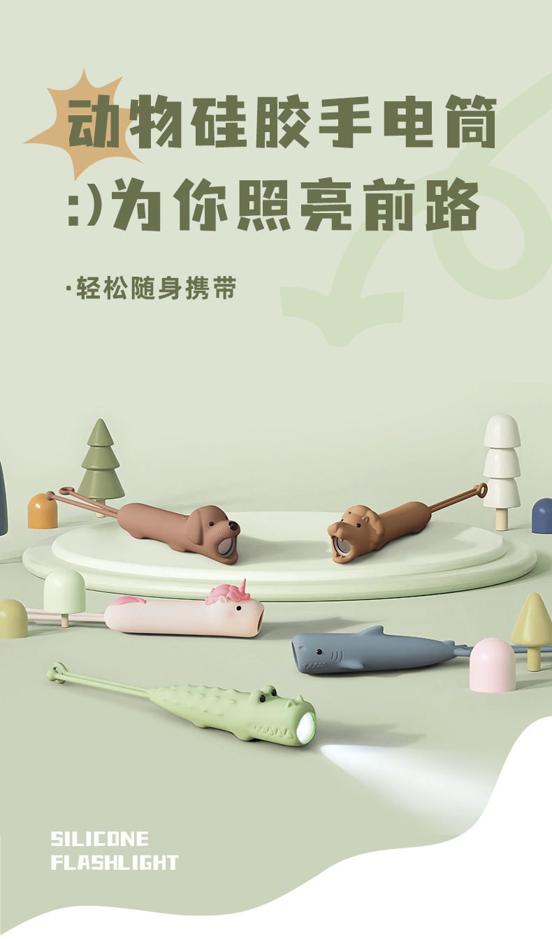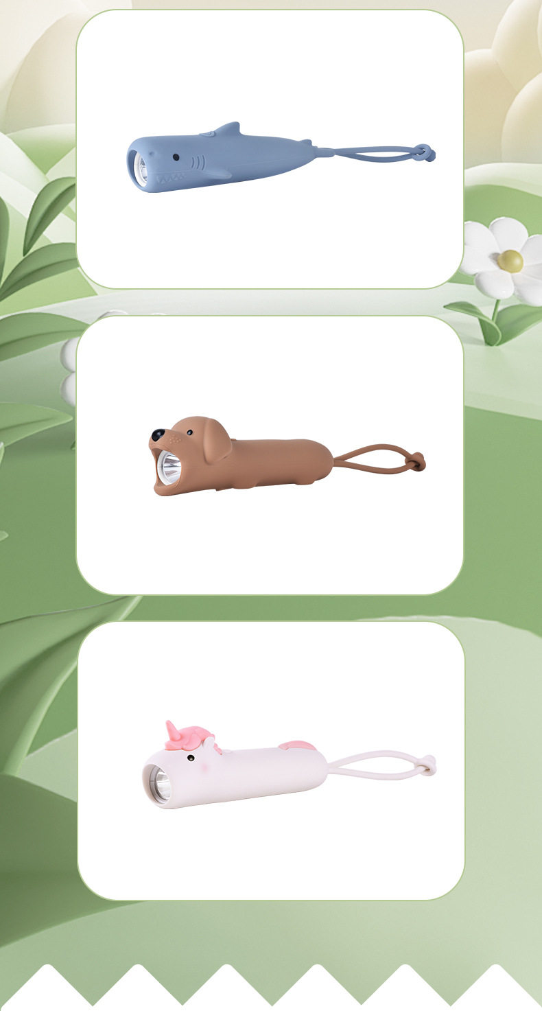 Children's Cartoon Flashlight Animal Handheld USB Rechargeable Lighting Lamp with Night Lanyard Anti-Slip Silicone Led Handheld Light