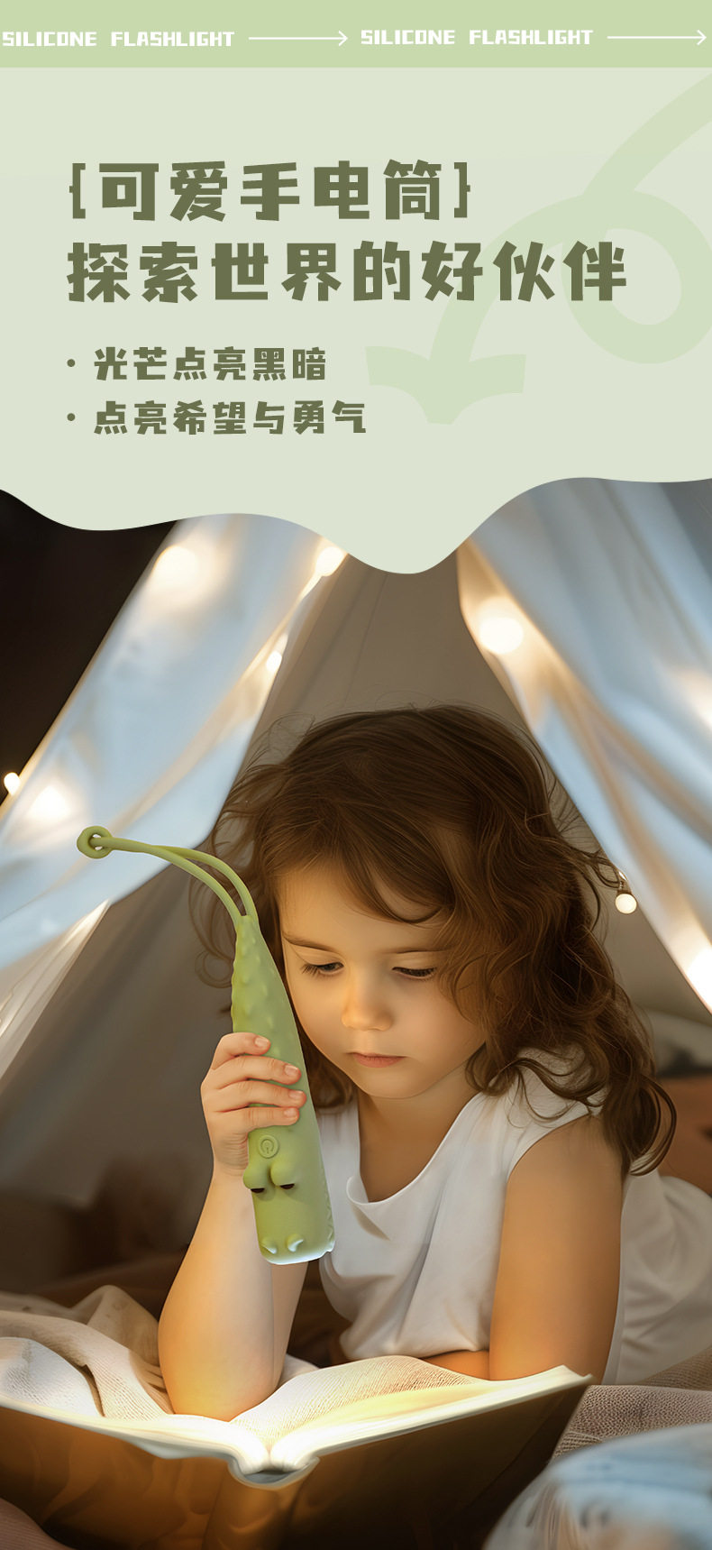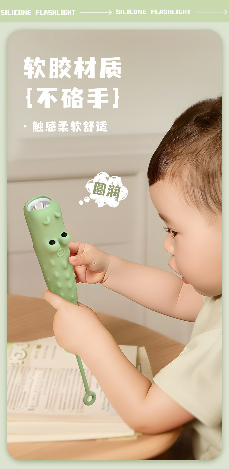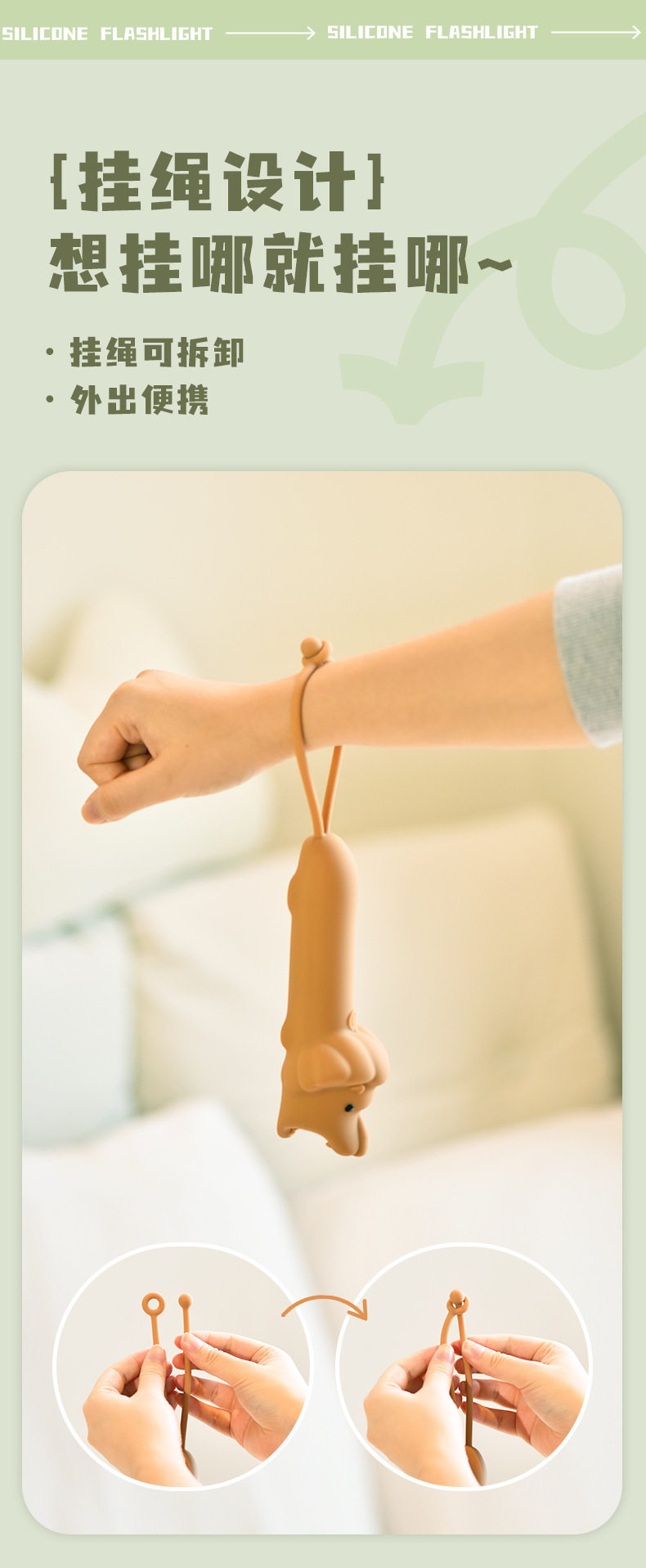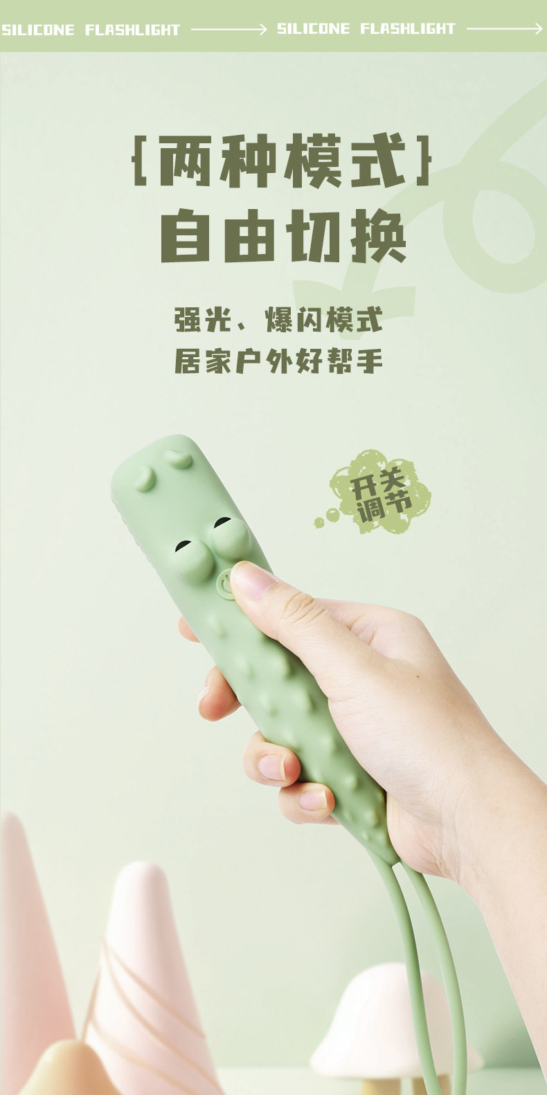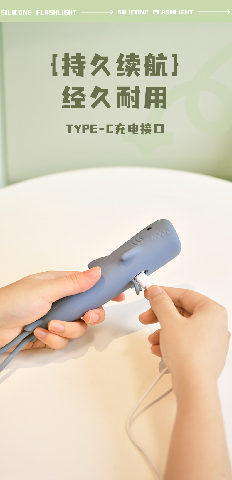 Children's Cartoon Flashlight Animal Handheld USB Rechargeable Lighting Lamp with Night Lanyard Anti-Slip Silicone Led Handheld Light