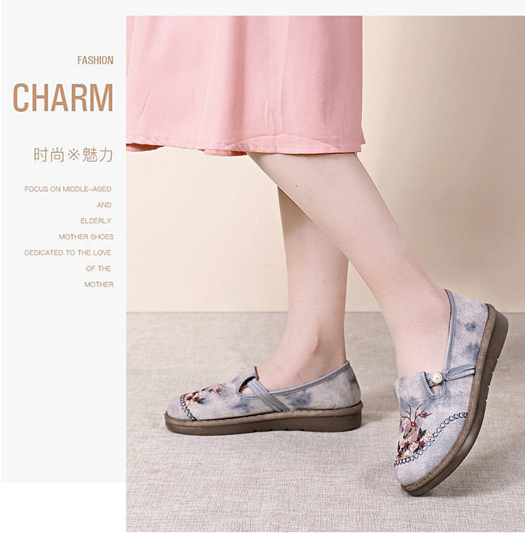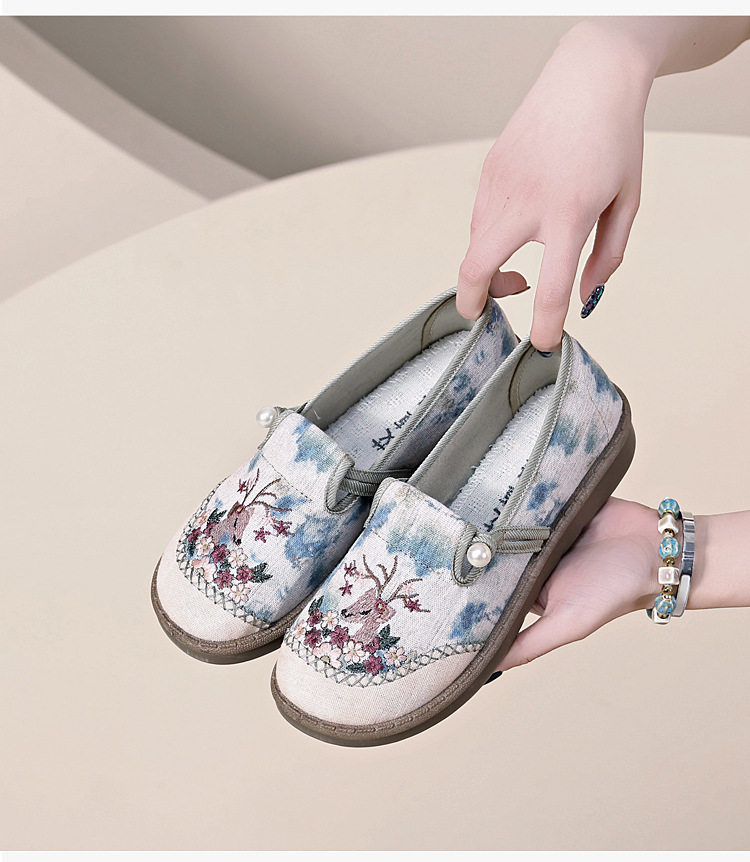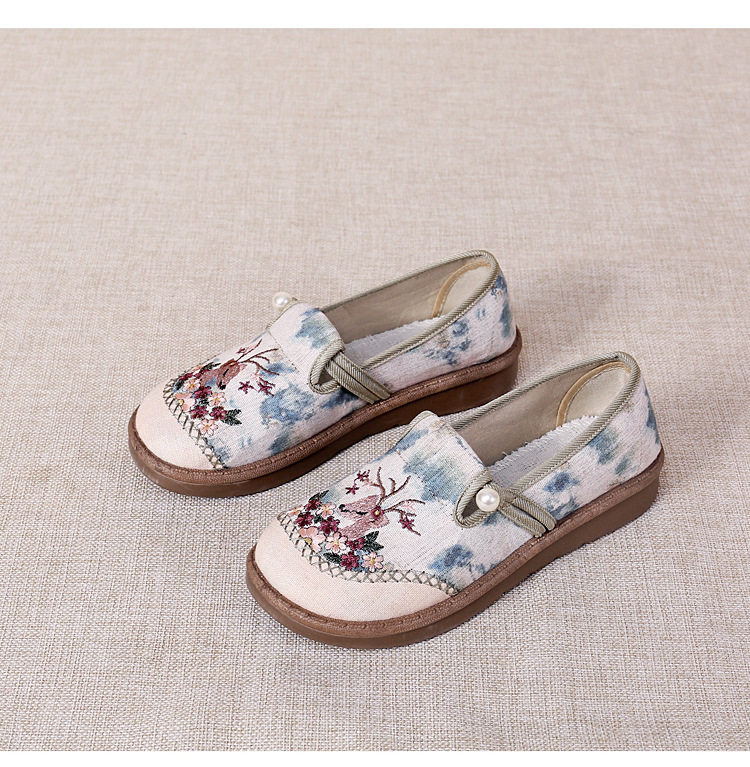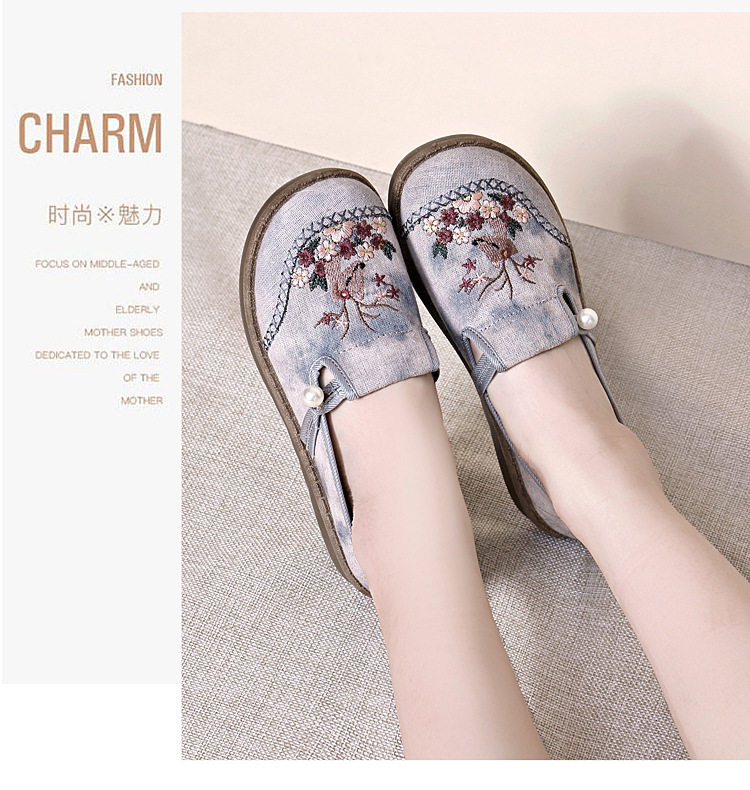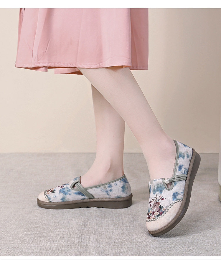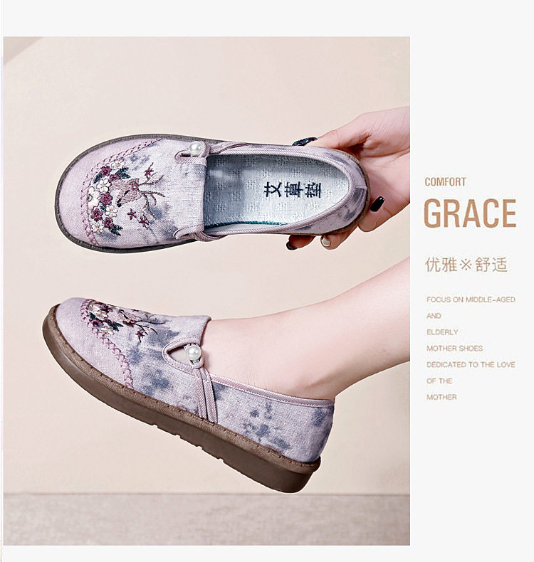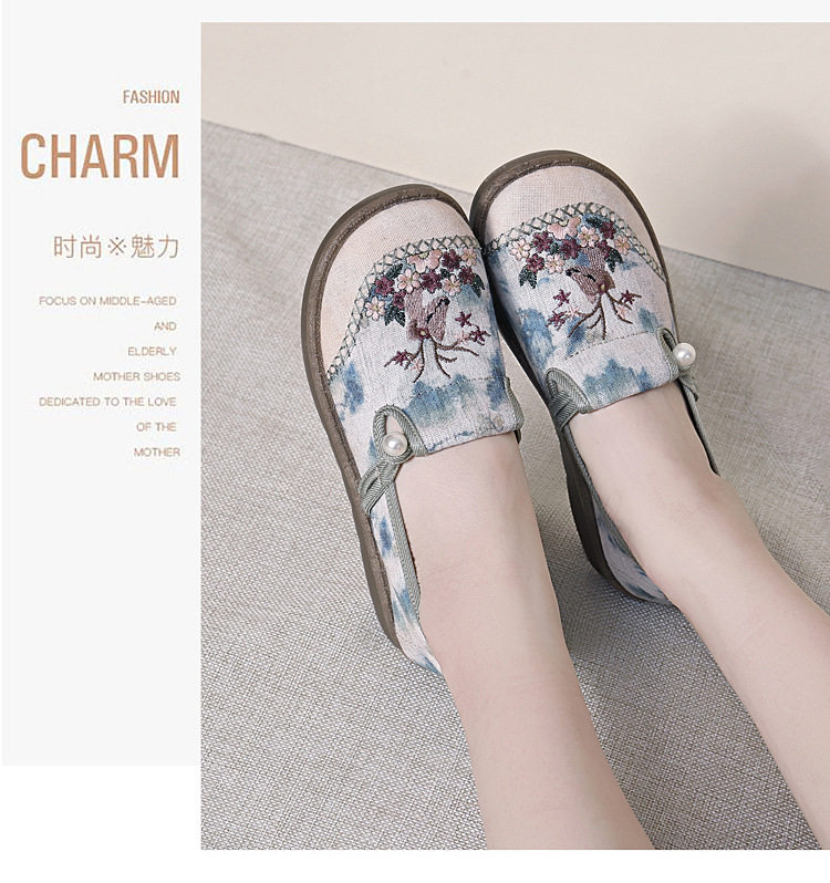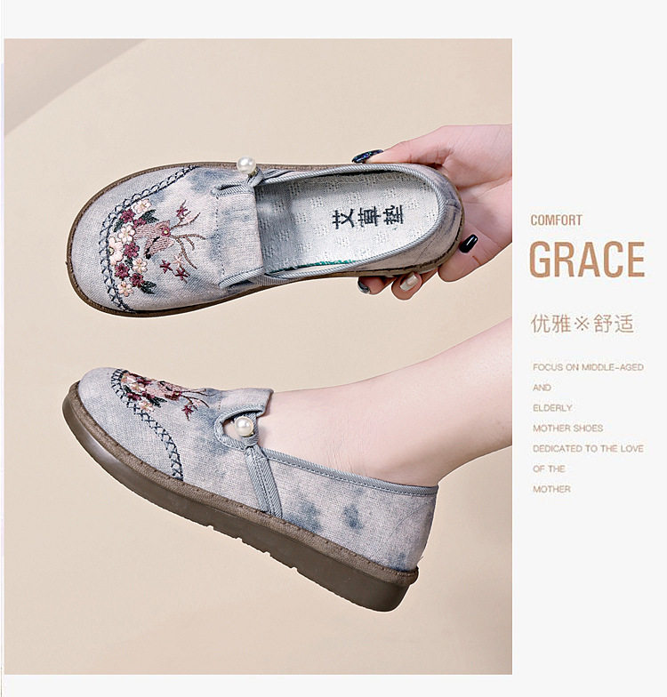 Shoes Women's New All-match Spring Ethnic Style Embroidered Shoes Old Beijing Cloth Shoes Women's Hanfu Shoes Mom Casual Shoes