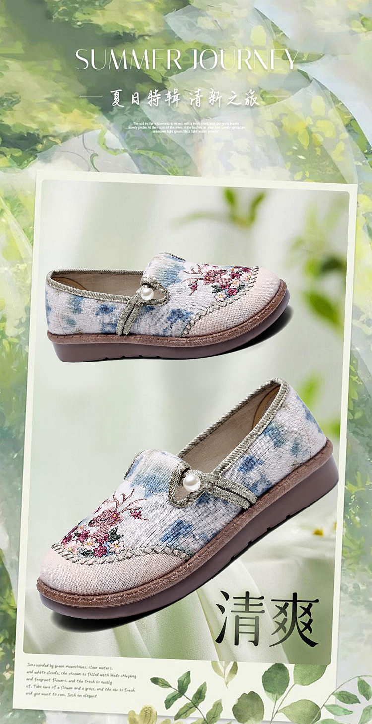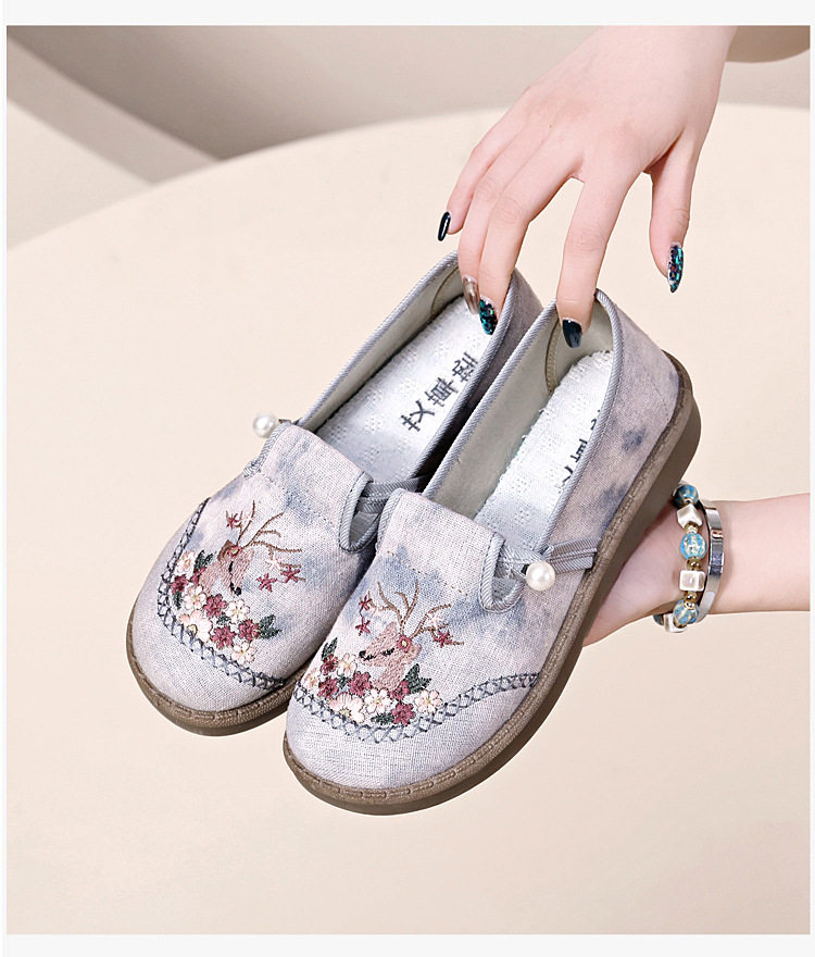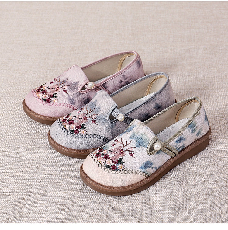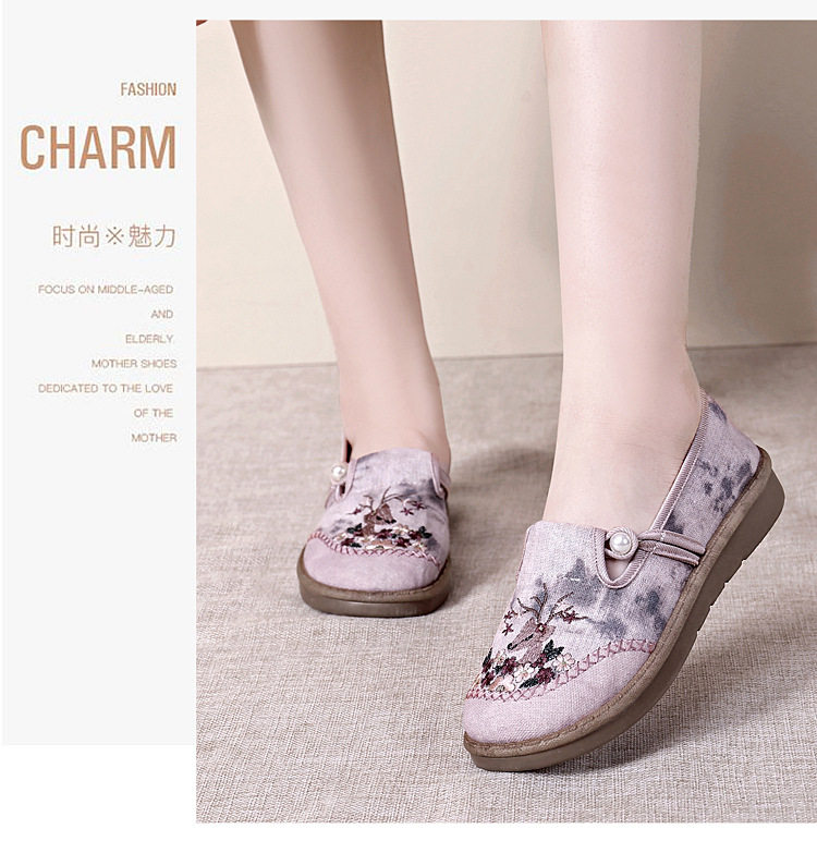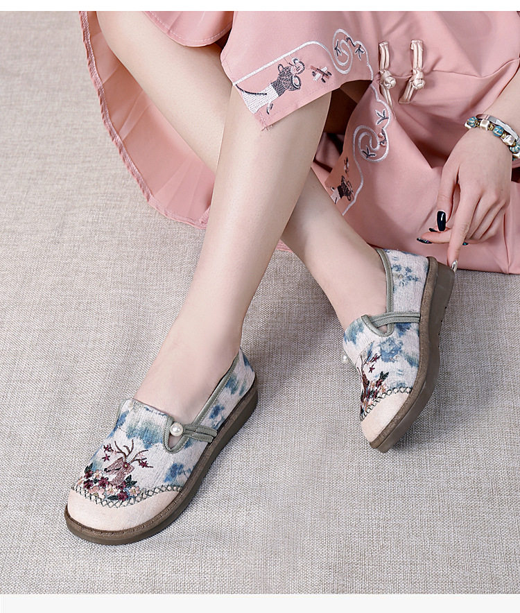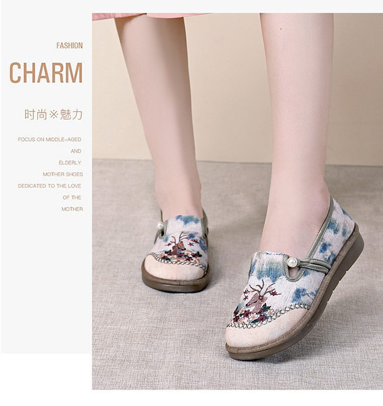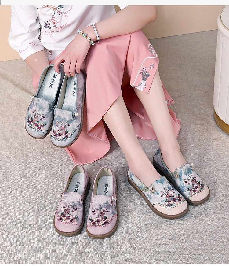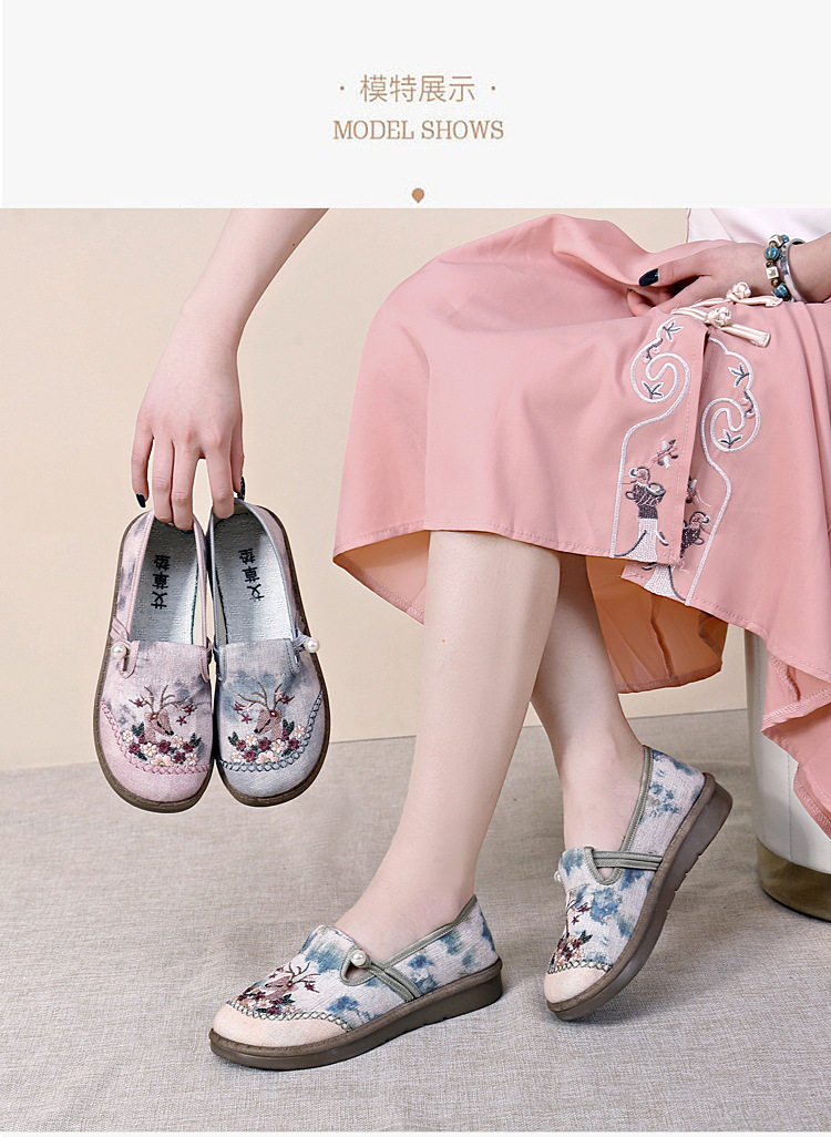 Shoes Women's New All-match Spring Ethnic Style Embroidered Shoes Old Beijing Cloth Shoes Women's Hanfu Shoes Mom Casual Shoes