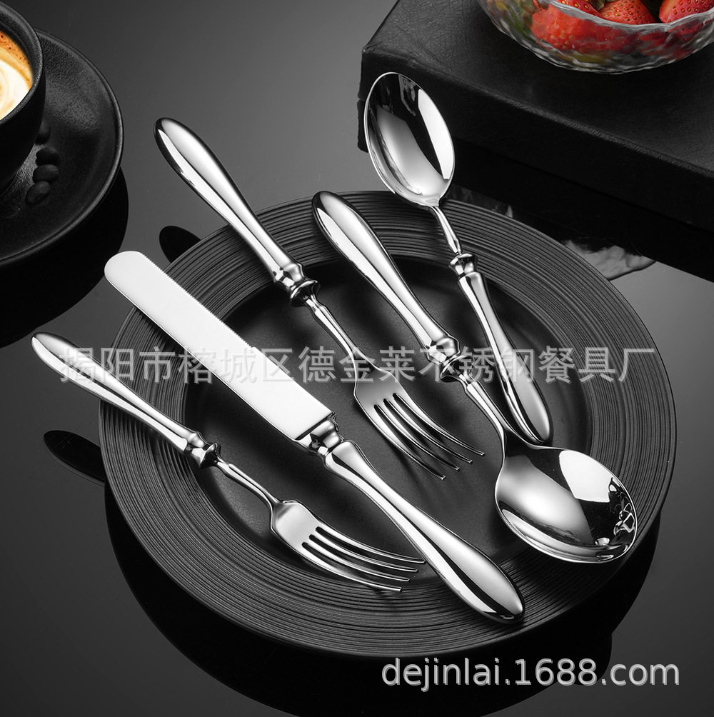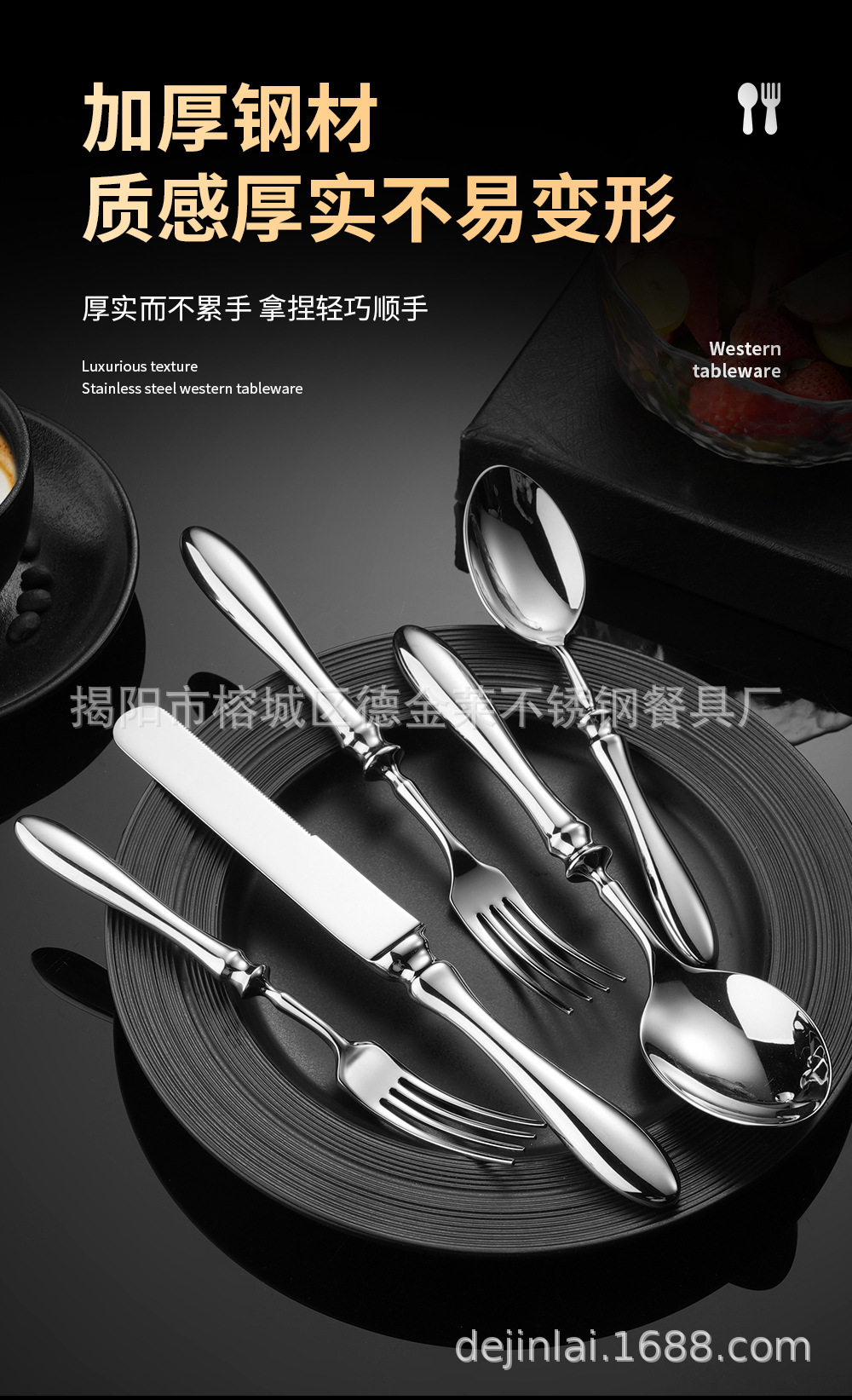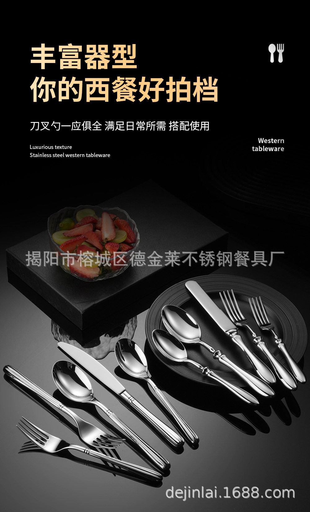 Cross-Border Wholesale Western-Style Knife, Fork, and Spoon Forged from 304 Stainless Steel Knife, Fork, and Spoon Set Stainless Steel Western-Style Tableware Set