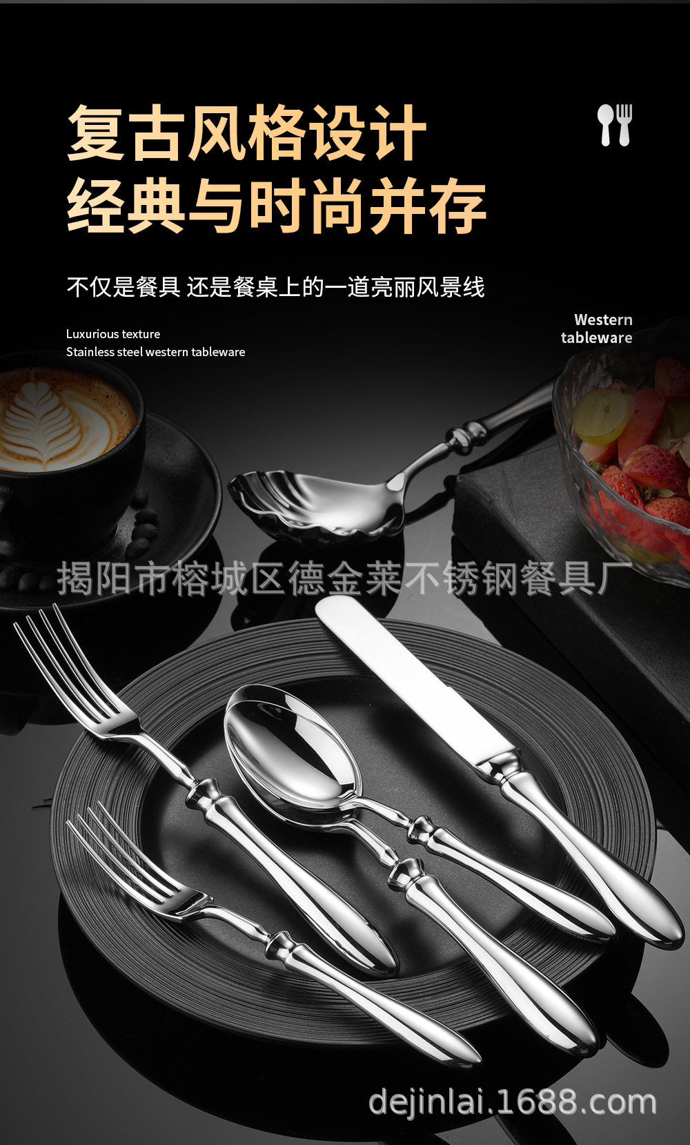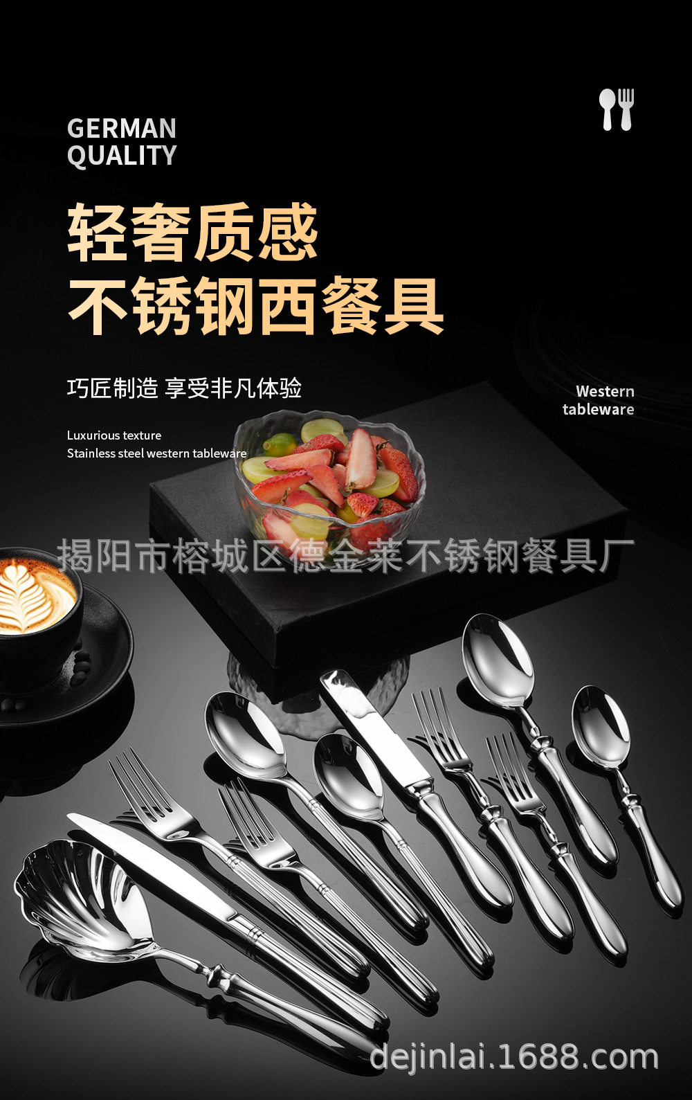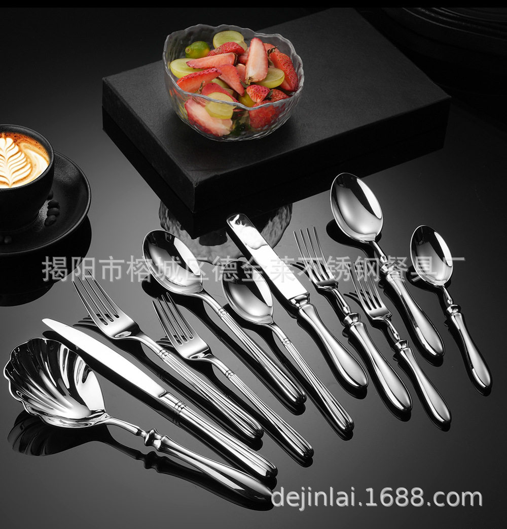 Cross-Border Wholesale Western-Style Knife, Fork, and Spoon Forged from 304 Stainless Steel Knife, Fork, and Spoon Set Stainless Steel Western-Style Tableware Set