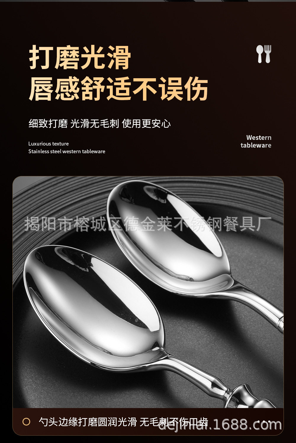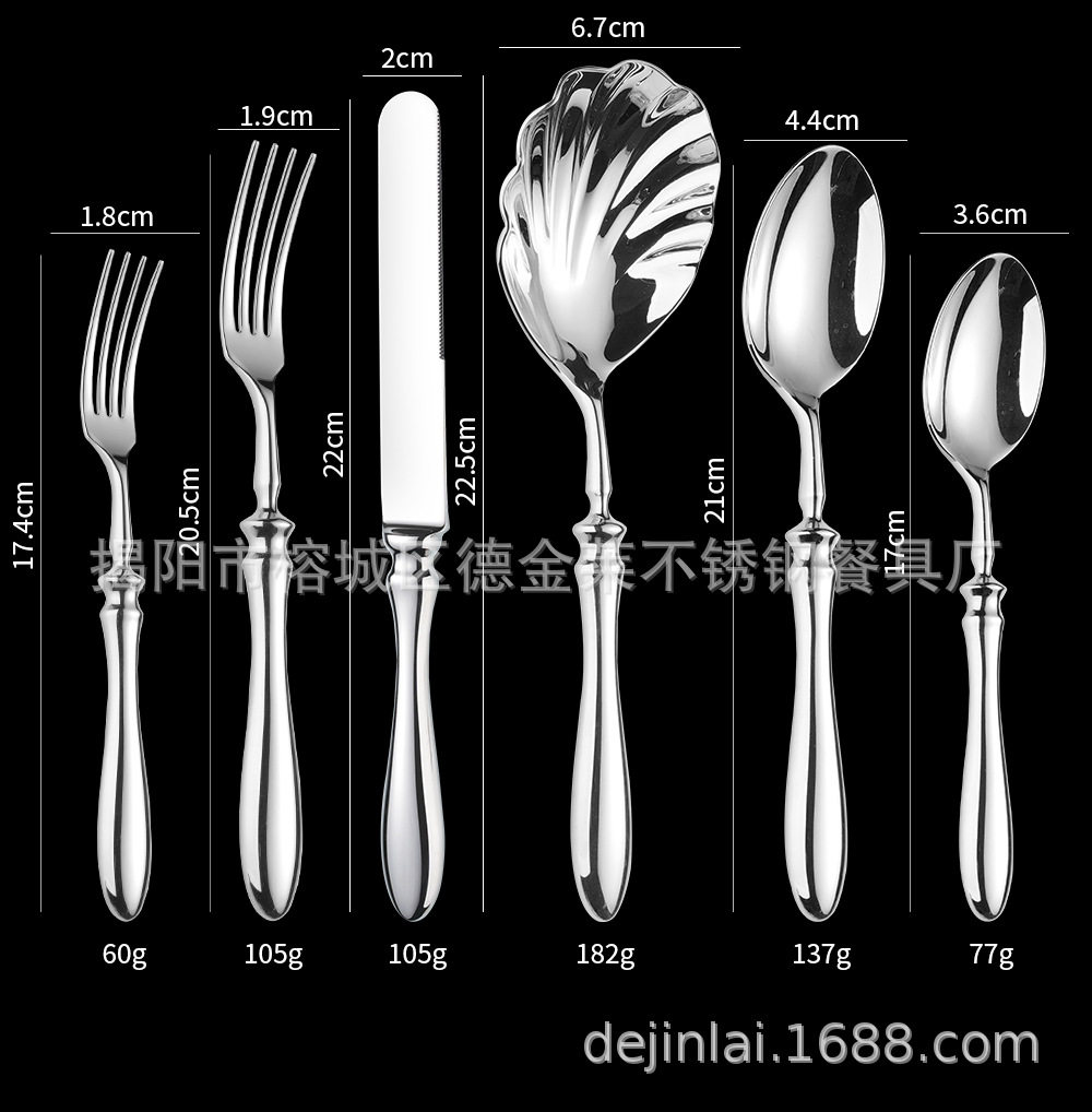 | Color | Gourd handle-table knife (420),Gourd handle-table spoon (304),Gourd handle-fork (304),Gourd handle-dessert spoon (304),Gourd handle-dessert fork (304),Gourd handle-shell public spoon (304),Gourd handle (six-piece set),Multi-sided handle-table knife (420),Multi-sided handle-table spoon (304),Multi-sided handle-fork (304),Multi-sided handle-dessert spoon (304),Multi-sided handle-dessert fork (304),Multi-sided handle (set of five) |