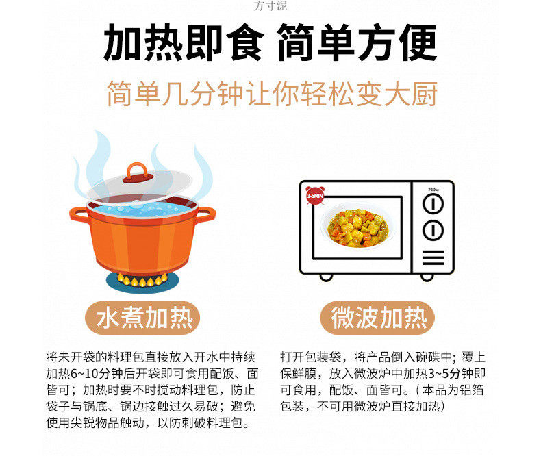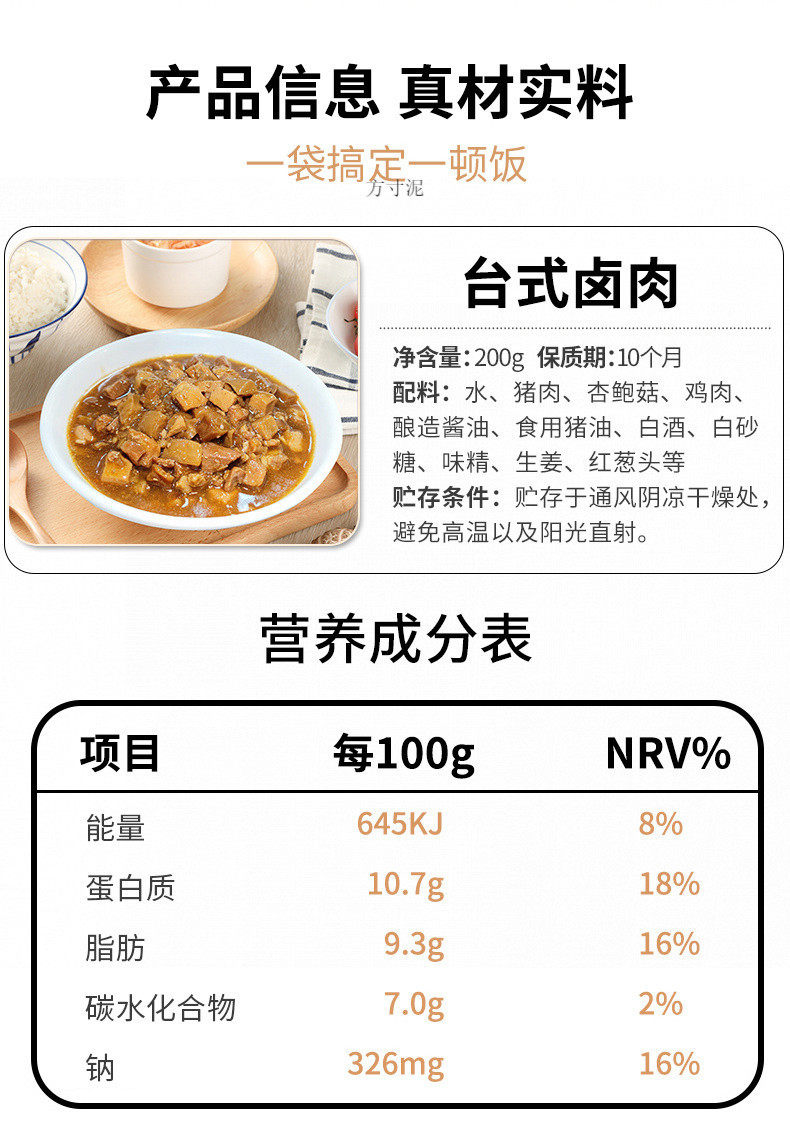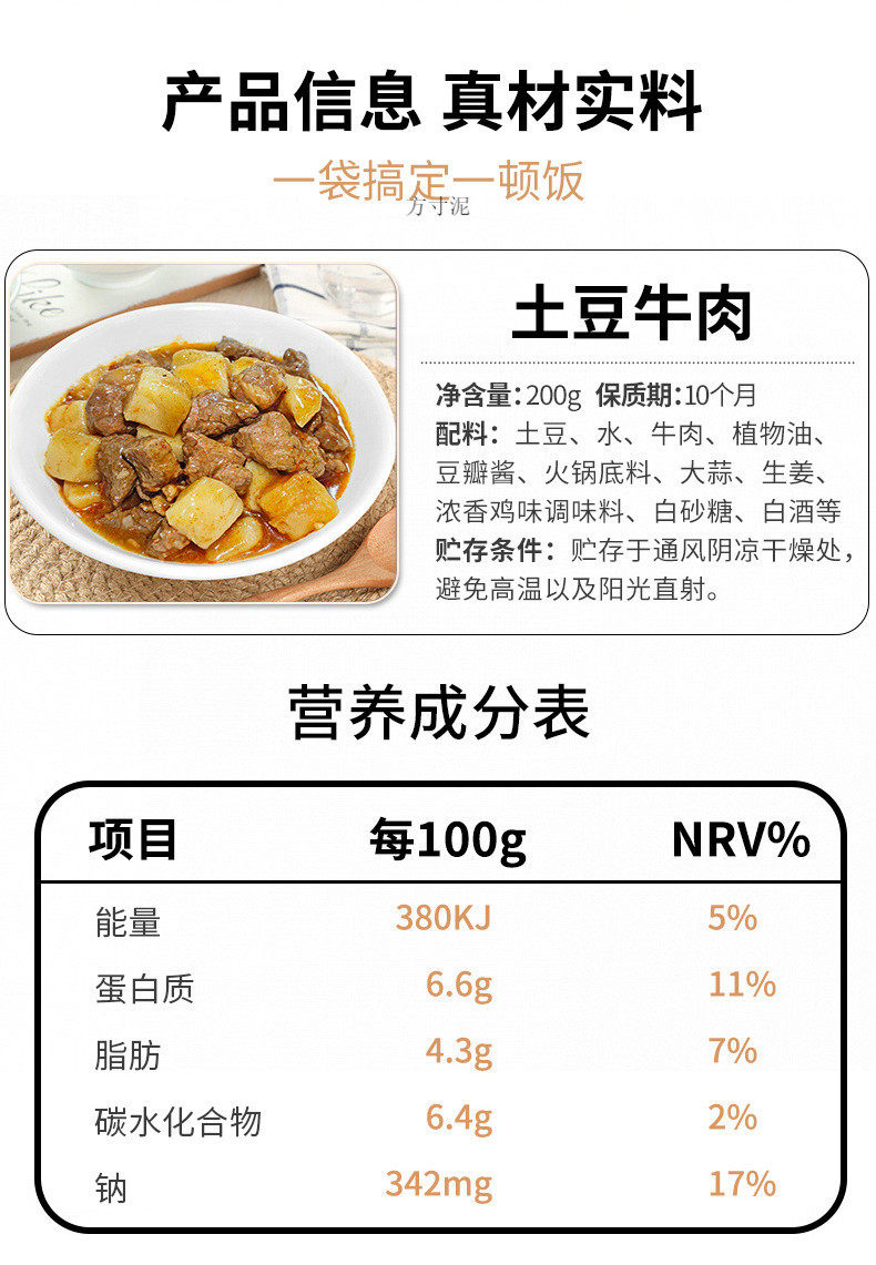| Packaging specifications | Heated vegetable curry chicken + storage method [normal temperature] - [3 bags] ~ limited quantity,Heated plate braised pork + storage method [normal temperature] - [3 bags] ~ limited quantity,Heated fish-flavored shredded pork + storage method [normal temperature] - [3 bags] ~ limited quantity,Heated mushroom and chicken + storage method [normal temperature] - [3 bags] ~ limited quantity,Heated dishes [various dishes] + storage method [room temperature] - [3 bags] ~ limited quantity, get yours before they're gone!,Heated vegetable potato beef + storage method [normal temperature] - [3 bags] ~ limited quantity,Heated vegetable curry chicken + storage method [normal temperature] - [5 bags] ~ limited quantity,Heated plate braised pork + storage method [normal temperature] - [5 bags] ~ limited quantity,Heated fish-flavored shredded pork + storage method [normal temperature] - [5 bags] ~ limited quantity,Heated mushroom and chicken + storage method [normal temperature] - [5 bags] ~ limited quantity,Heated dishes [various dishes] + storage method [room temperature] - [5 bags] ~ limited quantity, get yours before they're gone!,Heated vegetable potato beef + storage method [normal temperature] - [5 bags] ~ limited quantity,Heated vegetable curry chicken + storage method [normal temperature] - [10 bags] ~ limited quantity,Heated dishes [various dishes] + storage method [room temperature] - [10 bags] ~ limited quantity, get yours before they're gone!,Heated plate braised pork + storage method [normal temperature] - [10 bags] ~ limited quantity,Heated fish-flavored shredded pork + storage method [normal temperature] - [10 bags] ~ limited quantity,Heated mushroom and chicken + storage method [normal temperature] - [10 bags] ~ limited quantity,Heated vegetable, potato & beef + storage instructions [room temperature] - [10 bags] ~ limited stock, get yours before they're gone! |