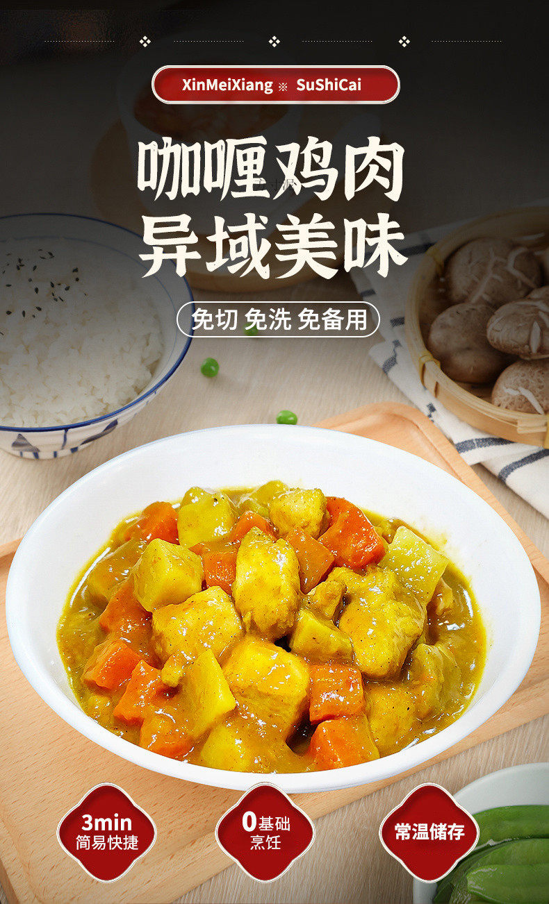 Xinmeixiang Room Temperature Curry Chicken Instant Bagged Cooking Bag Takeaway Commercial Convenient Ready-To-Eat Fast Food Heated Lid