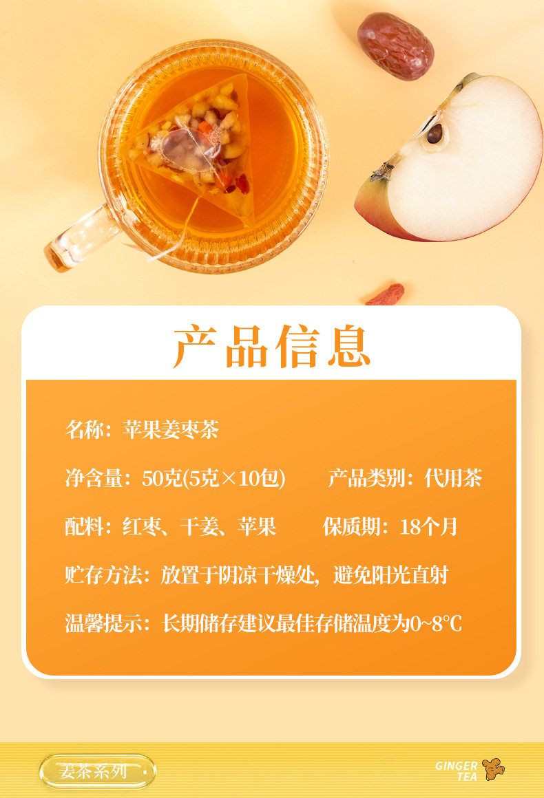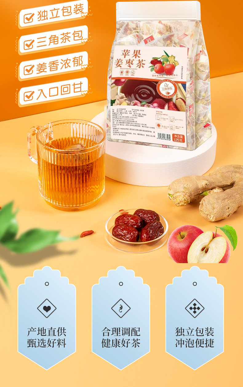 Apple, Ginger, and Jujube Tea Is a Health-Preserving Substitute Tea with Stable Supply, Fast Delivery, and Quality Assurance for Cross-Border Sales
