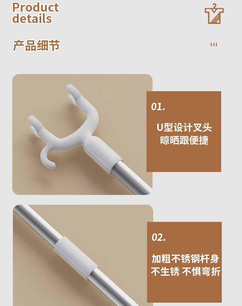 Clothes Pole, Household Telescopic Clothes Drying Pole, a Fork, a Clothes Pole, a Clothes Hanger Pole, a Clothes Fork to Hang