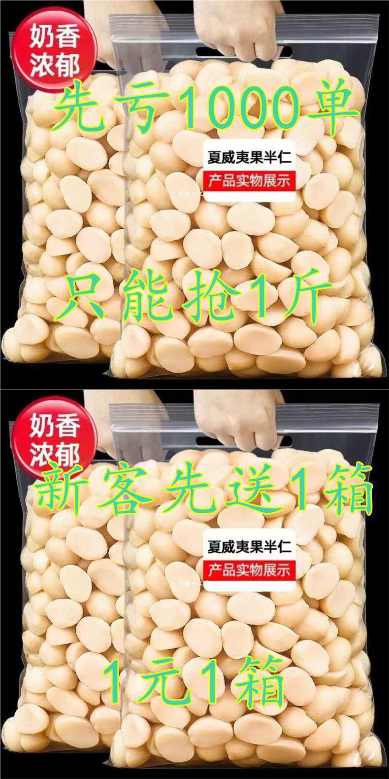 | Taste | Preferred granules】1 can of milk flavor, total 250.5g without shell,Preferred granules】milk flavor 2 cans total 500.5g without shell,Impulse] 1 can of milk flavor, total 250.5g without shell,Preferred granules] 4 cans totaling 1000.5g without shells,Bag] milk flavor 1 bag 250.5g without shell,Bag] milk flavor 2 bags total 500.5g without shell,Original flavor】2 bags of original flavor, total 500.5g, half a piece,Milky nuts: small package 500g [about 35 bags],Original nuts: small package 500g [about 35 bags],Special offer for fresh shell-free [send 10g],Fresh nuts 11g: |