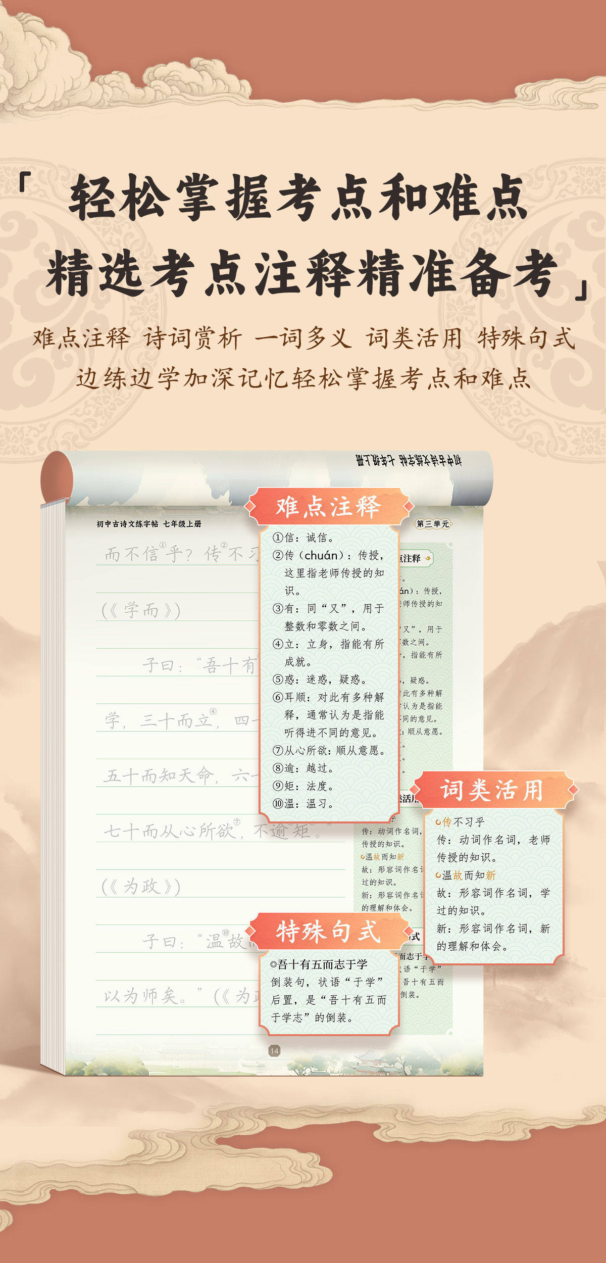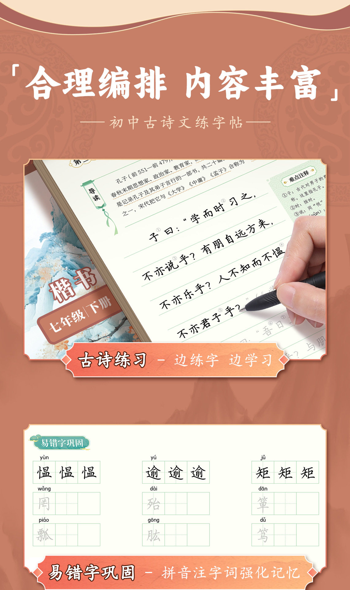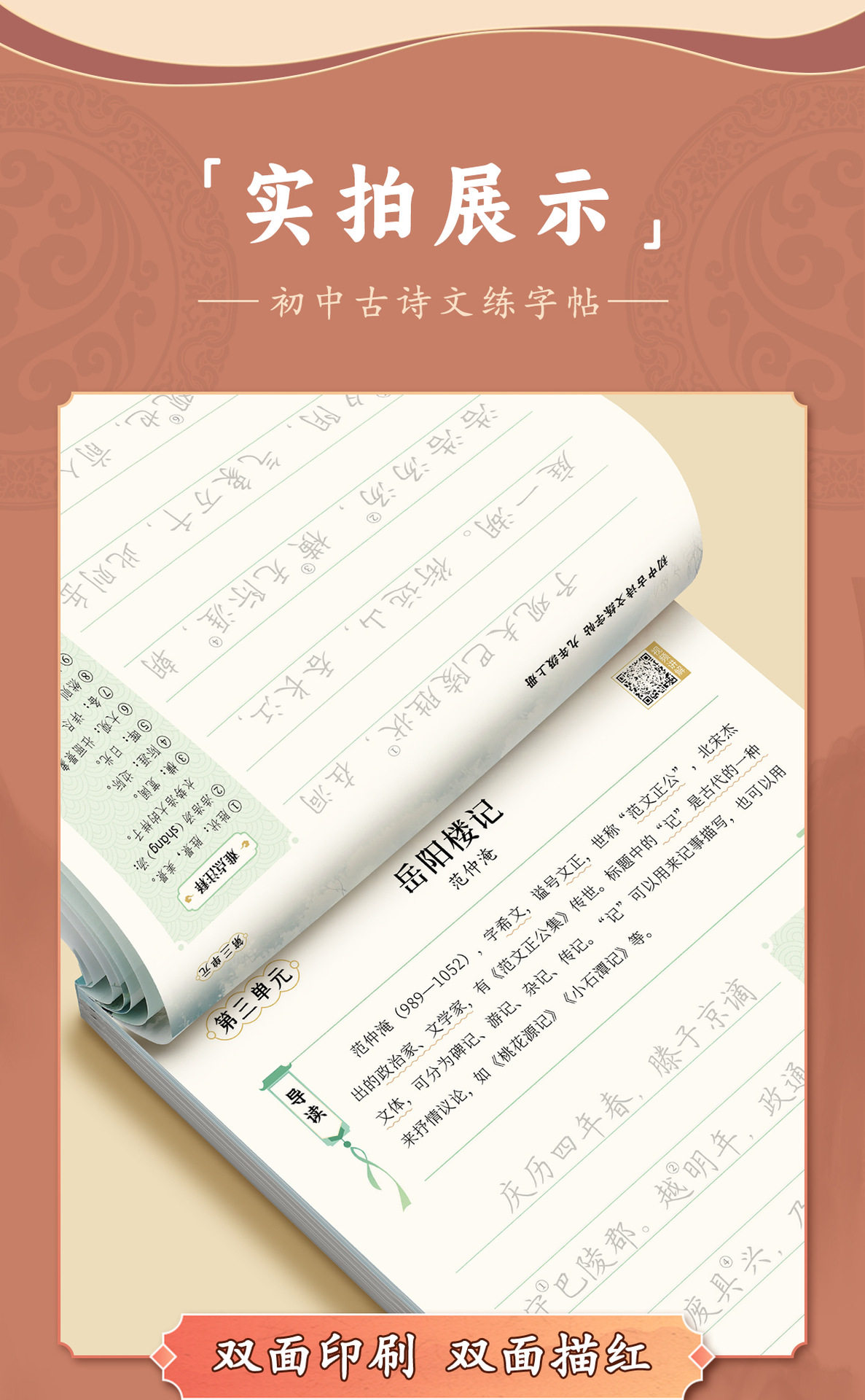 Grade 789 Ancient Poetry and Essay Practising Copybook Junior High School Students Must Memorize Ancient Poetry and Essay Copying Red Book