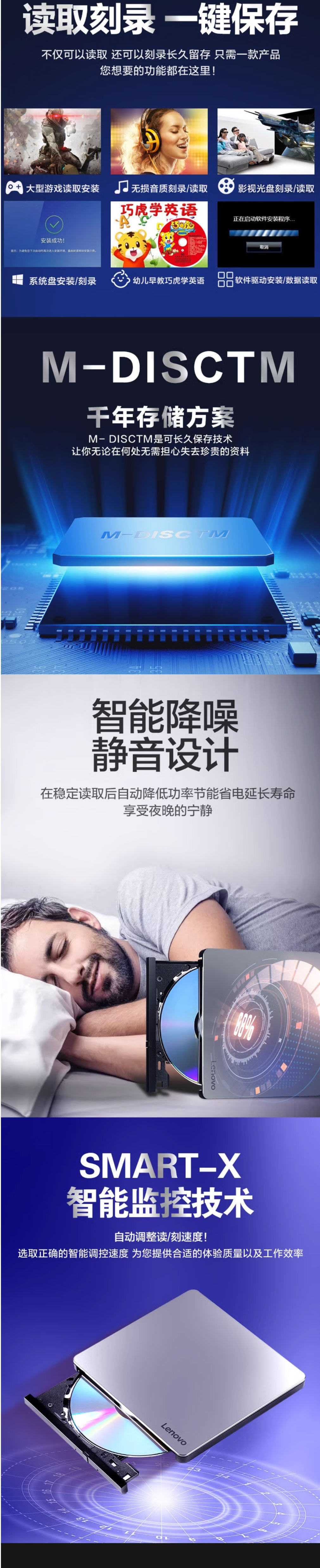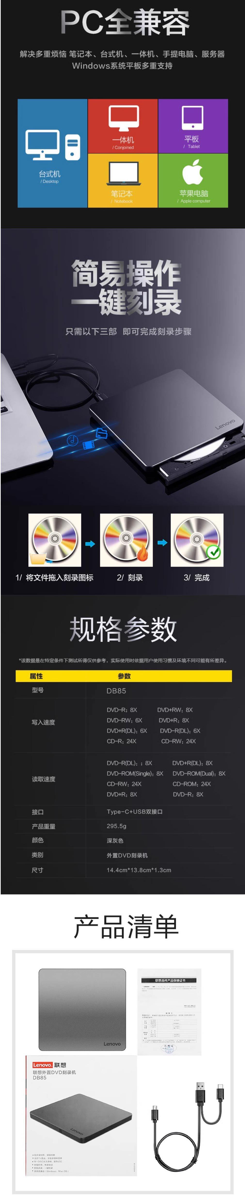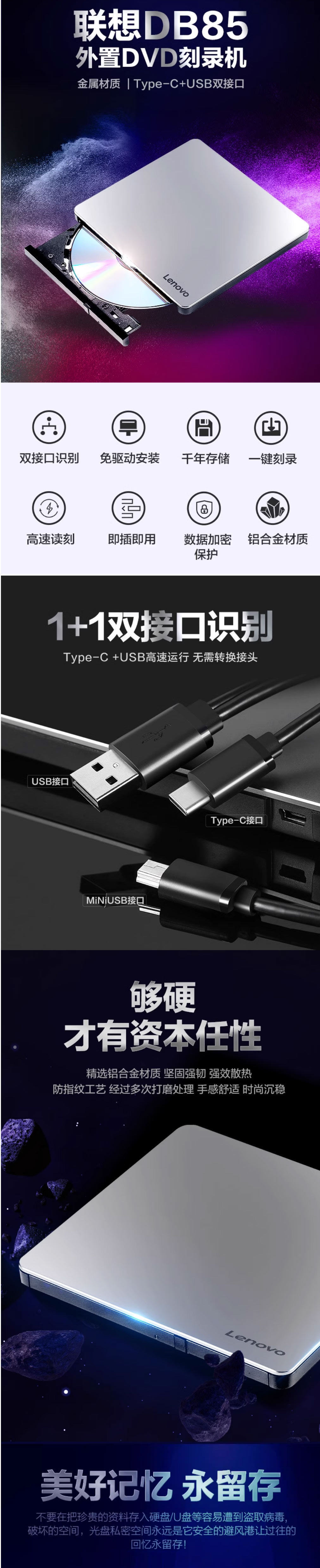 Lenovo Lenovo8 double speed external optical drive DB85 aluminum alloy material for Type-C/USB interface 75max
