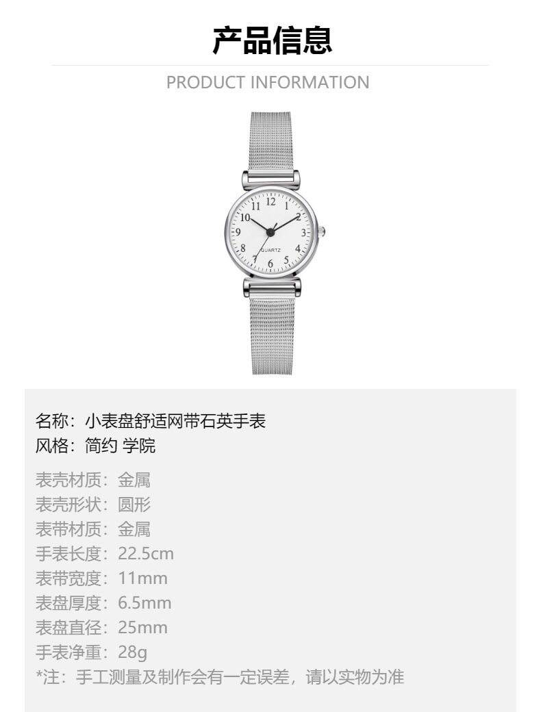 Women's Watch College Style Alloy Watch Universal Multi-Surface Mesh Strap Women's Quartz Watch Cross-Border Alloy Watch