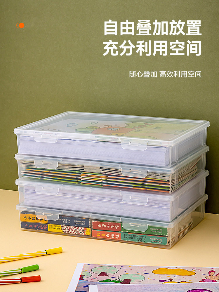 Office Document Storage Box with Lid Desk Document Storage Box Transparent Flip Cover A3 Paper A4 Storage Box