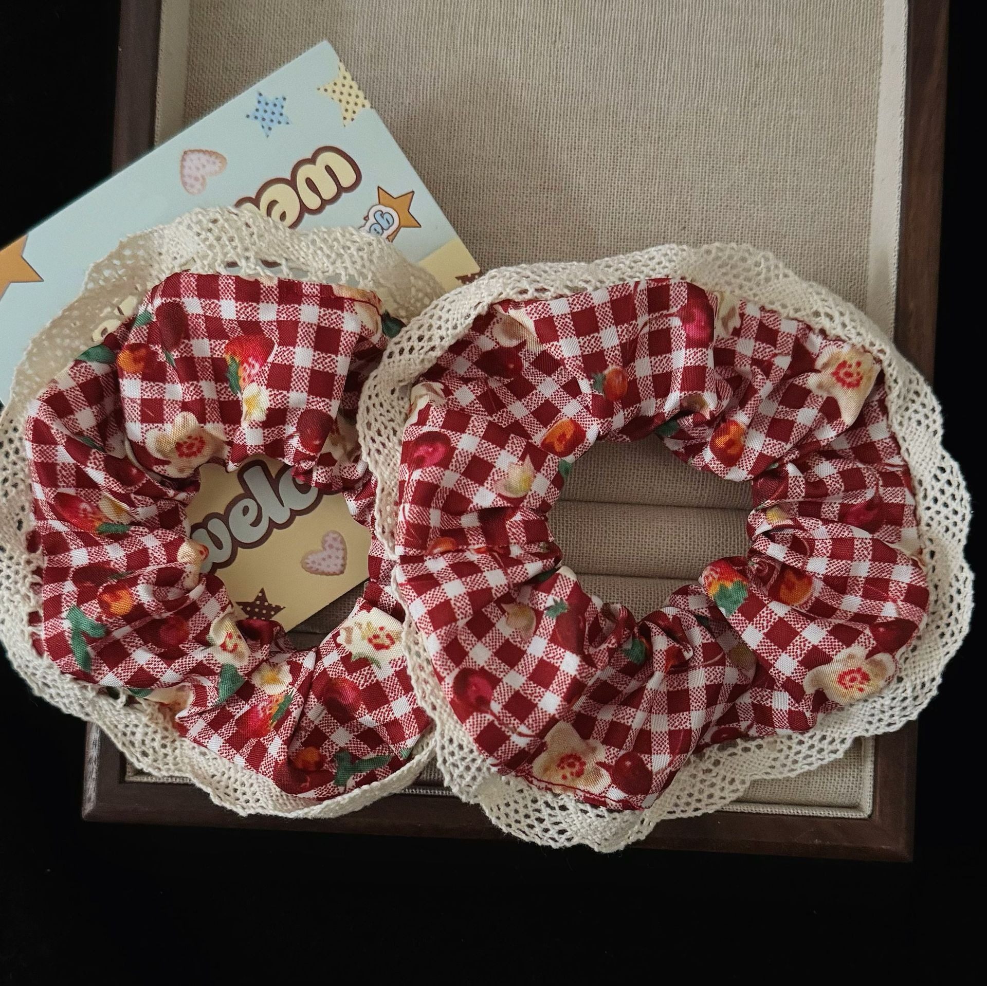 | Color | Red plaid lace large intestine hair tie,Blue plaid lace large intestine hair tie |