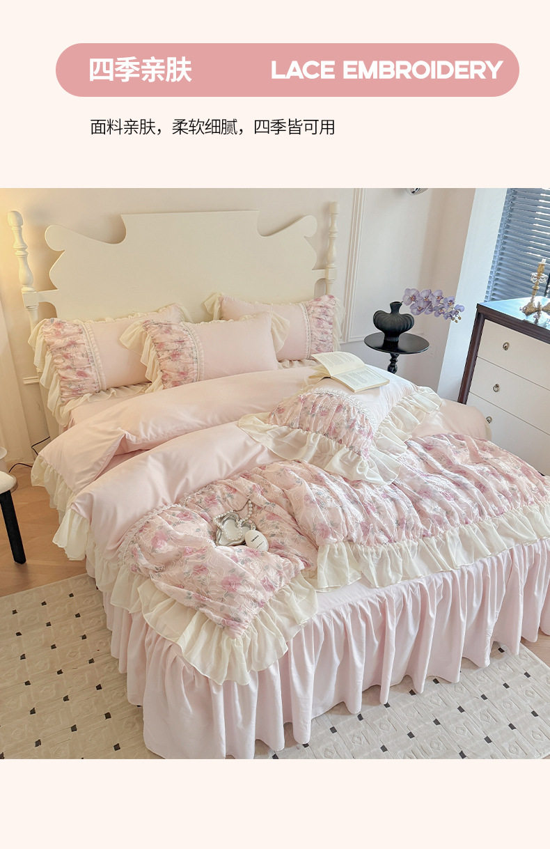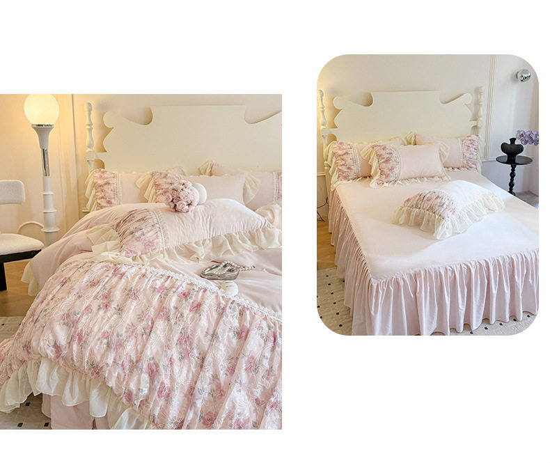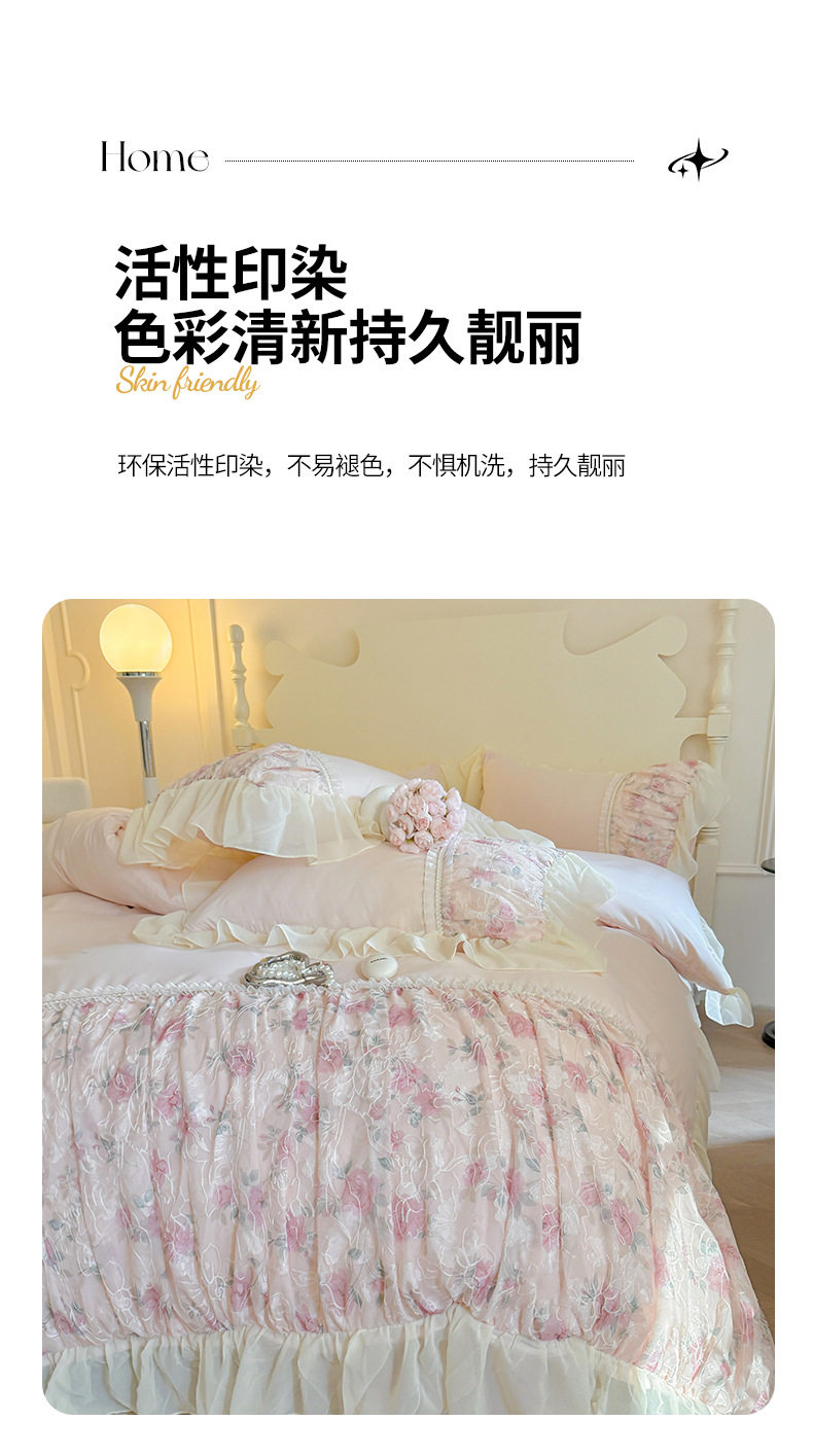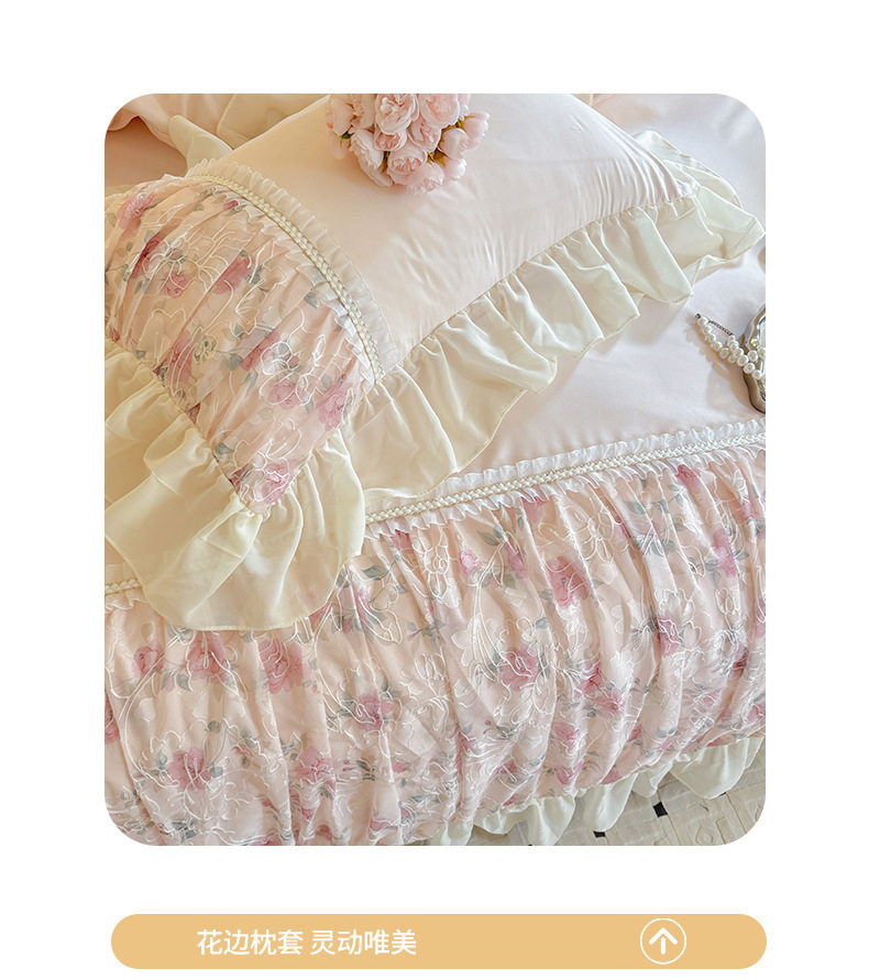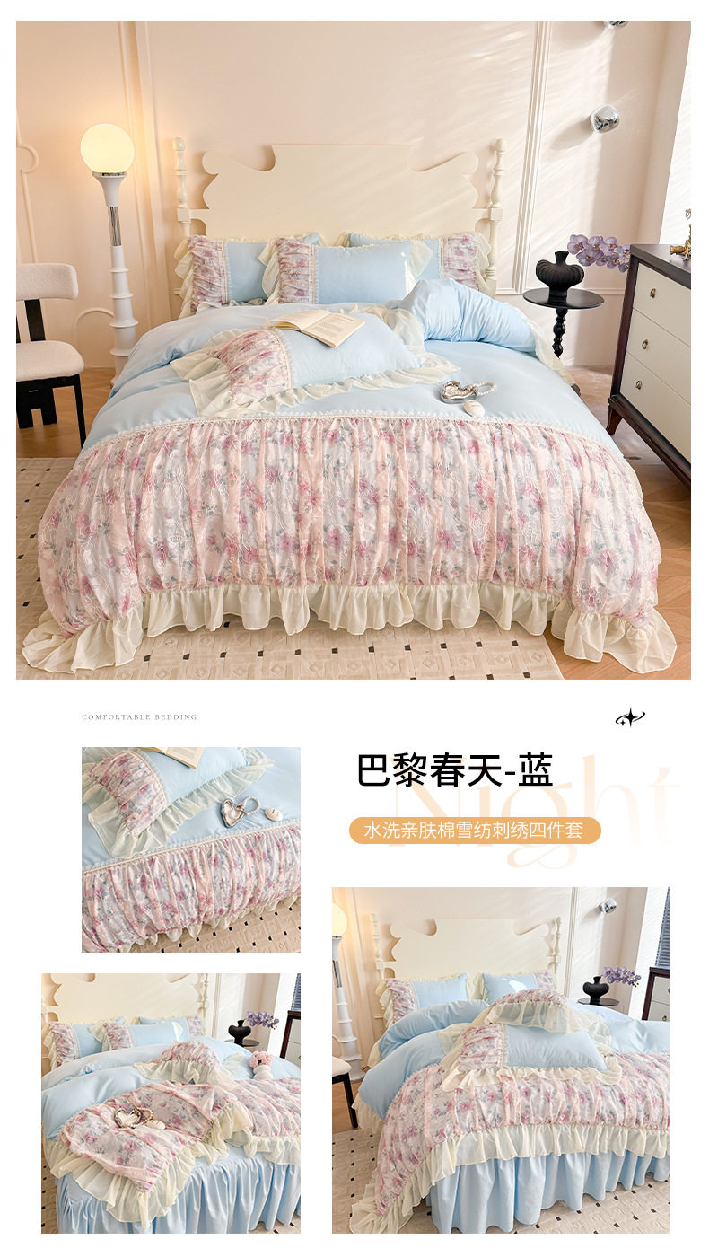French Princess Style Washing Cotton Bed Four-piece Set Girl's Heart Lace Embroidered Quilt Cover Bed Sheet Three-piece Set