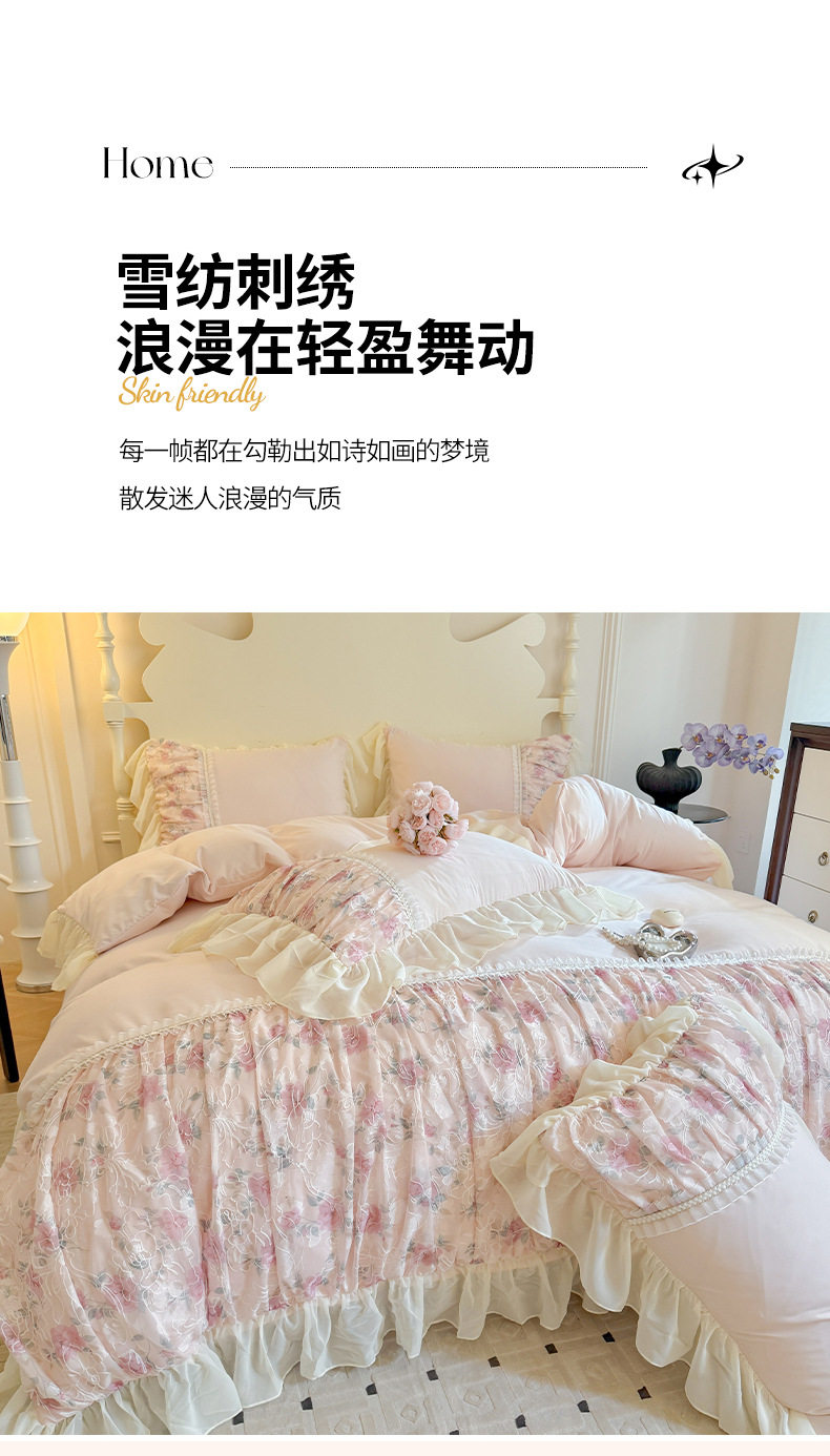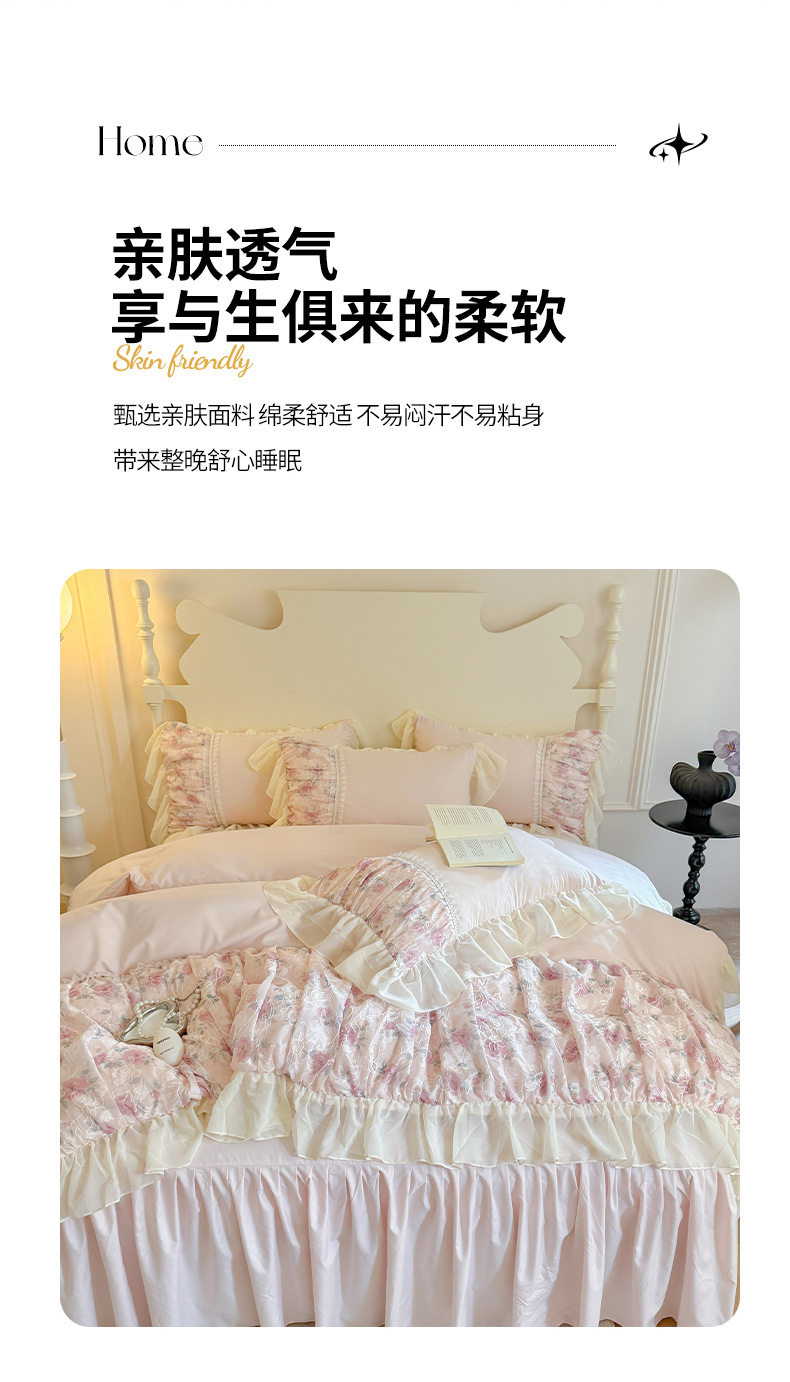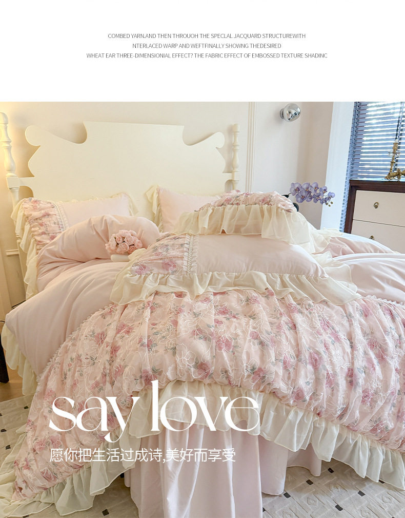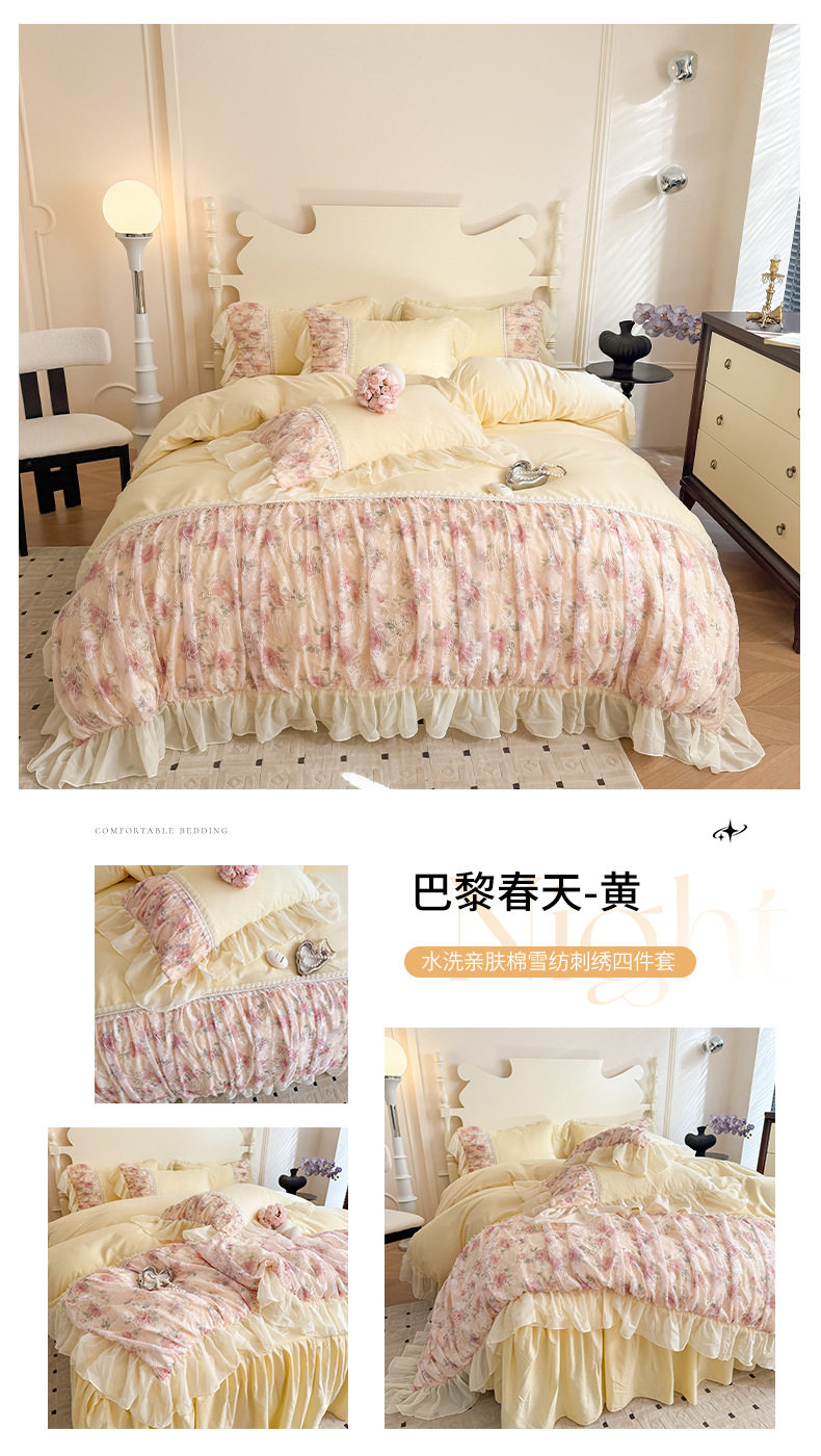French Princess Style Washing Cotton Bed Four-piece Set Girl's Heart Lace Embroidered Quilt Cover Bed Sheet Three-piece Set