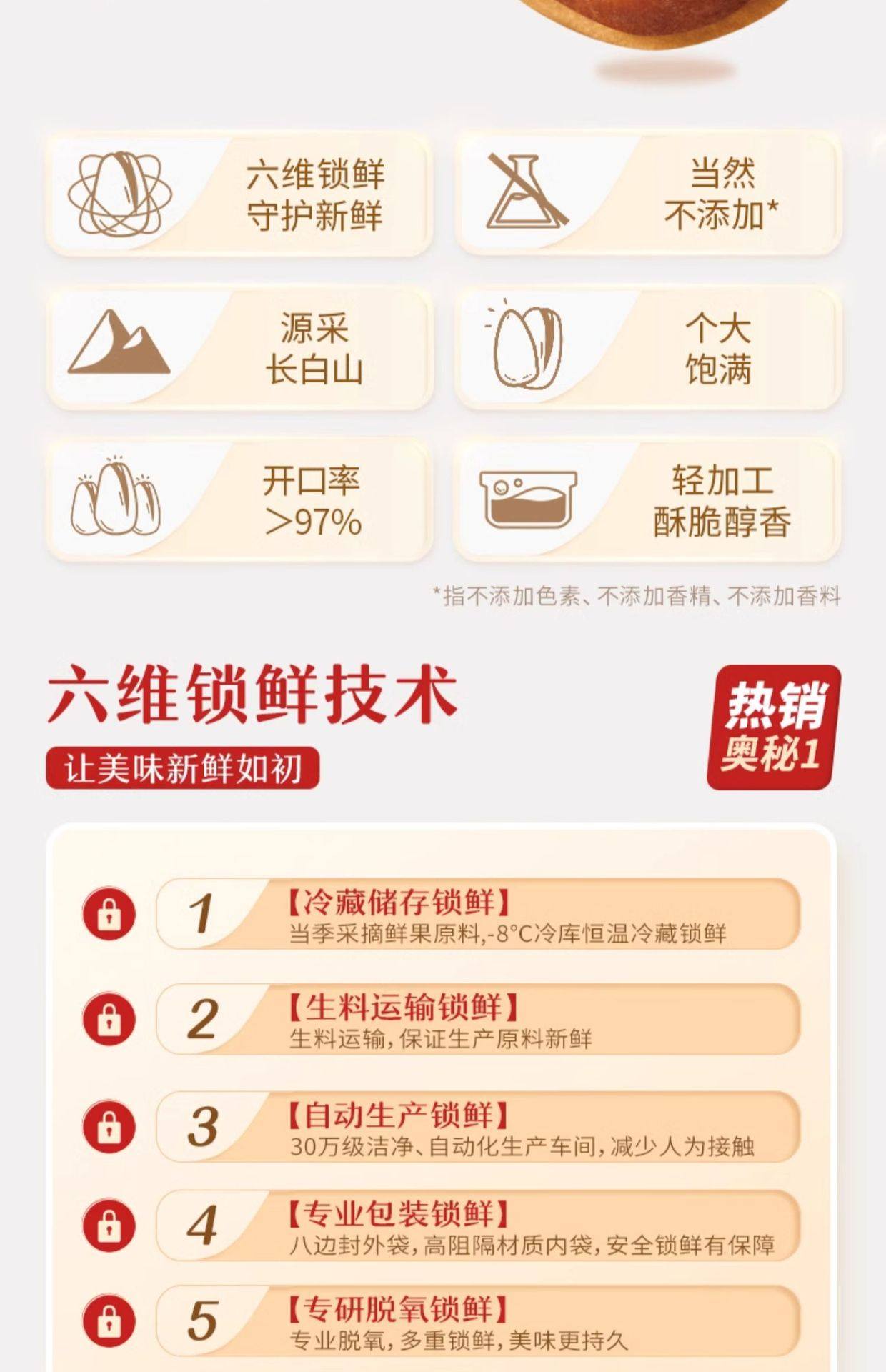 | Packaging specifications | [northeastern pine nuts 500g] selected northeastern korean pine nuts,[northeastern pine nuts 500g*2 bags] carefully selected large fruits,[northeastern pine nuts 25gx10 bags] sharing pack,[hand-peeled brazilian pine nuts 500g] mass-selling bags,[open pine nuts 110gx4 bags],[open pine nuts 68gx4 bags],[open pine nuts 90gx4 bags],[open pine nuts 250gx2 bags],[open pine nuts 110gx3 bags],[open pine nuts 110gx5 bags] |