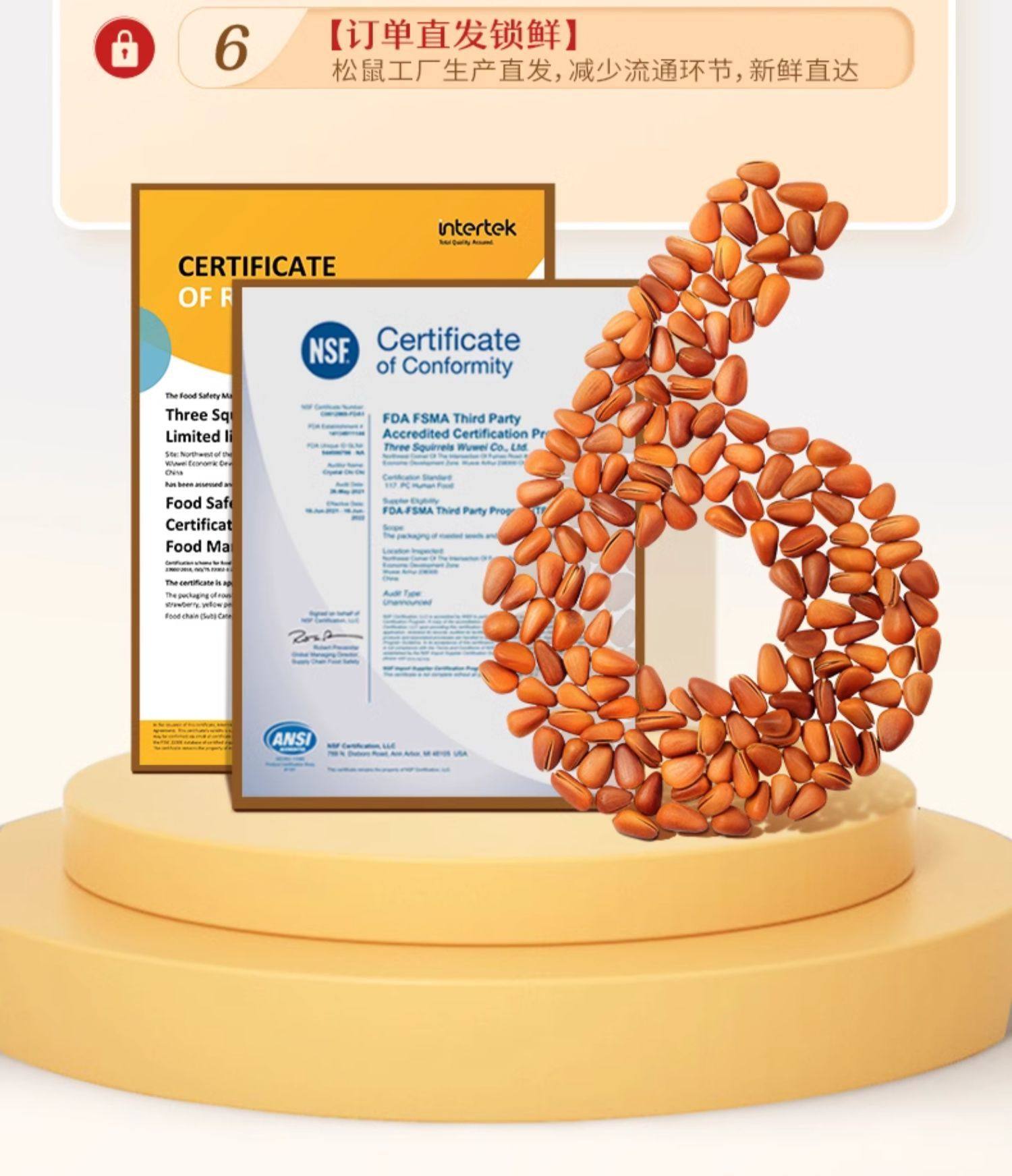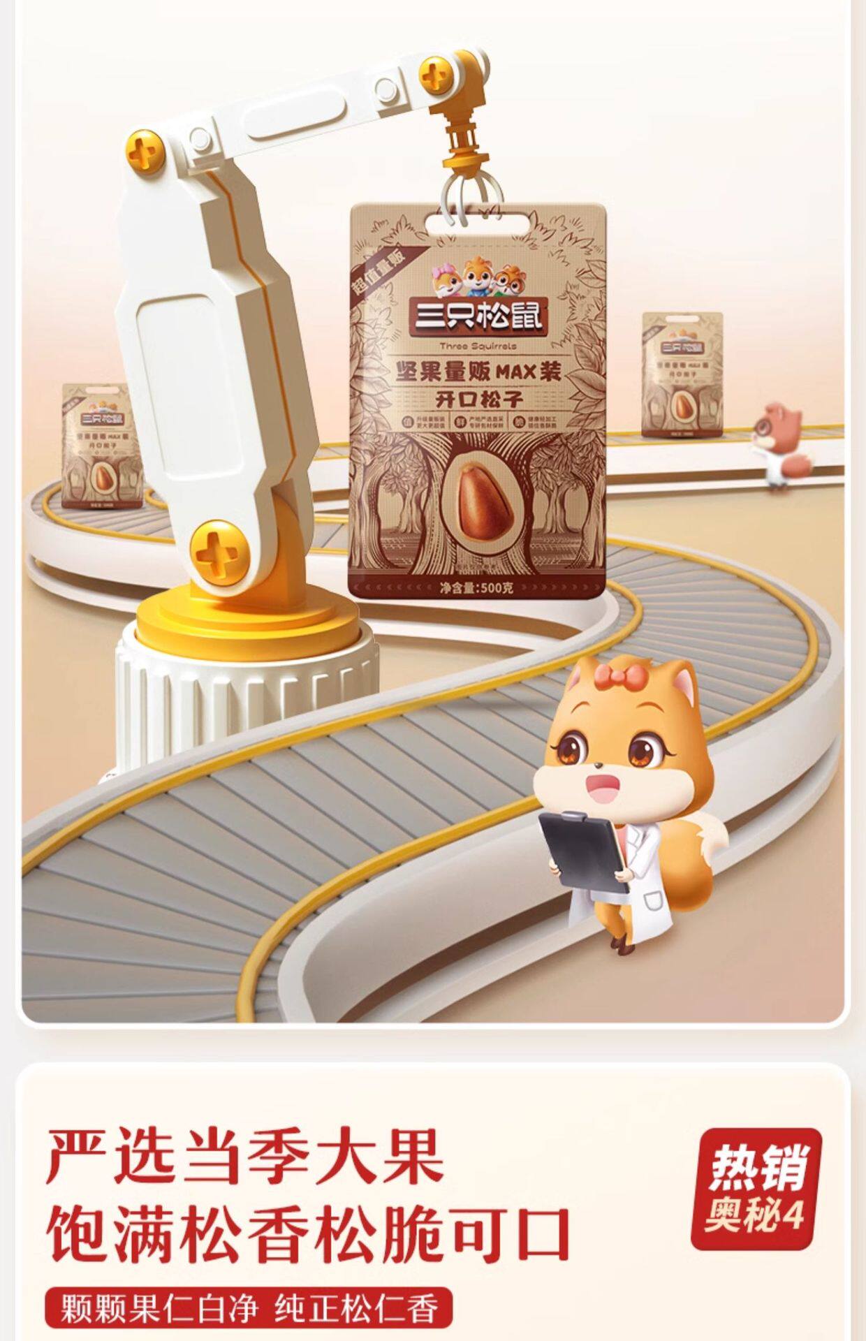 [Three Squirrels Sold 500g Northeast Pine Nuts] 2024 New Products Open Pine Nuts Dried Fruit Snacks Specialty
