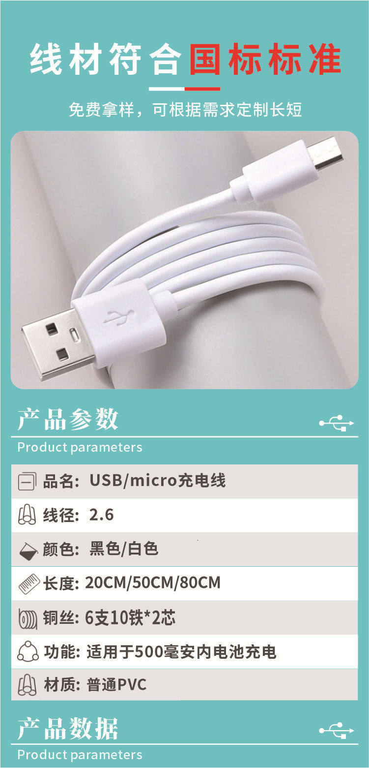 0.2 m micro charging line Android USB data line mobile power distribution line Bluetooth headset V8 charging line