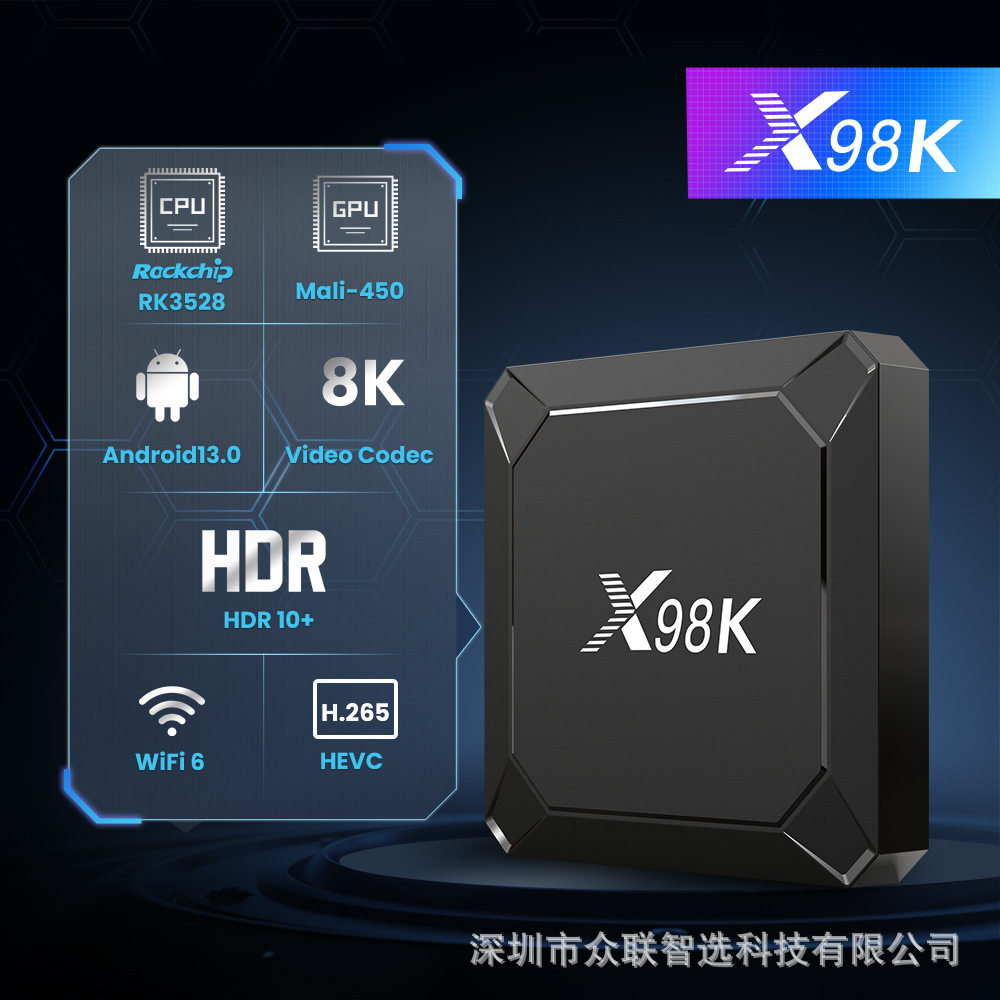X98K Set-Top Box Android 13 Rk3528 Dual-Band Wifi Hd Player Tv Box