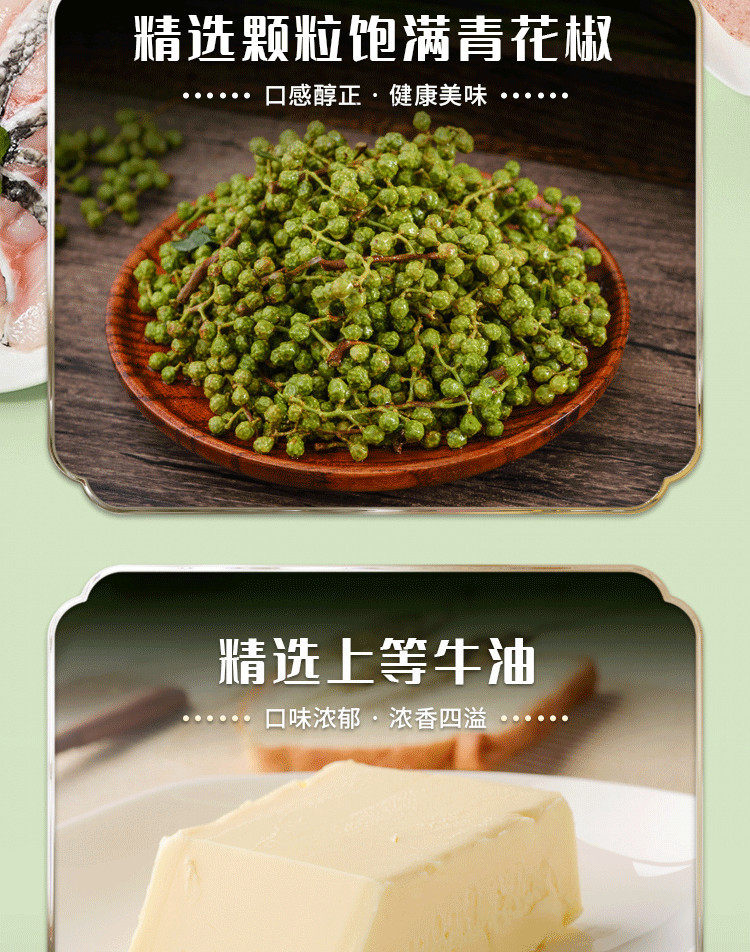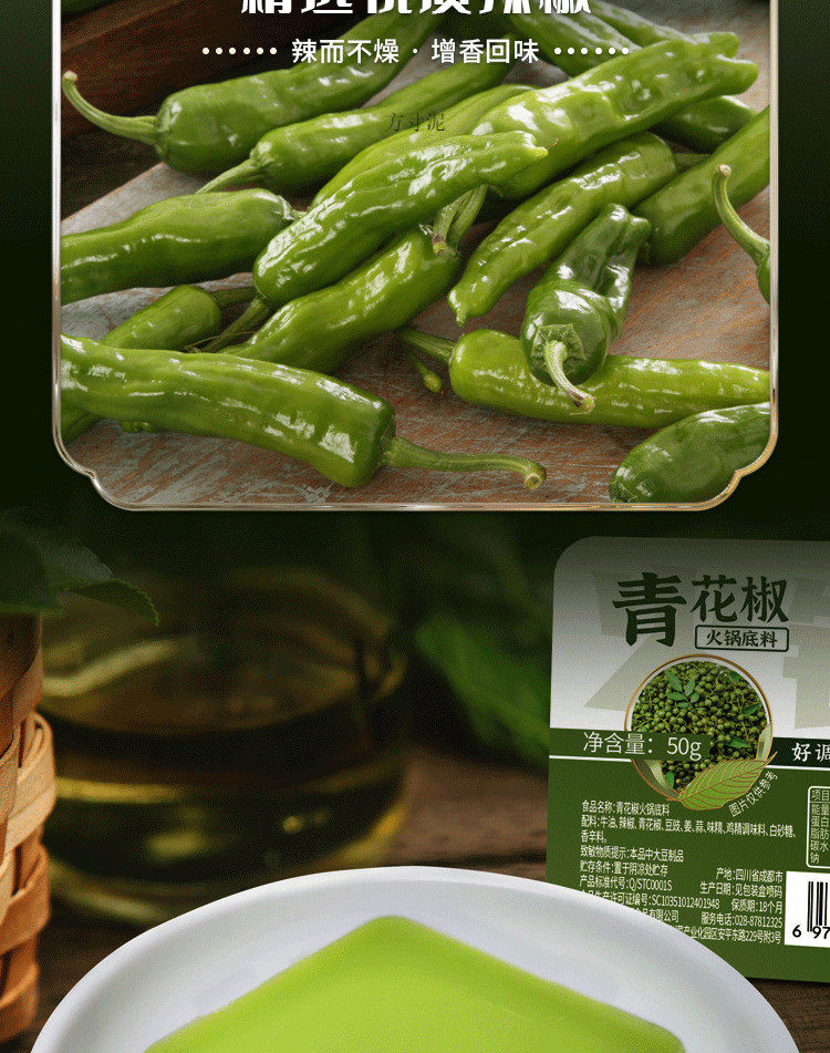 | Packaging specifications | Green pepper hot pot ingredients 5 boxes ~ limited time sale,【spicy & refreshing】sichuan green sichuan pepper hot pot base - 10 boxes! ~ limited-time offer,【soup-friendly】sichuan green sichuan peppercorns 5 boxes + spicy beef tallow hot pot 5 boxes ~ limited-time flash sale!,【sichuan peppercorns】sichuan green peppercorn hot pot base - 20 boxes ~ limited-time flash sale!,10 boxes of sichuan green pepper seasoning + 10 boxes of spicy butter ~ limited time sale |