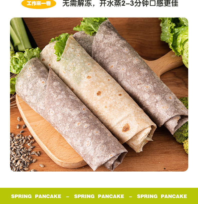 Coarse grain whole wheat buckwheat burrito ready-to-eat saccharin-free 0 low-fat staple food coarse grain cake skin spinach hand-held spring cake breakfast