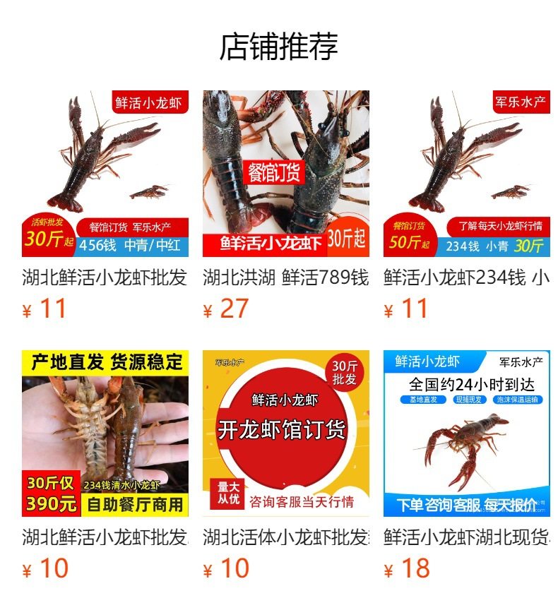| Packaging specifications | 234 qian xiaoqing [small] crayfish,456 qian zhongqing [medium size] crayfish,Daqing【from 15kg】 |