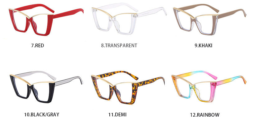| Frame color | Bright black frame white flat,Solid white frame white flat,Porridge water orange frame white flat,Transparent gray frame white flat,Champagne/light tea frame white flat,Transparent green frame white flat,Big red frame white flat,Transparent frame white flat,Khaki frame, white lens,Black frame gray feet,Tofu/leopard print white flat,Colorful frame white flat |