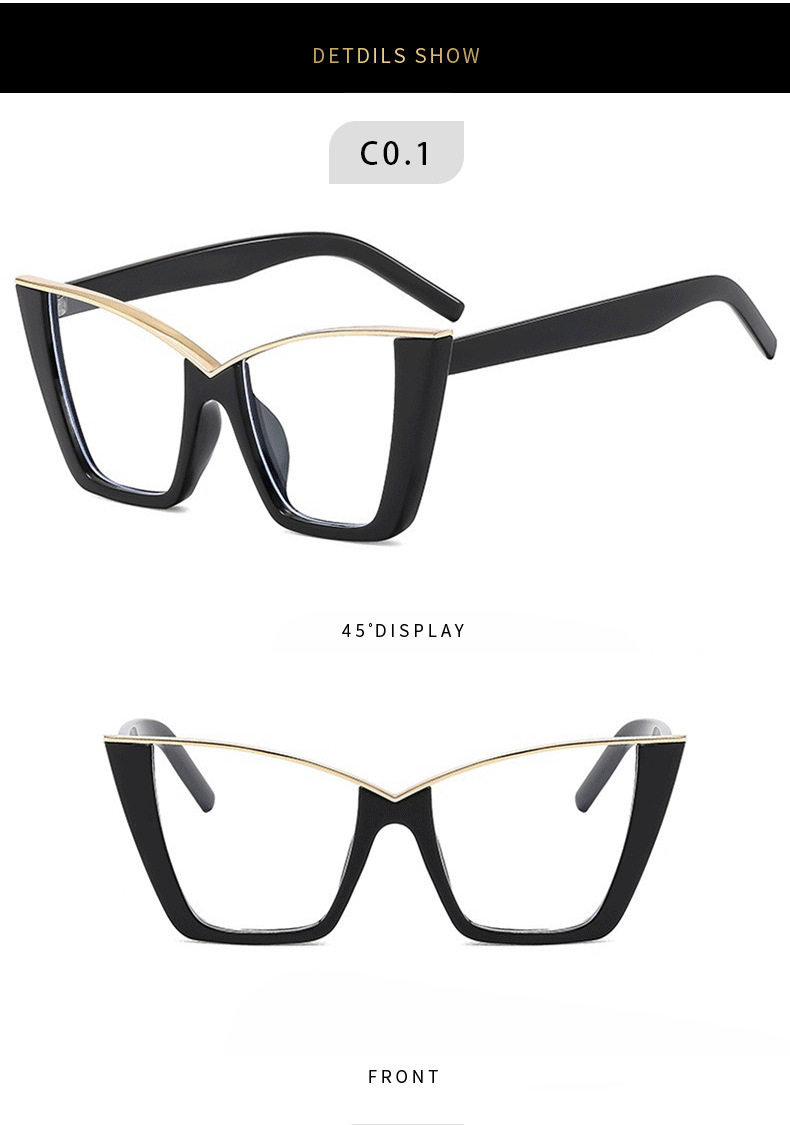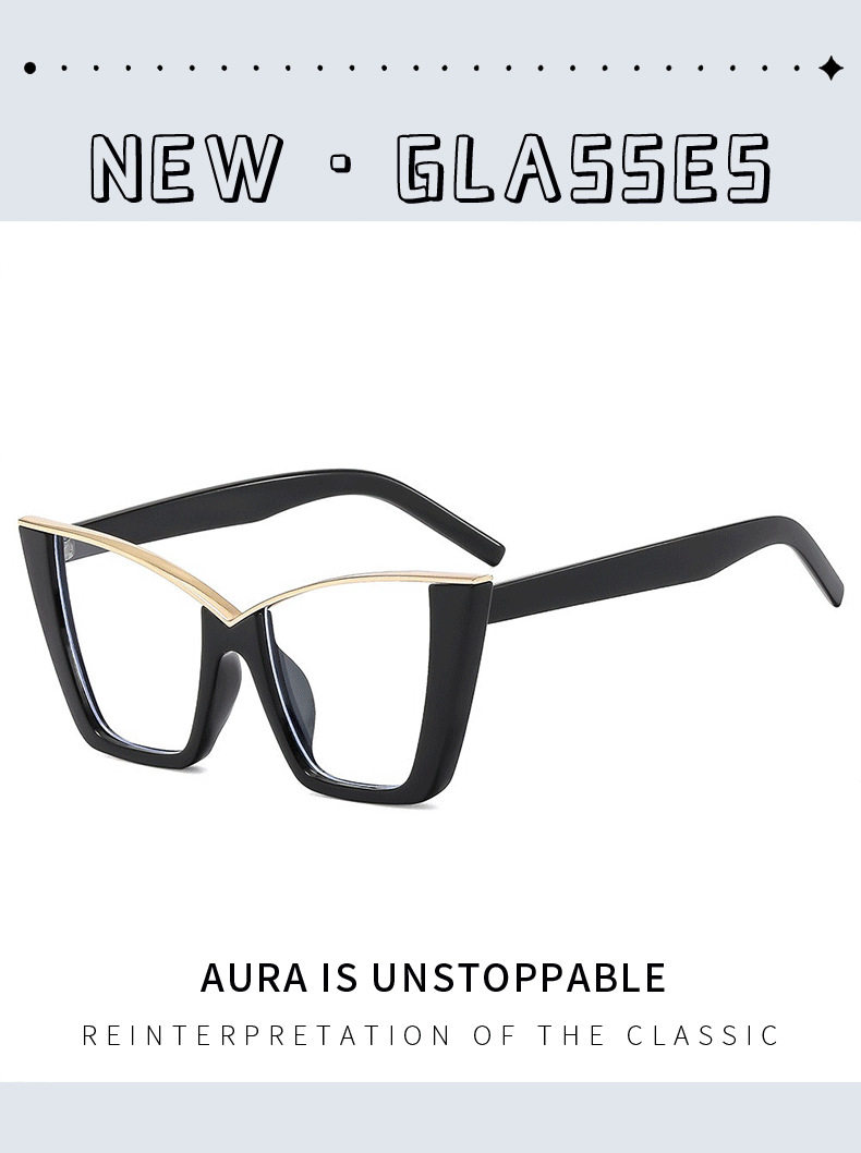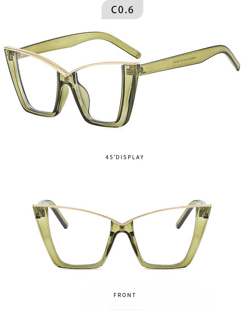 Cat's Eye Large Frame Flat Mirror European and American New Style Personalized Glasses Frame Trendy Internet Popular Ins Fashion Glasses Frame Concave Shape