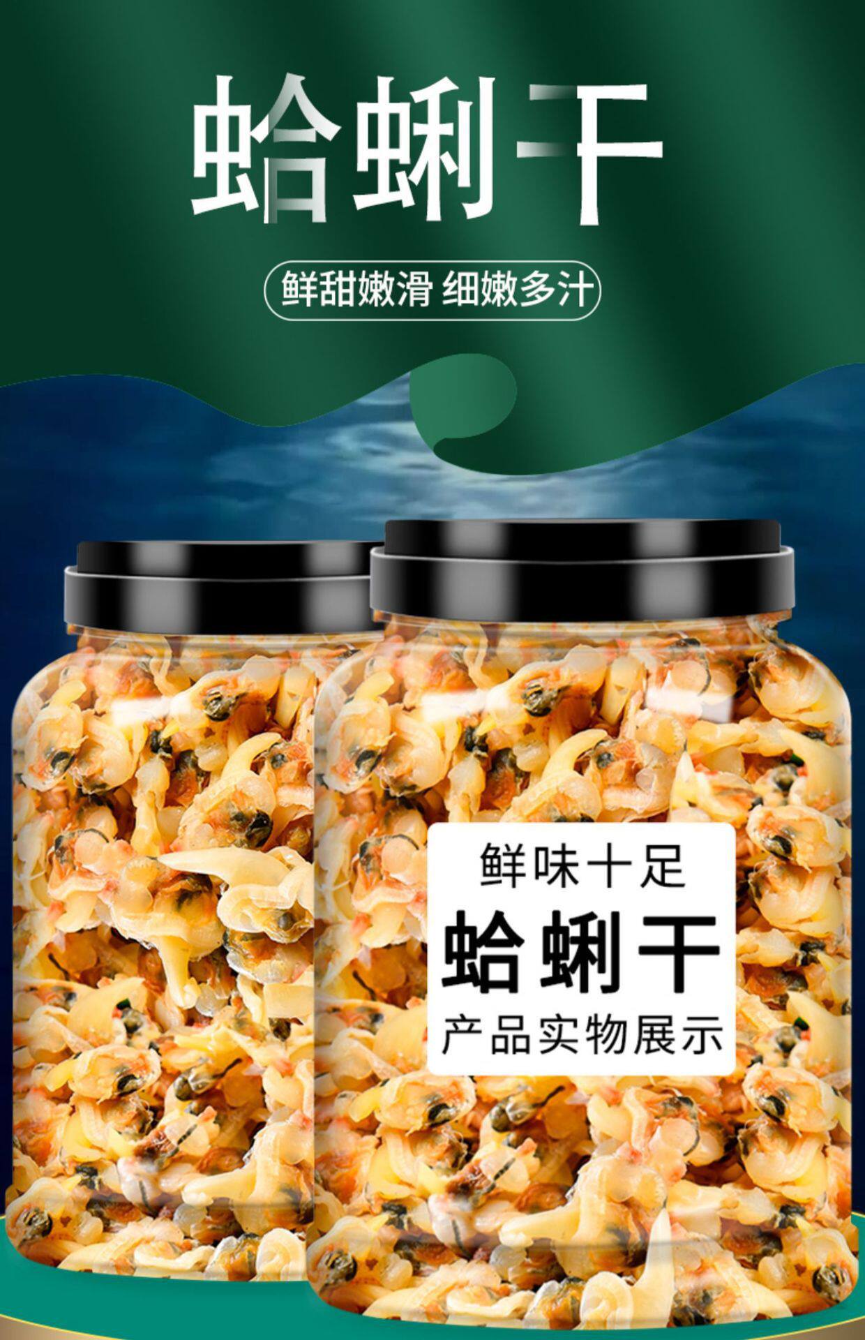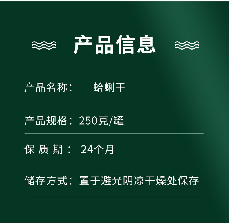| Packaging specifications | 【dried clams】(100g),[dried clams] [1 can] (250g*1 can),[buy 1 get 1 free dried clams] [2 cans] (250g*2 cans),[buy 2 get 2 free dried clams] [4 cans] (250g*4 cans) |