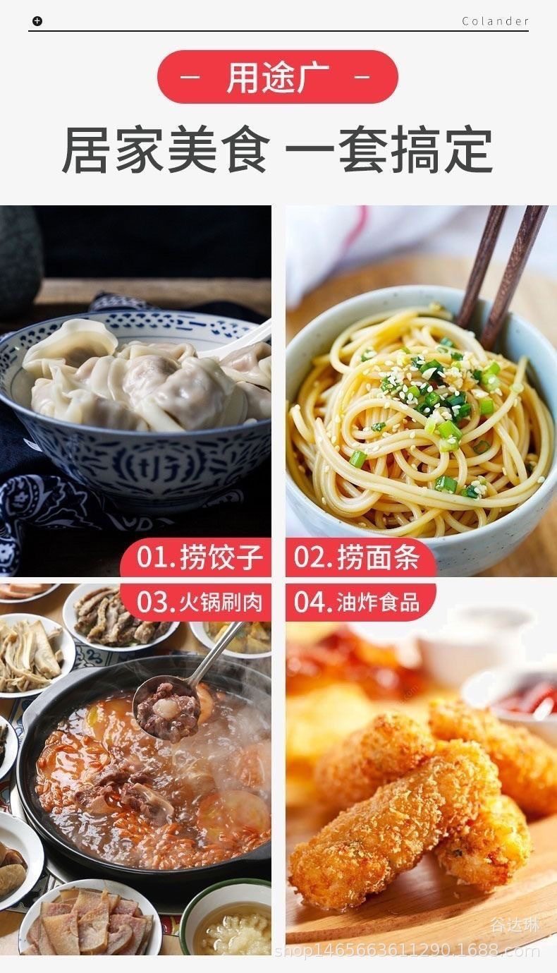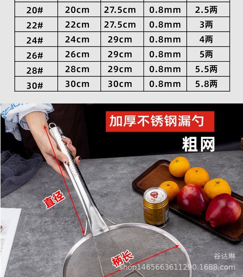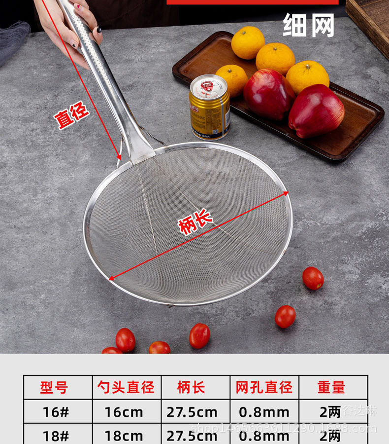 Stainless Steel Leakage Mesh Oil Strainer Kitchen Tools Vegetable and Fruit Leakage Mesh Fish Mesh Oil Residue Malatang Strainer Fried Colander