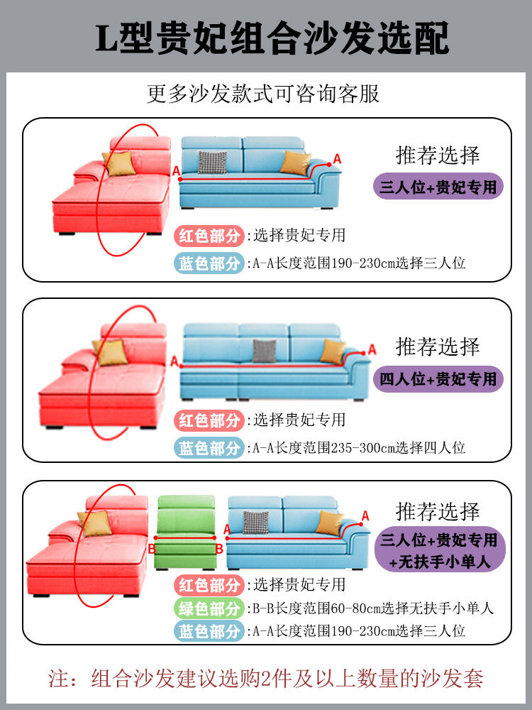 | Size | Single size [according to the details page, suitable for 90~140cm sofa],Double size [according to the details page, suitable for 145~185cm sofa],Three-person size [according to the details page, it is suitable for 190~230cm sofa],Dimensions of the three people on the left [people sitting on the sofa, single armrest sofa on the left],Dimensions of the three people on the right [people sitting on the sofa, single armrest sofa on the right],Four-person size [according to the details page, it is suitable for 235~300cm sofa],Five-person size [according to the details page, it is suitable for 300~350cm sofa],Zuo guifei size [sitting on the sofa, the imperial concubine sofa on the left side],Right imperial concubine size [sitting on the sofa, imperial concubine sofa on the right side],Small single person without armrests [applicable to 60~80cm armless sofa] |