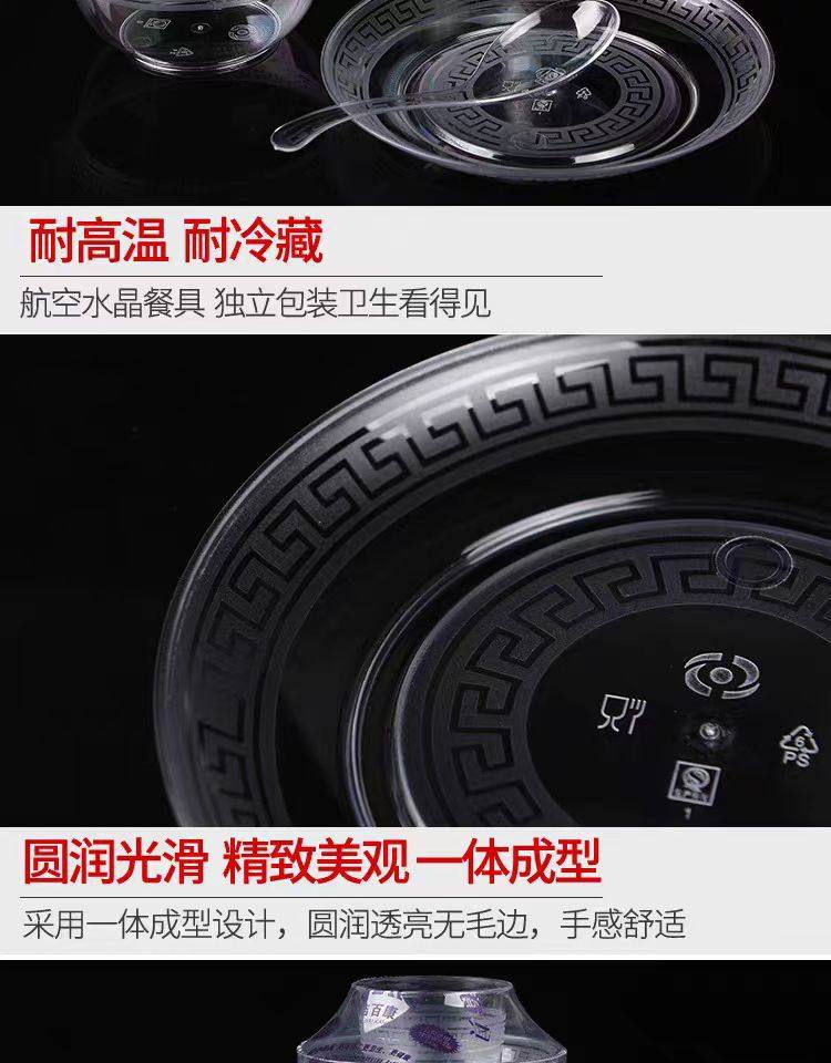 Disposable aviation crystal tableware four-piece set of hard plastic bowls and chopsticks suit high temperature resistant wholesale food grade
