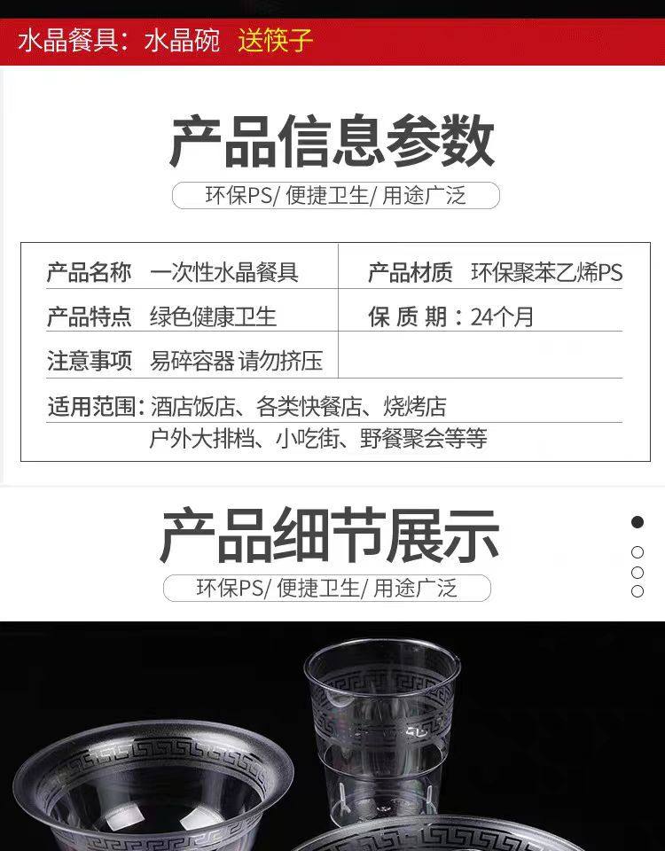 | Color | Disposable tableware four-piece set [super value special pack],Disposable tableware four-piece set, 25 sets, free chopsticks [individually packaged],Disposable set of four, 50 sets, free chopsticks [individually packaged],Disposable tableware four-piece set, 100 sets, free chopsticks [individually packaged],Disposable set of four, 50 sets, free chopsticks [affordable in bulk],Disposable set of four, 100 sets, free chopsticks [affordable in bulk],100 disposable crystal cups,100 disposable crystal butterflies,100 disposable crystal bowls,100 disposable crystal spoons,Disposable crystal bowl 350ml 100 pieces,500 sets of four-piece sets come with chopsticks (catering set photo) [individually packaged],30ml shot glass can be added to the four-piece set,100 seasoning butterflies can be added to the four-piece set |