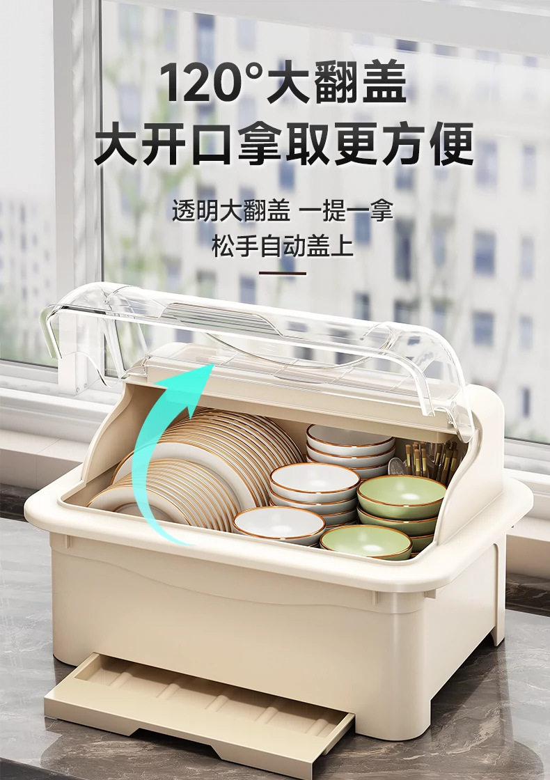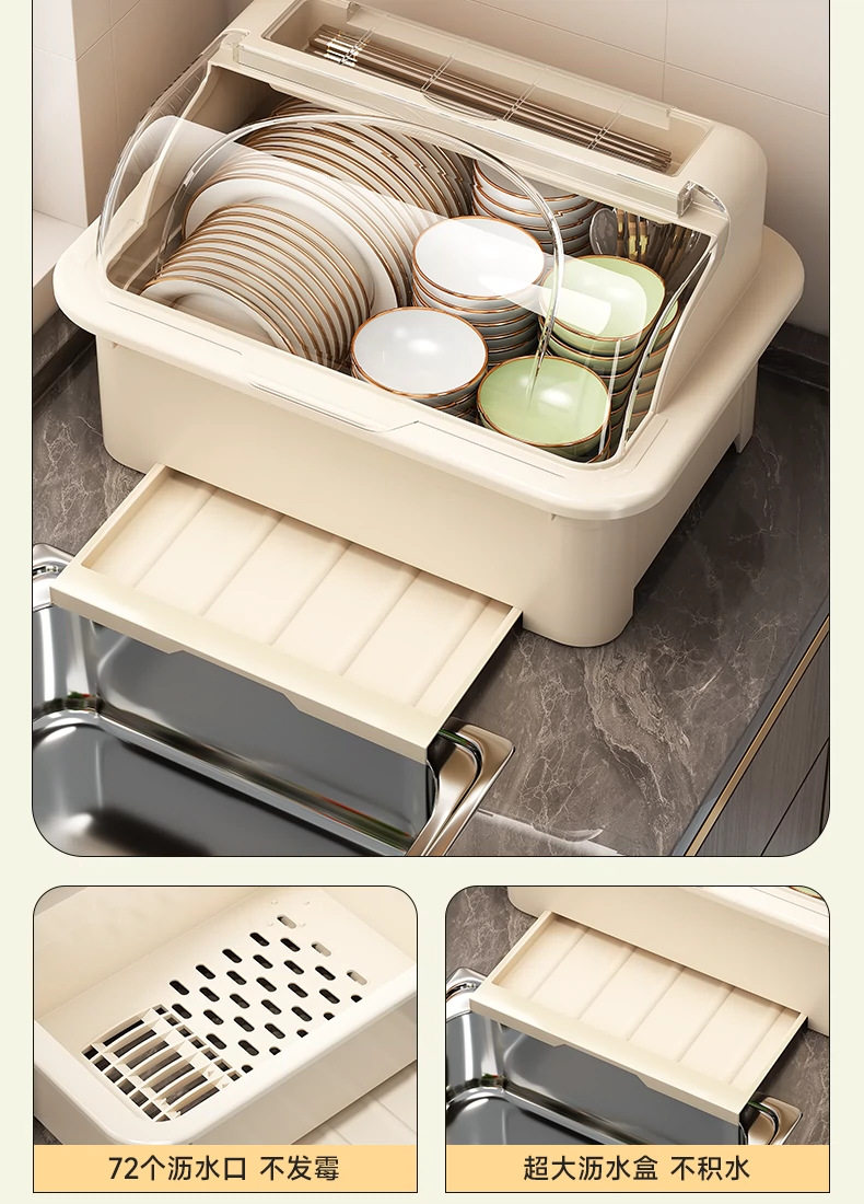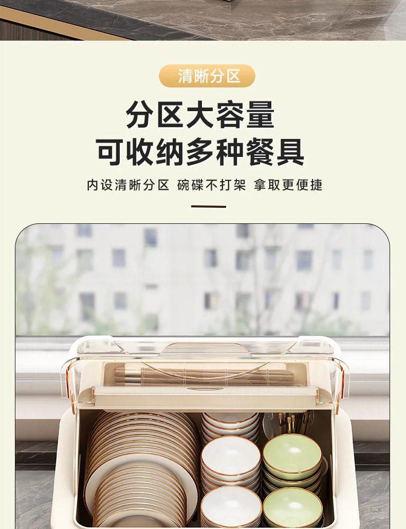 Household Cupboard Cupboard Storage Box for Cupboard Tableware Storage Rack Kitchen Flip Bowl Rack with Lid Draining Storage Rack