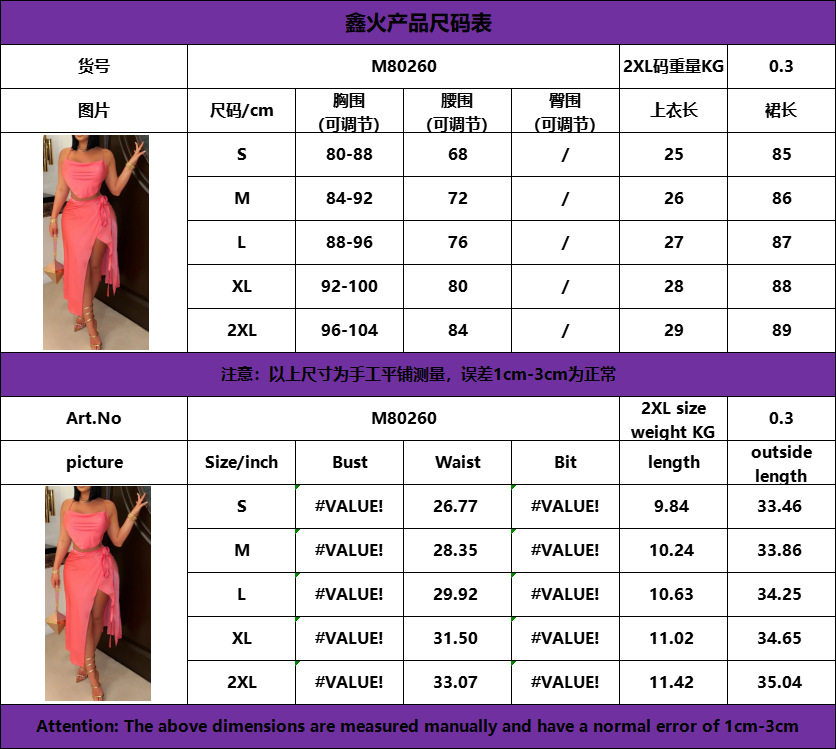 New Amazon Cross-border European and American Sexy Slim Lace-up Sling Collar Strap Skirt Two-piece High Split Women's Clothing