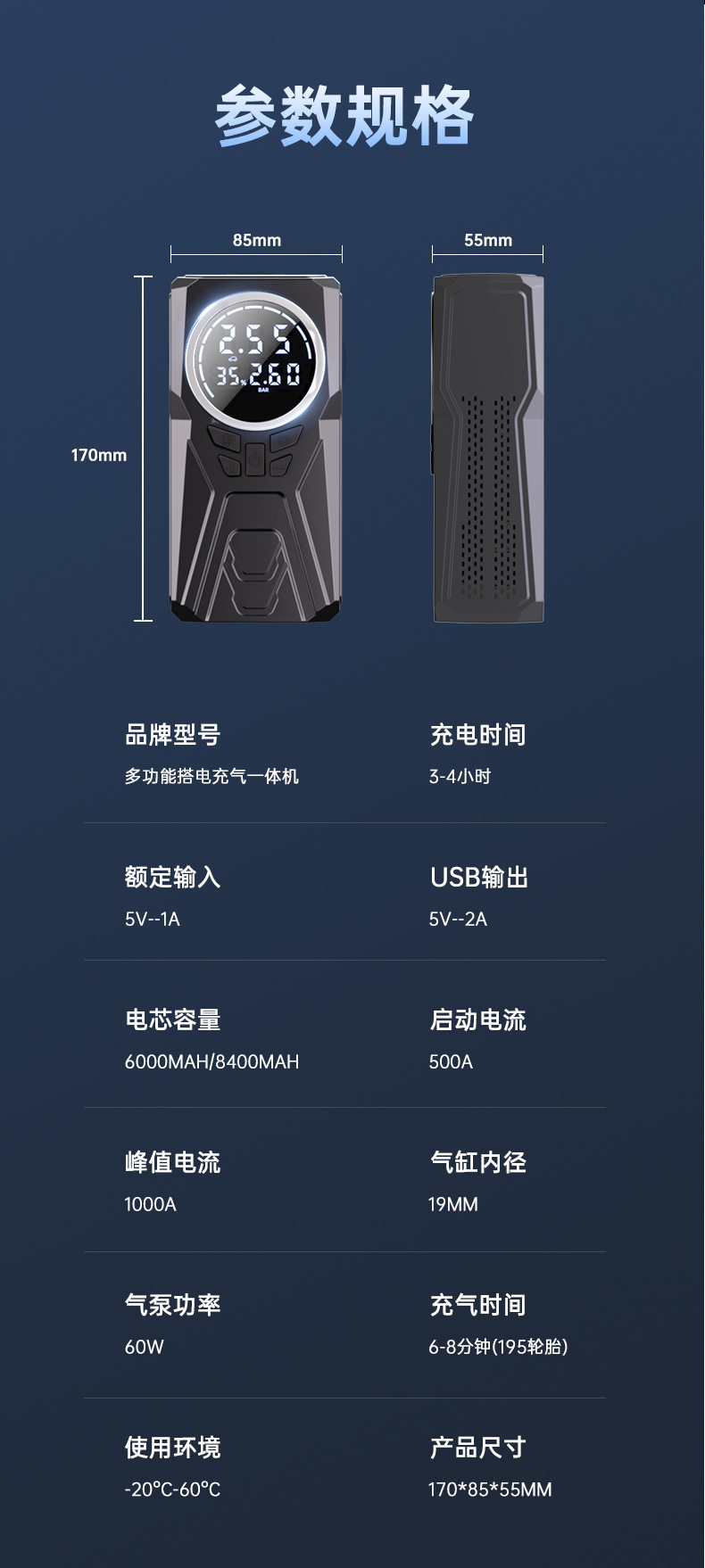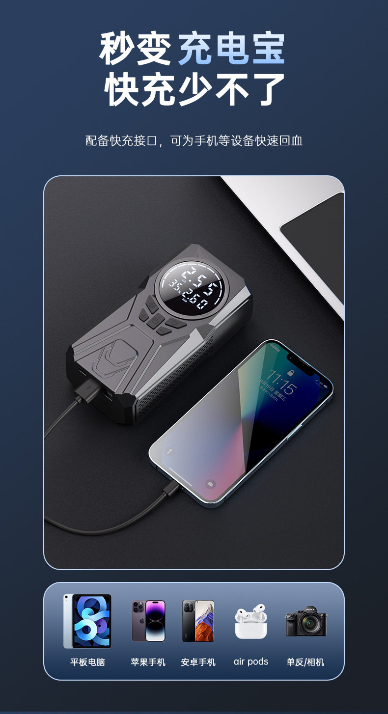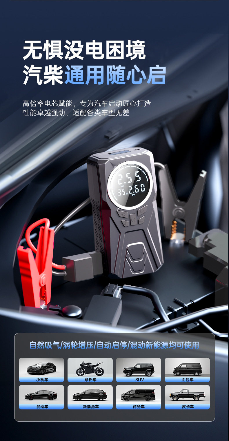 | Specification | Car plug-in digital display model (without battery),Md-1231 air pump wireless model (eva bag),Car-mounted + wireless charging dual-use digital display eva storage bag h03,Car + wireless charging + startup all-in-one machine ordinary clip digital display 6000 models eva storage bag h03,Car + wireless charging + startup all-in-one machine smart clip digital display 6000 eva storage bag h03,Car + wireless charging + startup all-in-one machine smart clip digital display 8000 eva storage bag h03 |