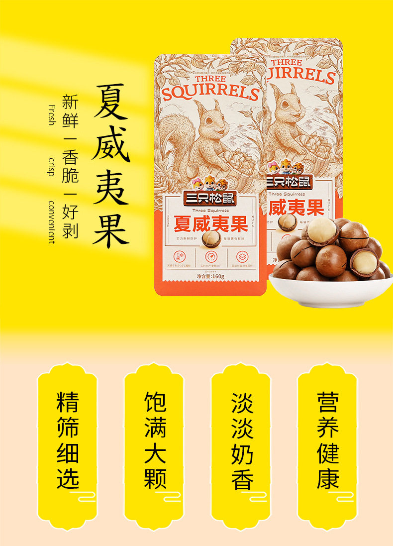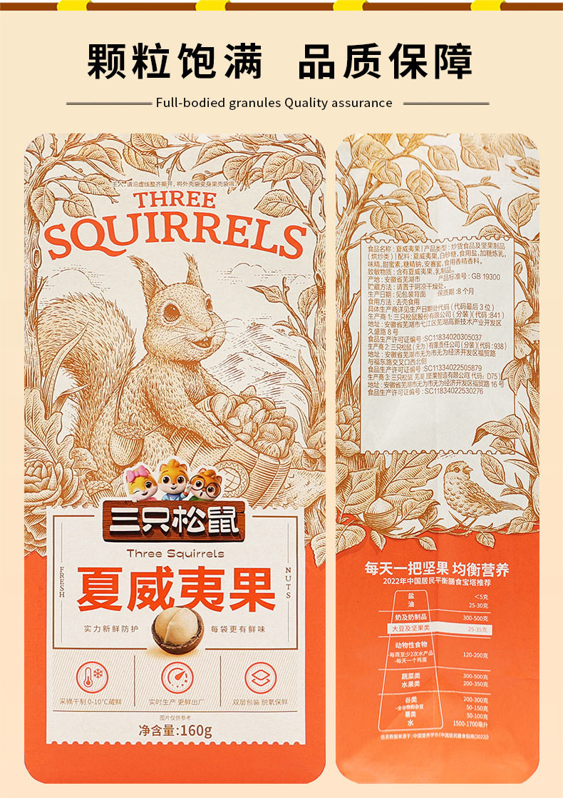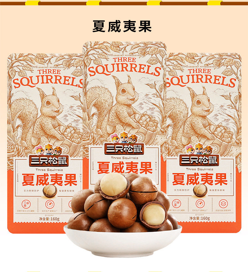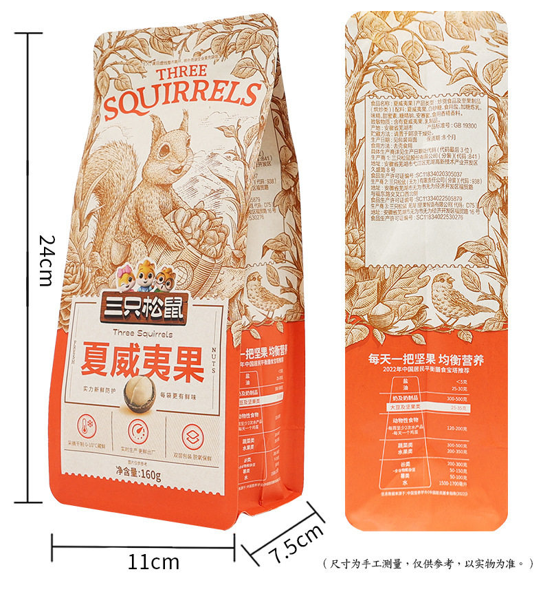 Packaging specifications Three squirrels macadamia nuts 160g*1 bag,Three squirrels macadamia nuts 160g*2 bags,Three squirrels macadamia nuts 160g*3 bags,Three squirrels macadamia nuts 160g*5 bags,Three squirrels macadamia nuts 160g*10 bags
