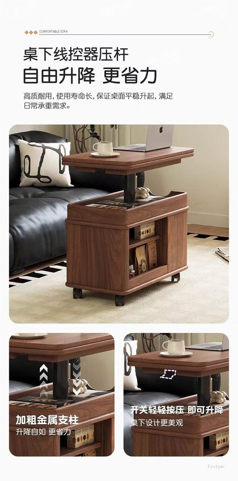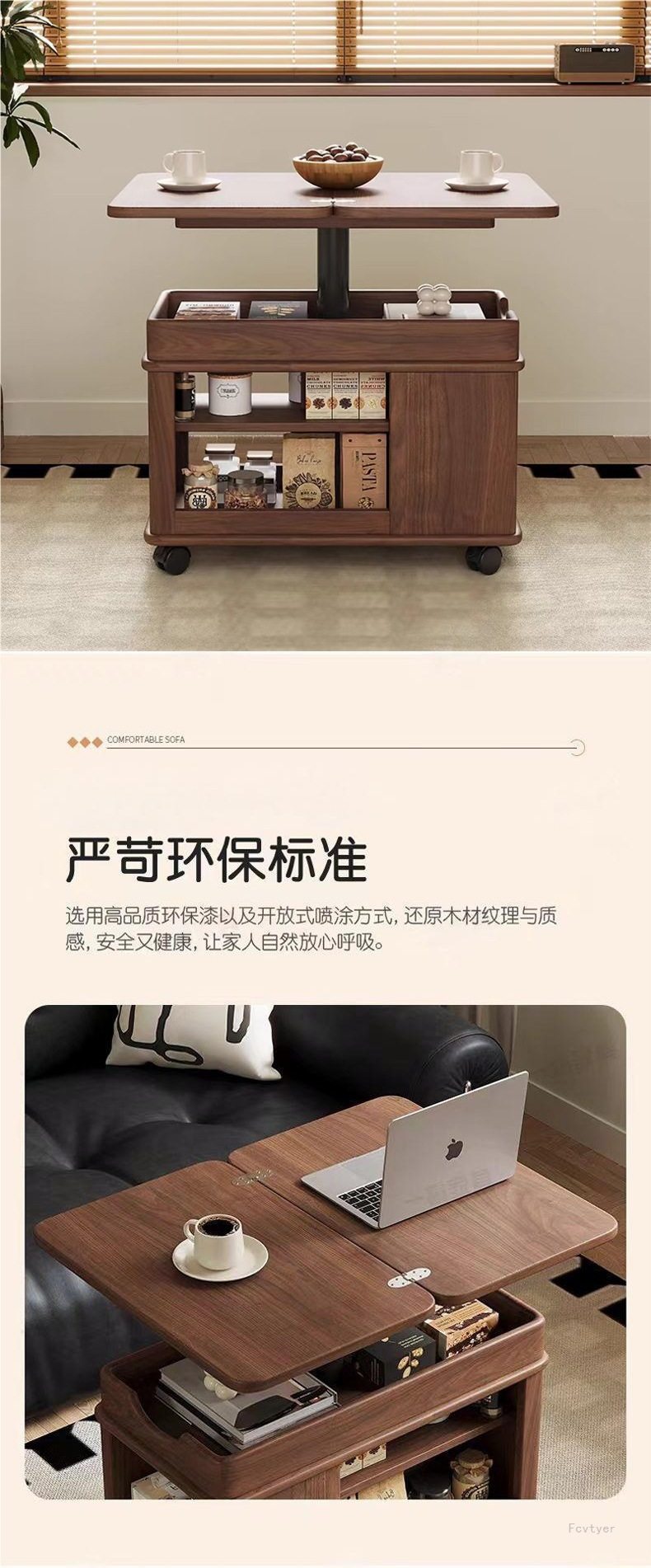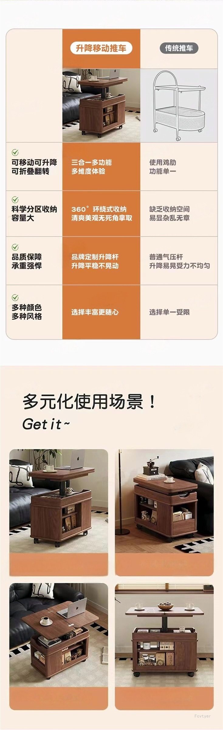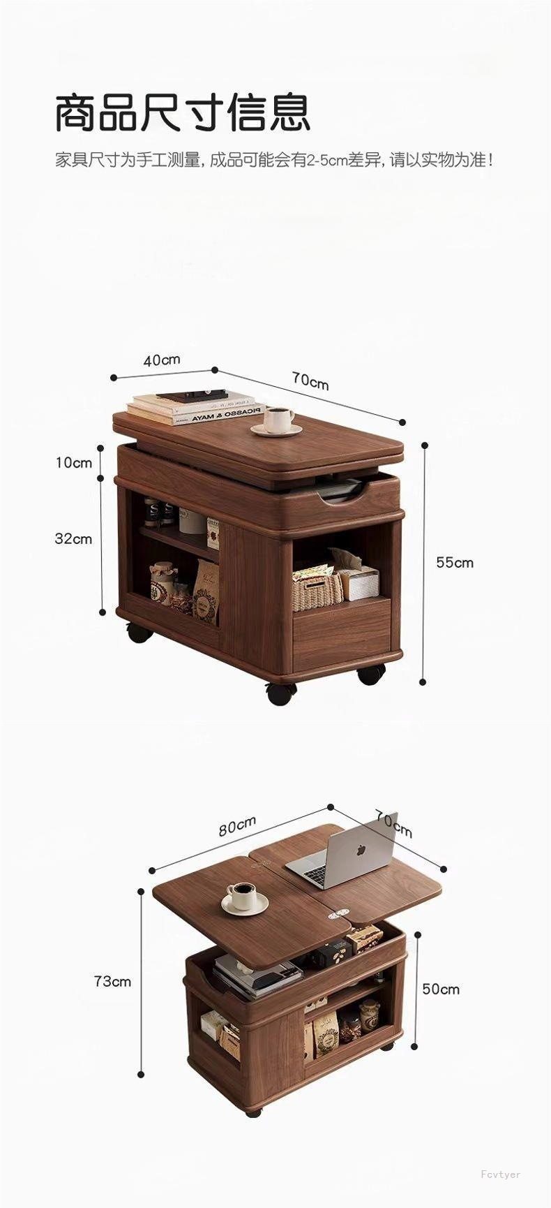 Solid Wood Trolley, Movable Side Table, Sofa Side Cabinet, Lift, Storage, Multi-Functional Wheeled Coffee Table, Tea Table