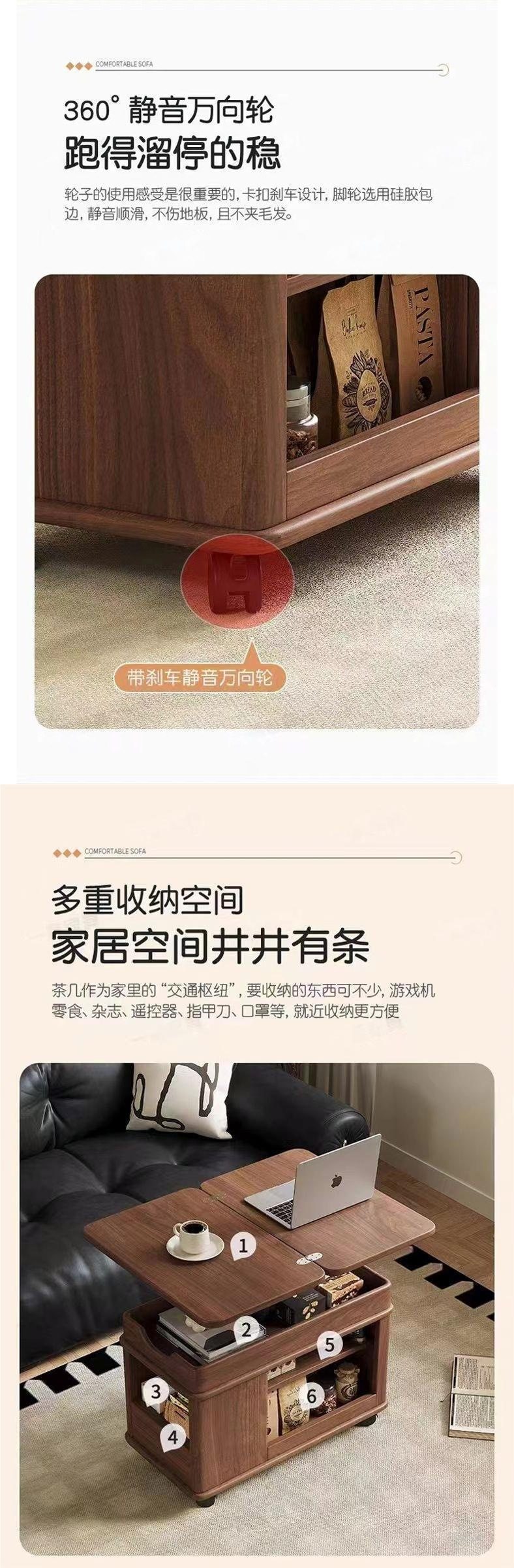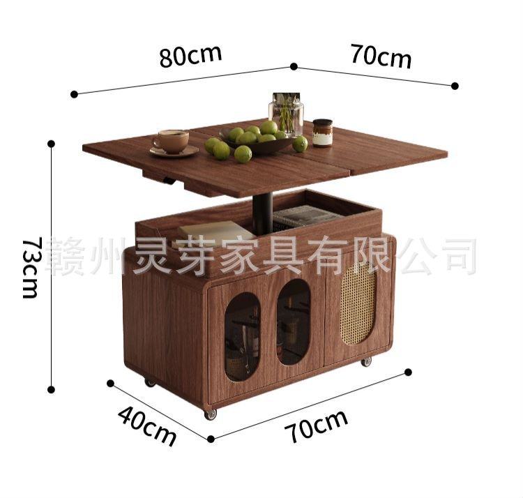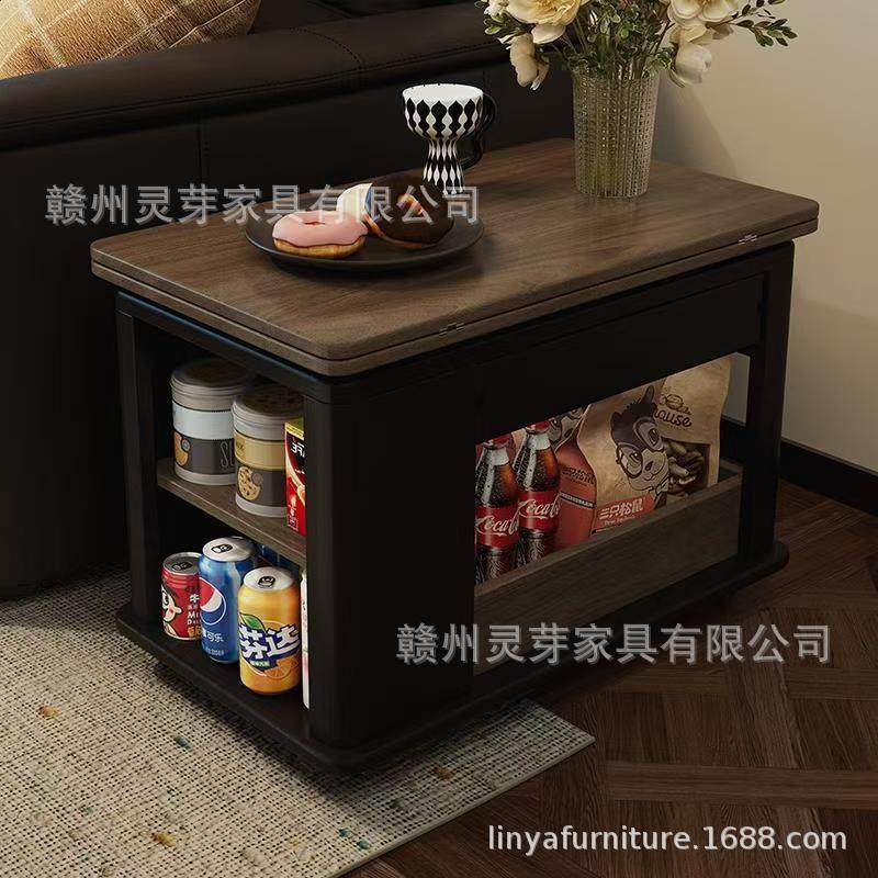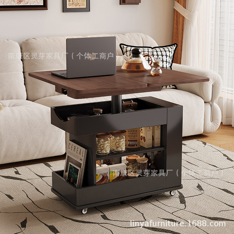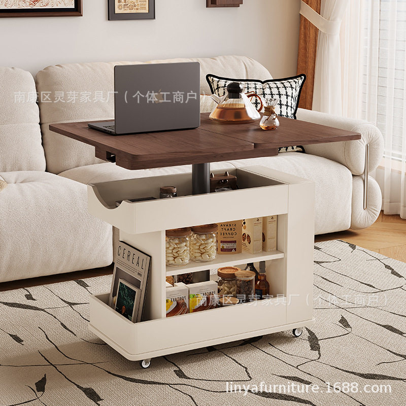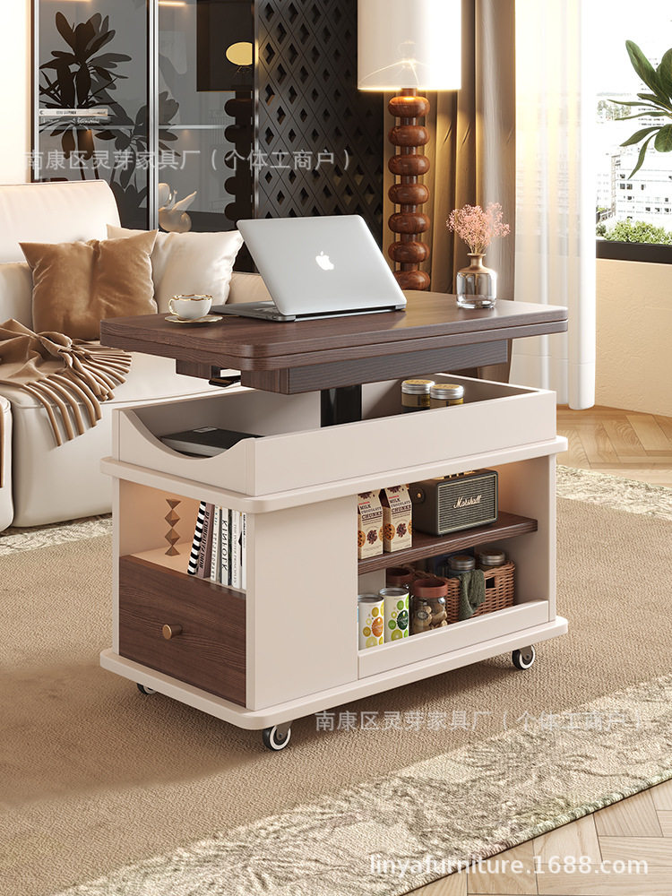 Solid Wood Trolley, Movable Side Table, Sofa Side Cabinet, Lift, Storage, Multi-Functional Wheeled Coffee Table, Tea Table
